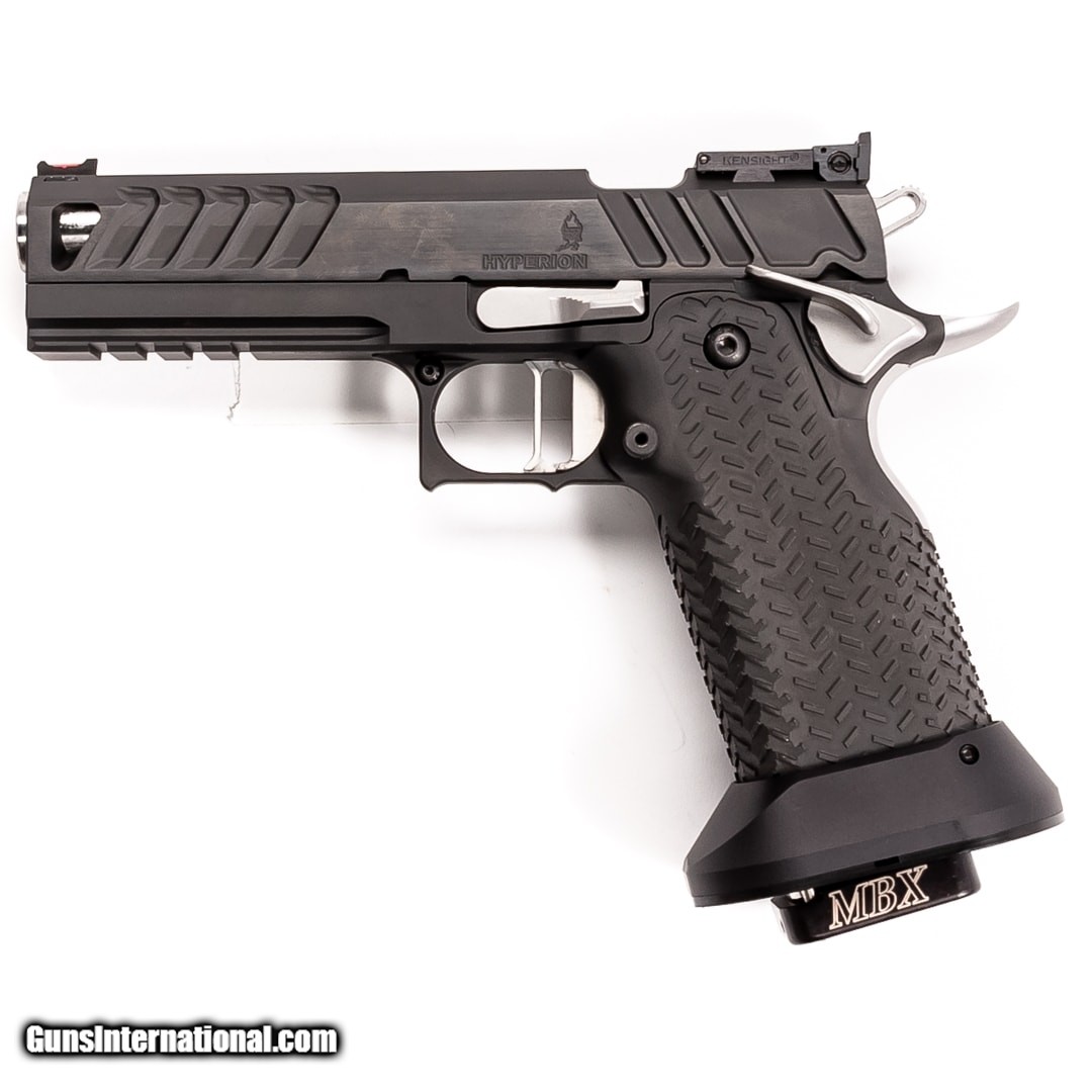 Description: Guns Listing ID: 265261 Chambered in 9mm, the Atlas Gun Works Hyperion is a semi-automatic 1911-style handgun with an impressive capacity. Lightweight, fast-shooting, and smooth-cycling, this pistol is ready for anything from personal defense and tactical applications to competition. This Hyperion is in excellent condition and comes with an Atlas canvas carry bag and one 19-round magazine. SOLD Manufacturer: ATLAS GUNWORKS Model: HYPERION Caliber Info: 9MM LUGER (9X19 PARA) Condition: Used - Certified Barrels: 4.6 BARREL Finish: BLACK |
