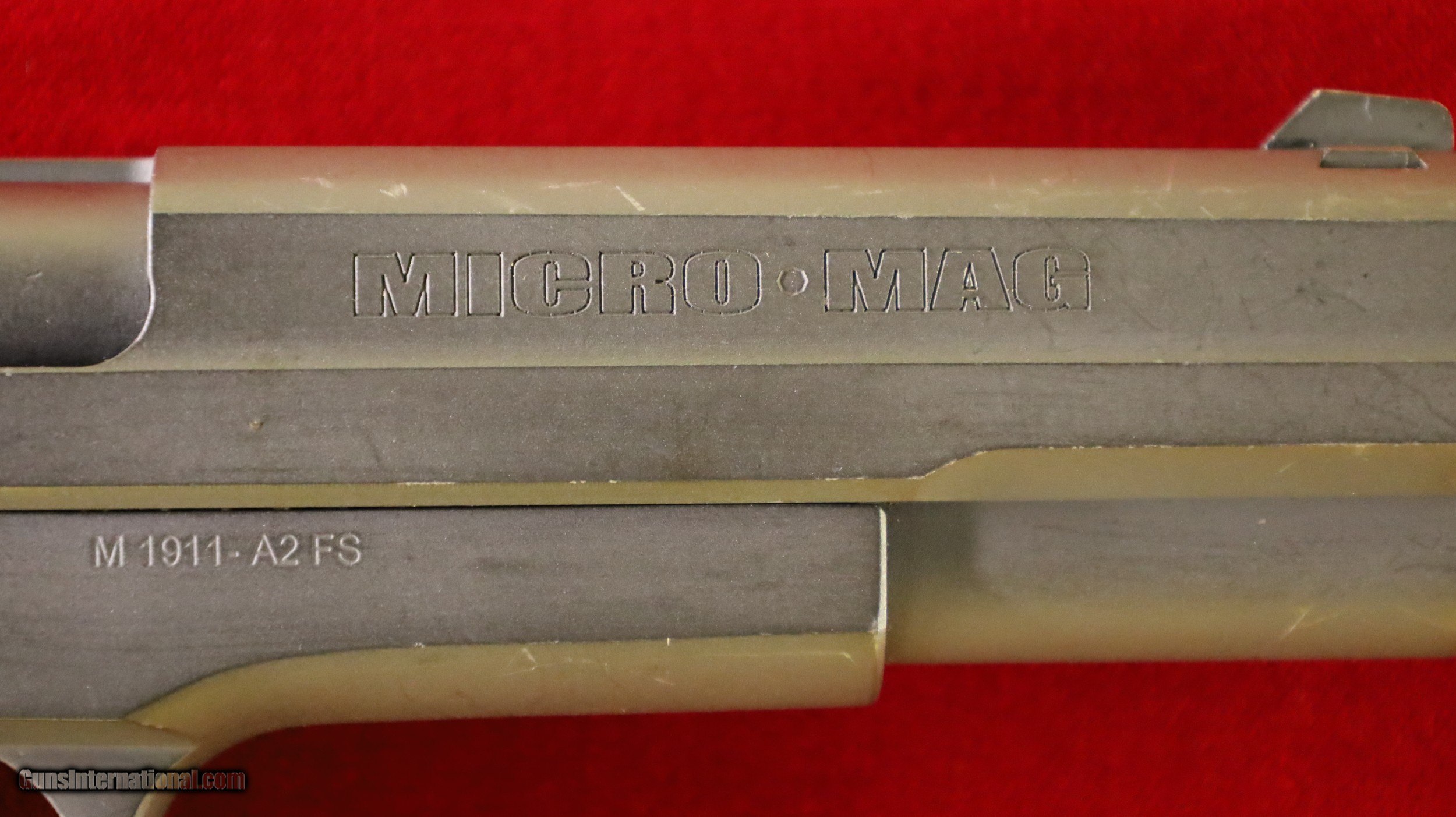 Description: Atomitronx M1911A2 FS Micro Mag in 9mm Luger, full black, 1911 pattern but with a double stack magazine. Shows some minor scuffing, otherwise near excellent overall and bore condition. Pre-Rock Island Arsenal Import. In original case. SOLD Handgun Caliber: 9x19mm Parabellum (9mm Luger, 9x19mm NATO) Manufacturer: Armscor Model: M1911A2-FS Condition: Excellent Bore Condition: Excellent |
