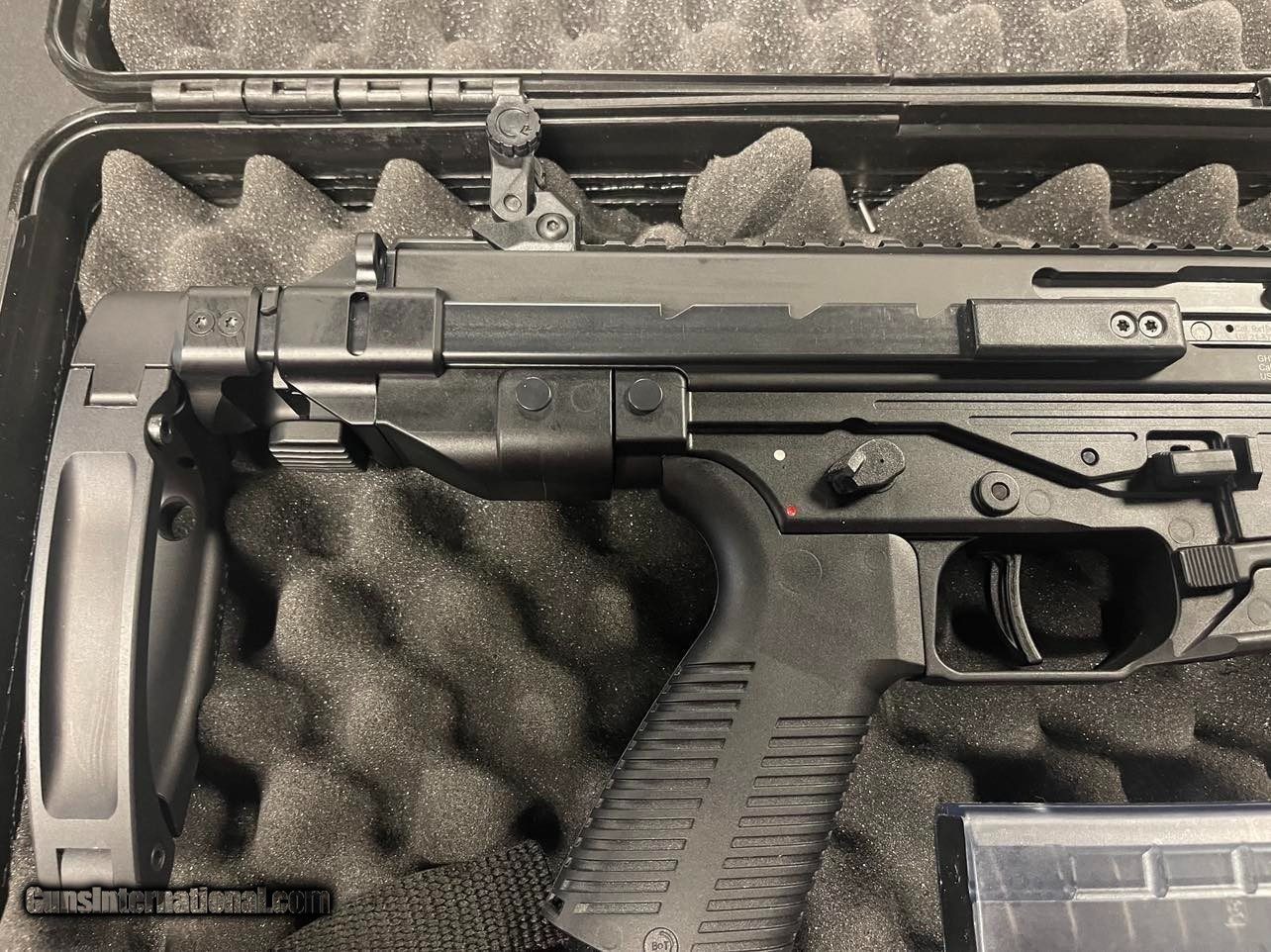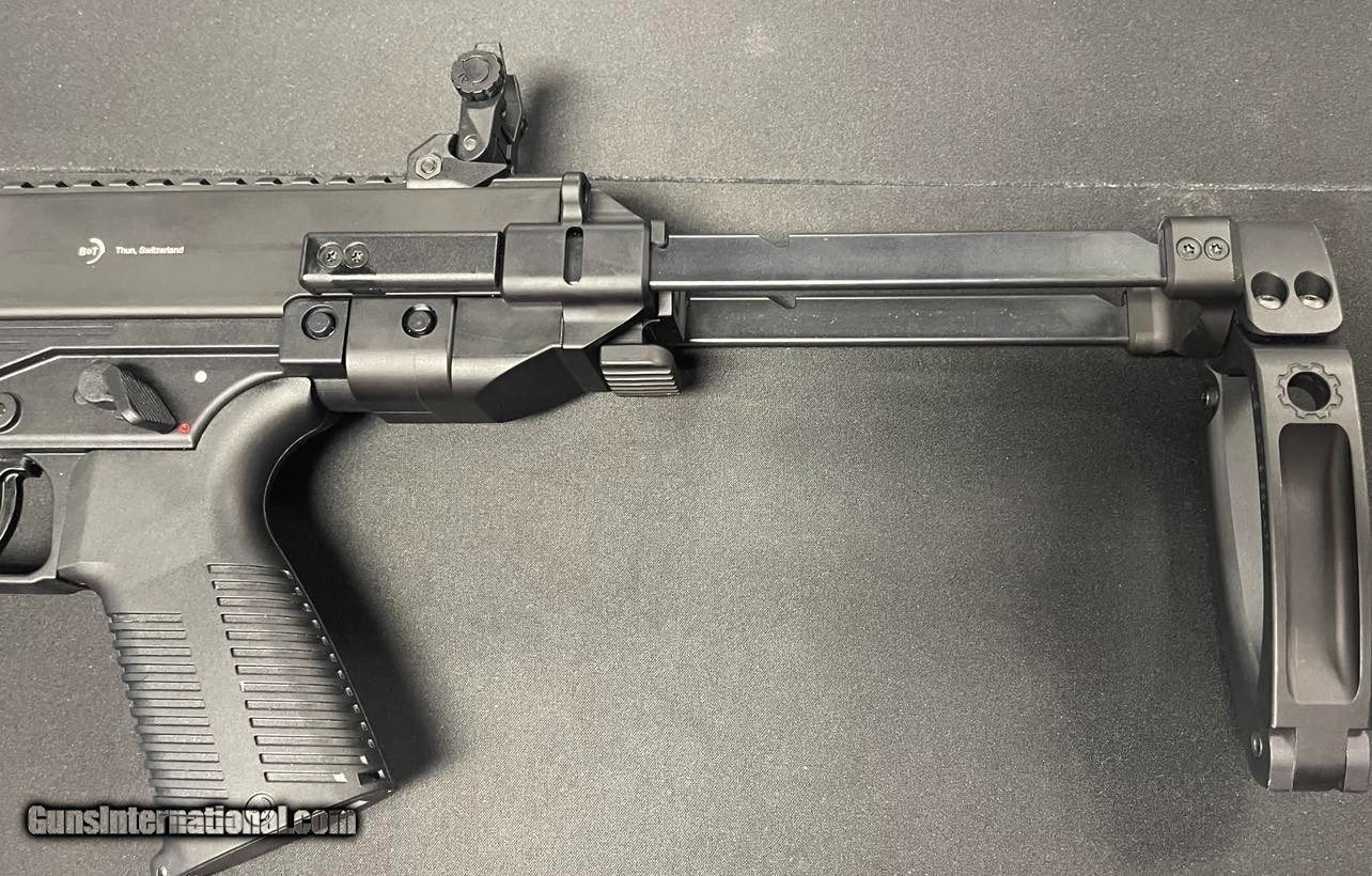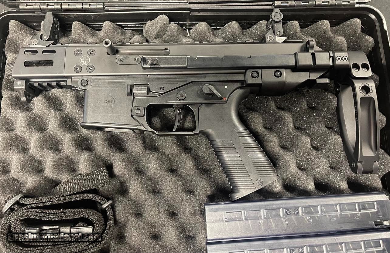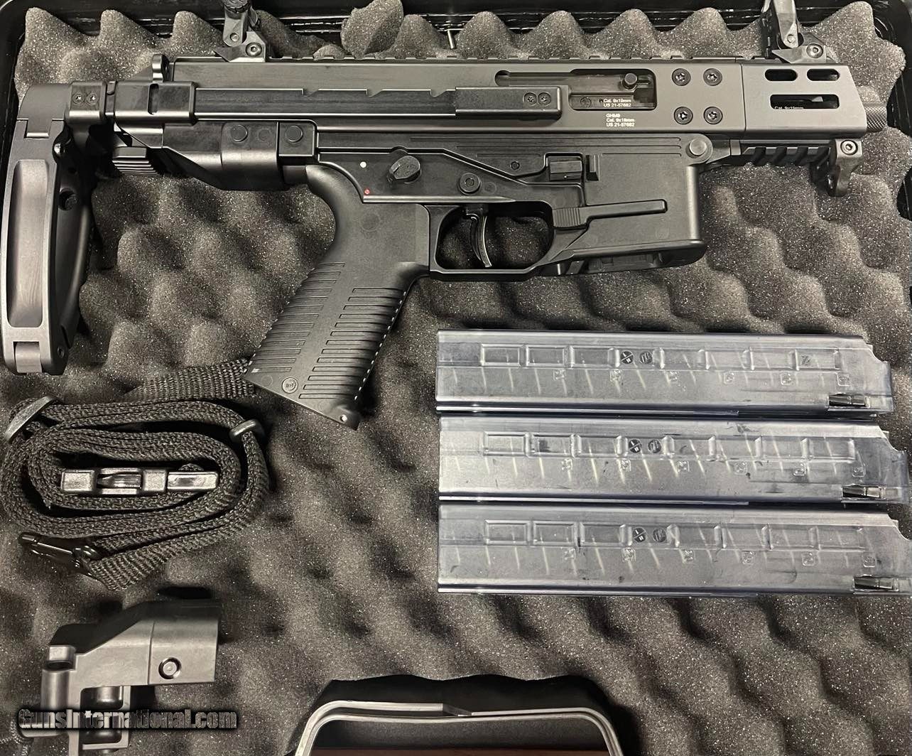 Description: B&T Firearms GHM9 Tactical Pistol - Complete Package in Very Good Condition with Gun Case, Three Magazines, and Sling Adaptor! For sale is a comprehensive package featuring the B&T Firearms GHM9 Tactical Pistol, in very good condition. This exceptional firearm comes complete with a gun case, three magazines, and a sling adaptor, providing you with everything you need for a complete shooting experience. Features: - Caliber: 9mm Luger - Operating System: Direct Impingement - Capacity: 30 rounds - Action: Semi-Auto - Barrel Finish: Black - Muzzle Thread Pattern: 1/2"-28 - Stock Description: Collapsible - Barrel Length: 4.5" - Max Capacity: 30 rounds - Receiver Finish: Black Hard Coat Anodized - Weight: 5.51 lbs - Stock Finish: Black The B&T GHM9 Tactical Pistol is renowned for its reliability and versatility. This particular firearm is in very good condition, ensuring its optimal performance and functionality. The GHM9 Tactical Pistol is built to last, featuring a durable aluminum receiver material and a black hard coat anodized finish. Its lightweight design and collapsible stock make it easy to handle and maneuver. With a threaded barrel (1:10" twist), you have the option to attach various muzzle devices or suppressors to enhance your shooting experience. The ambidextrous controls ensure comfortable operation for both right and left-handed shooters. $35 SHIPPING SOLD Handgun Caliber: 9x19mm Parabellum (9mm Luger, 9x19mm NATO) Manufacturer: B&T FIREARMS Model: GHM9 Serial Number: US 21-57682 Condition: VERY GOOD Metal Condition: VERY GOOD Bore Condition: VERY GOOD |