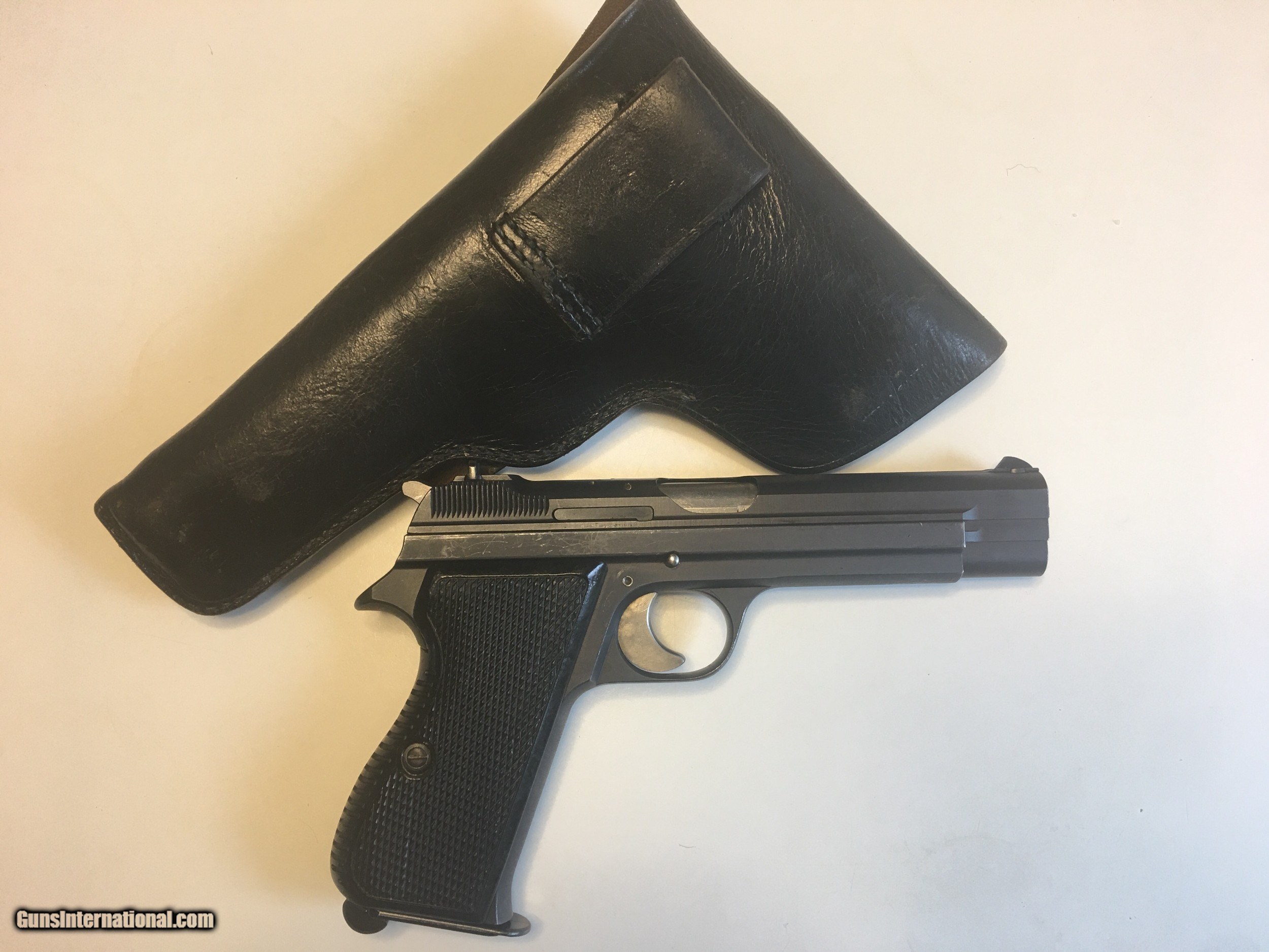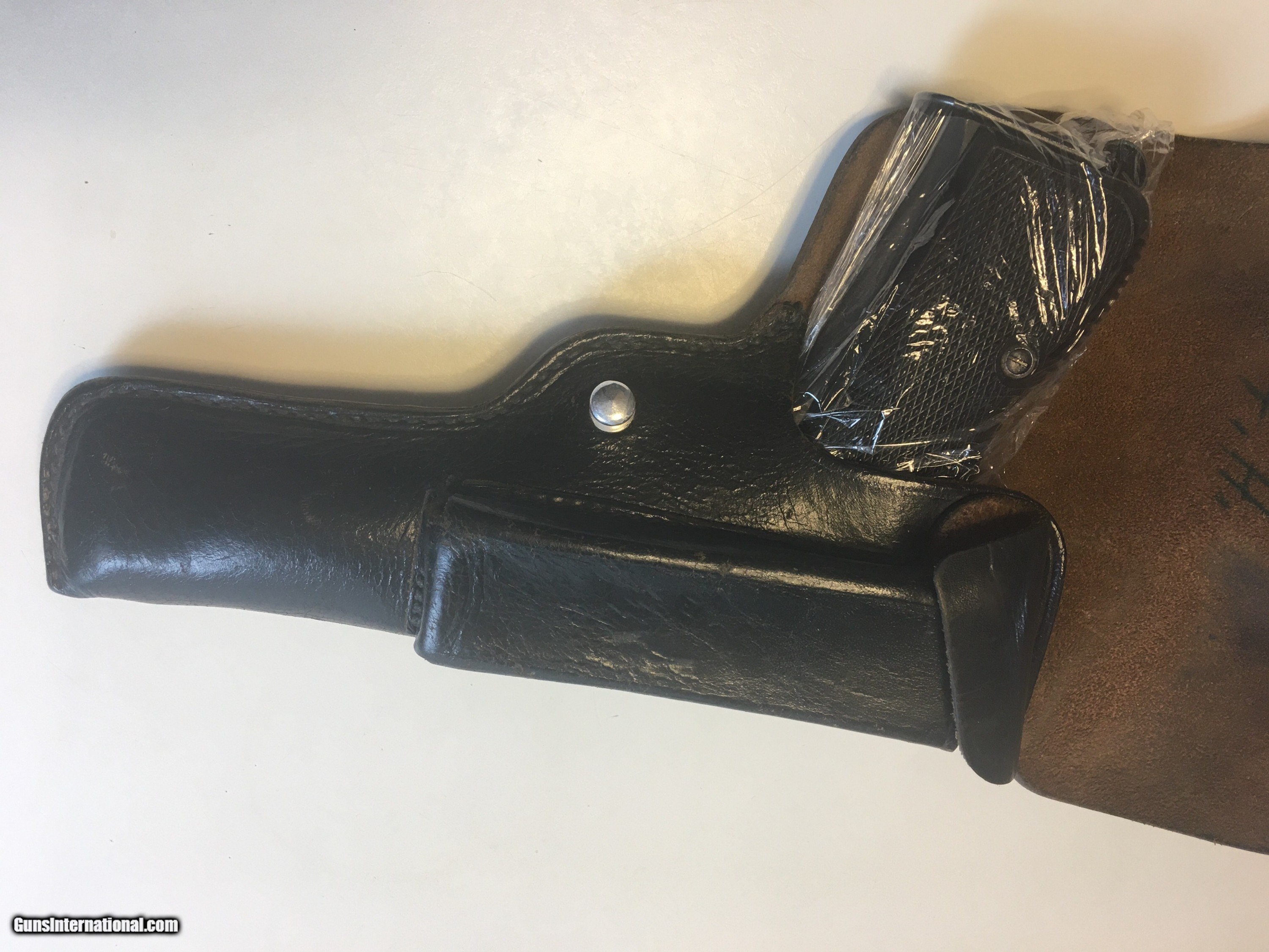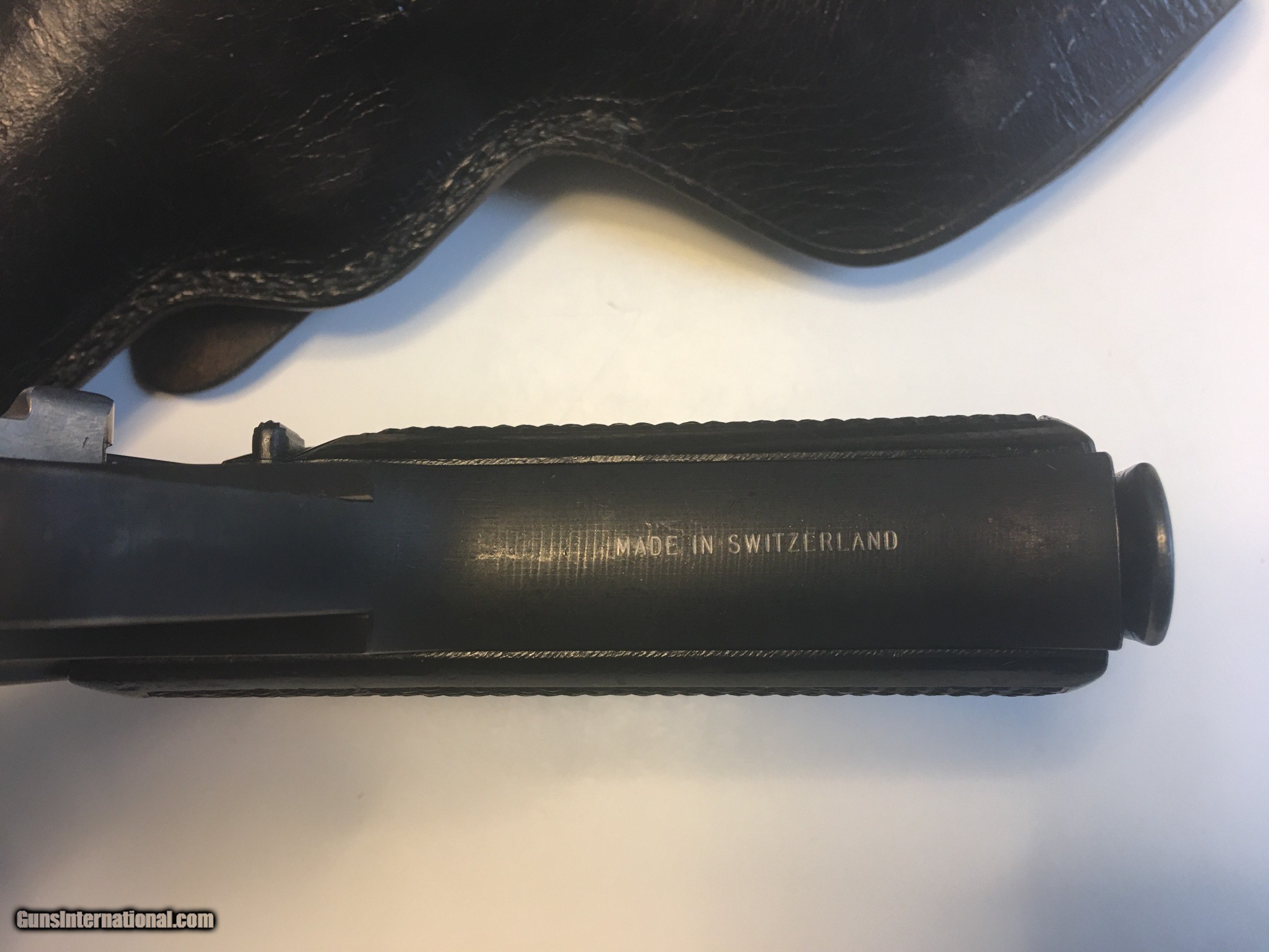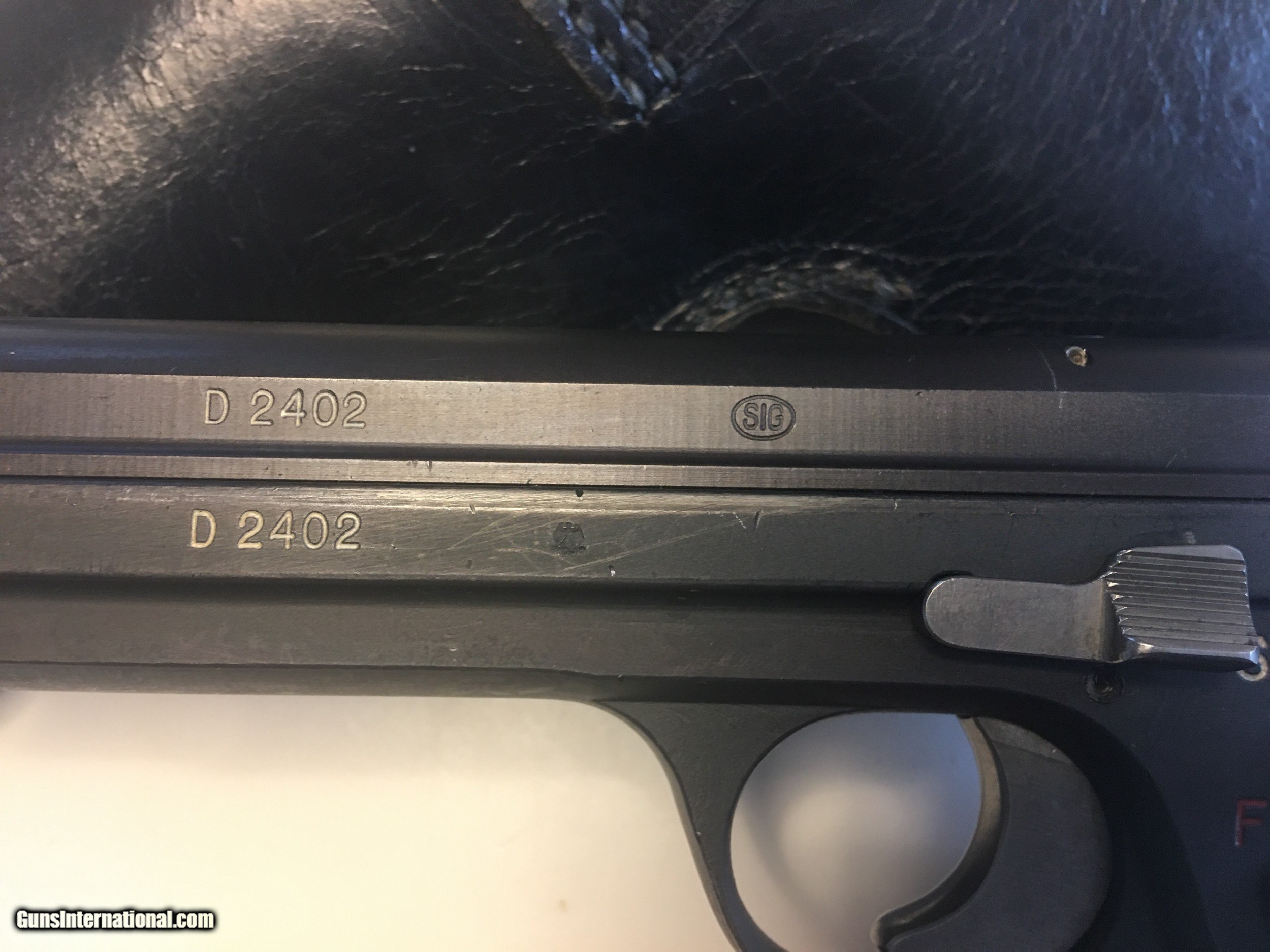 Description: This is super nice example of a highly regarded Sig P210 pistol, made in early 1960s as a part of West German Border Guard contract. Only about 5000 guns were made, all with a D-prefix to the serial number and a special proof mark on the left side of the frame. This gun is in its original excellent condition with just light holster wear - mainly on high edges of the slide, with most on the left side of the slide rail, and minimal carry wear from being handled and holstered. It comes with its original and difficult to find military holster in excellent condition as well. Perfect bore and grips. There is a small very early import mark on the right side of the frame under the right grip - not visible when the gun is assembled. "Made in Switzerland" marked on the front grip strap. A great collectible example of what some consider to be the best out of the box military pistol ever built. This is a least expensive complete example currently available for sale anywhere. 3-day inspection. FFL or C&R(where permitted). $30 shipping in Conus. SOLD Curio/Relic: Yes Handgun Caliber: 9x19mm Parabellum (9mm Luger, 9x19mm NATO) |