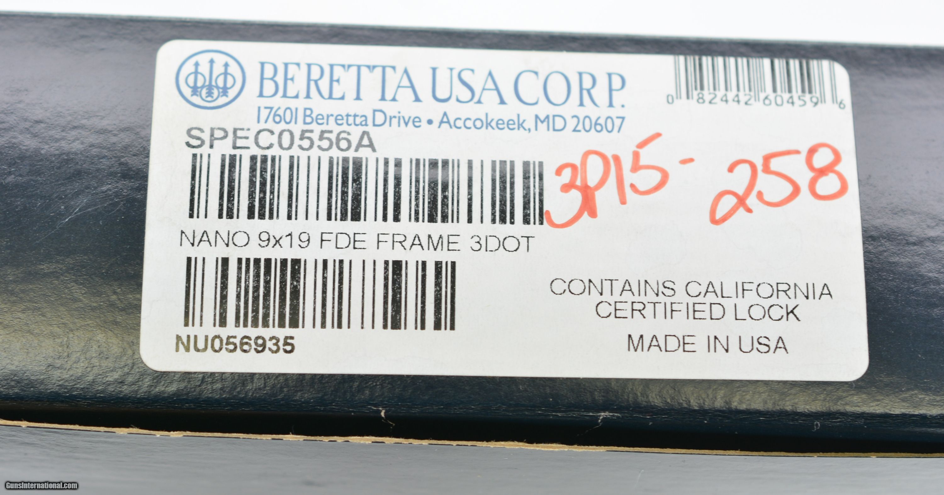 Beretta 9mm Nano Pistol Model BU9 Desert Earth