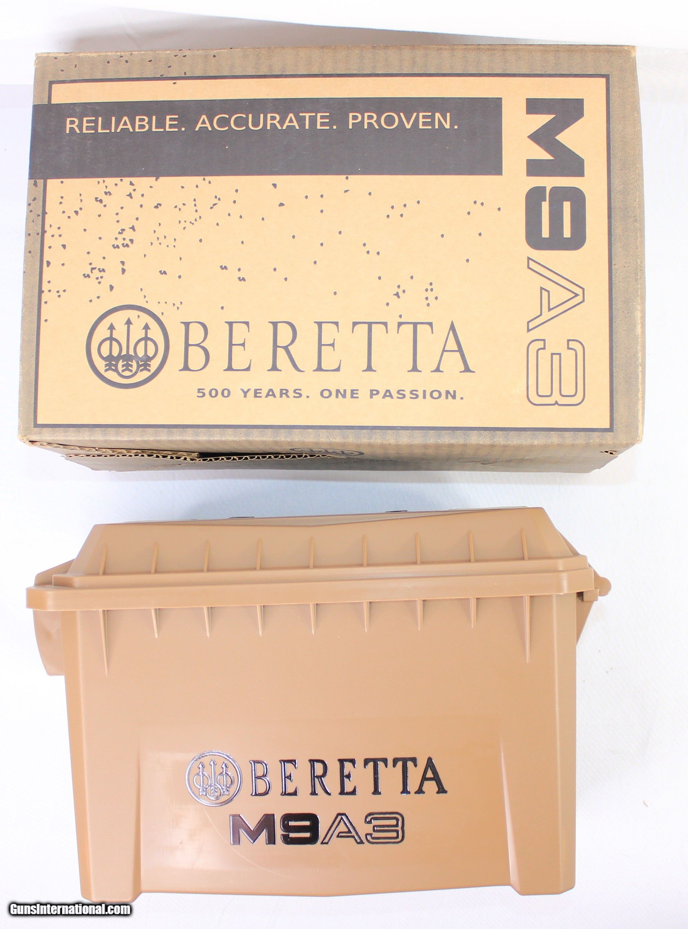 BERETTA M9A3 9MM 5" BBL THREADED FDE W/ NIGHT SIGHTS BOX AMMO CAN 3-MAGS 15+1