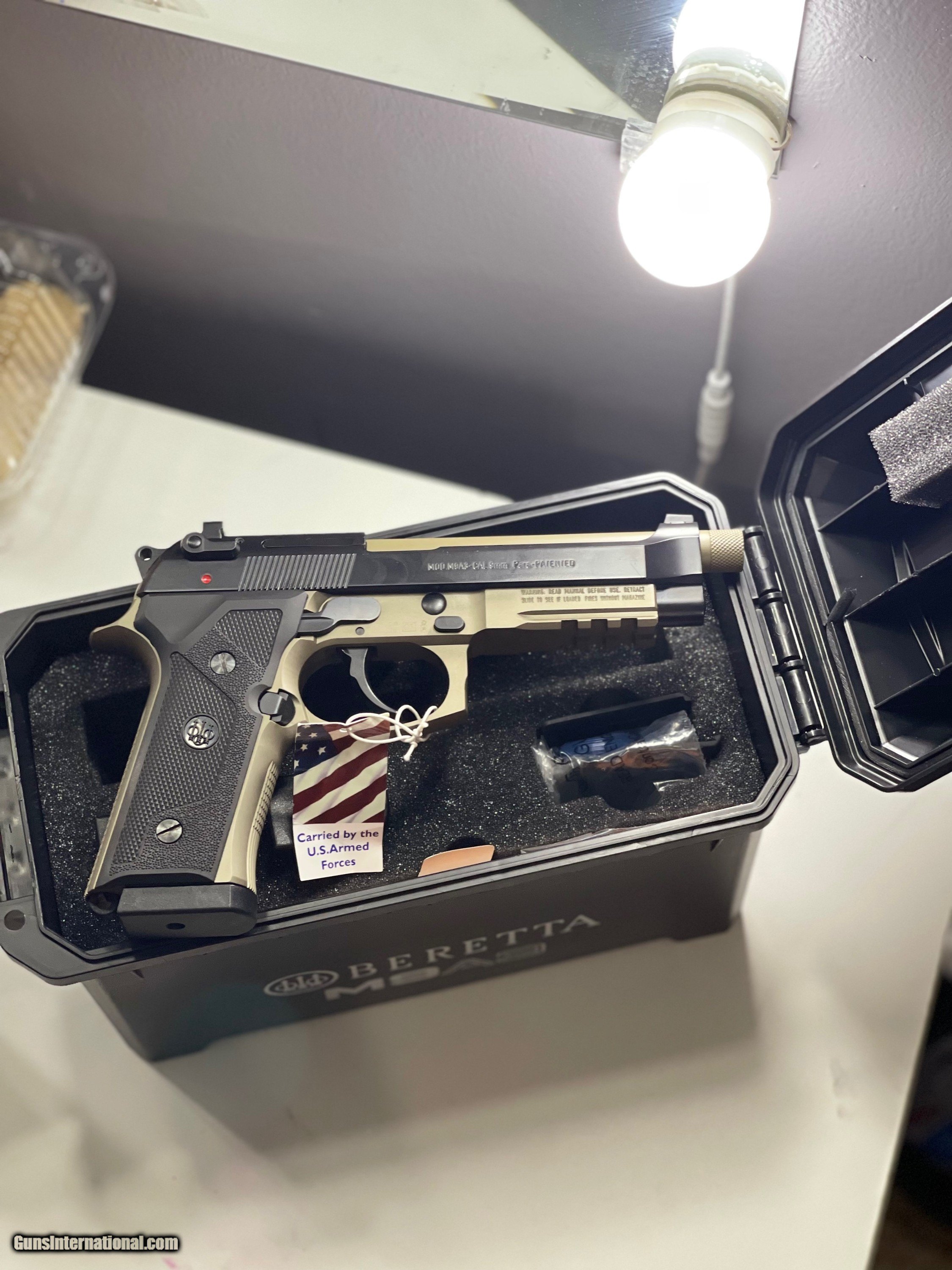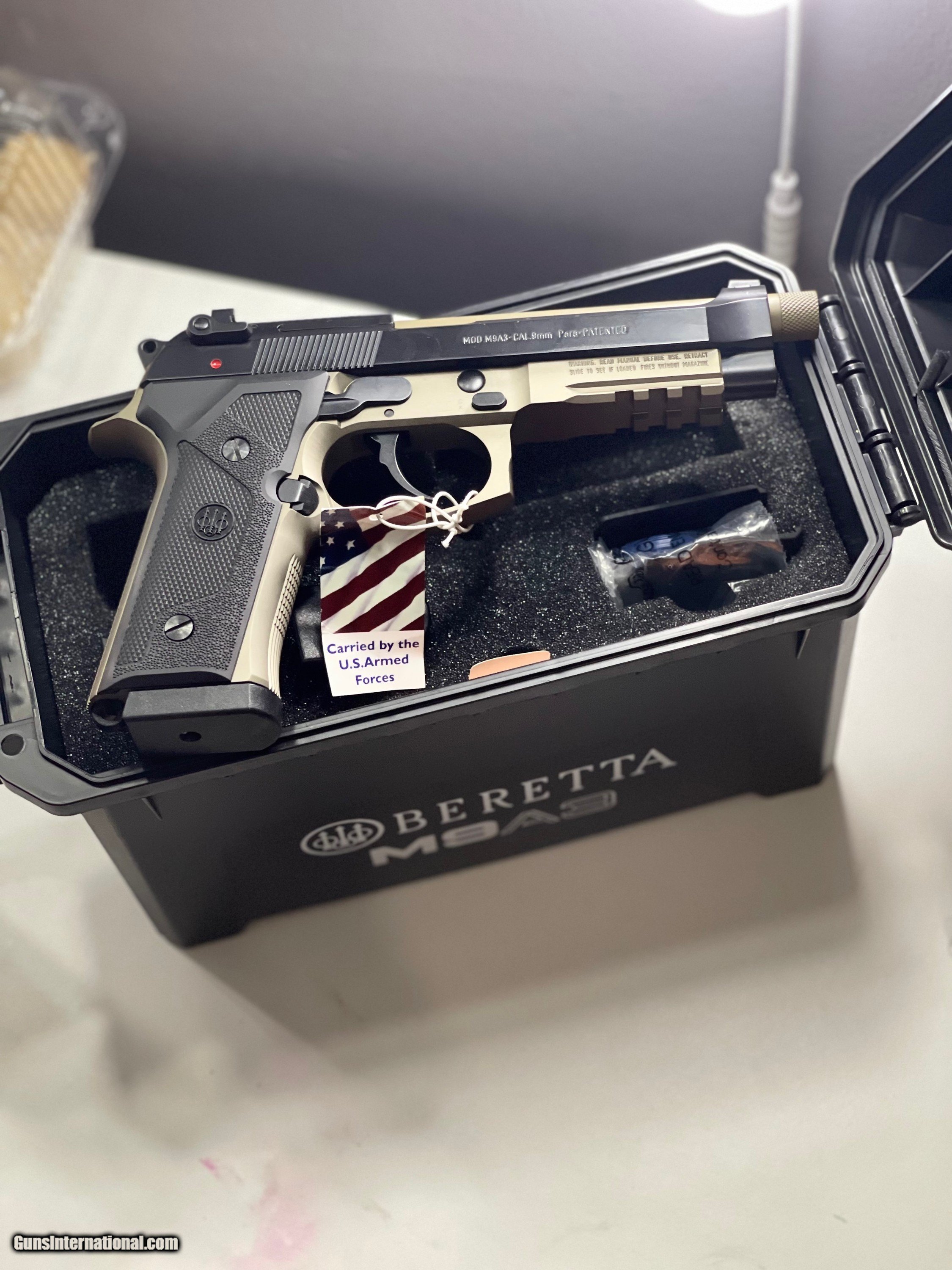 Description: Used but in GREAT condition Beretta M9A3. This one is a rare TWO tone made in Italy. Comes with three mags. Everything in box. 469-931-8527 SOLD Handgun Caliber: 9x19mm Parabellum (9mm Luger, 9x19mm NATO) Manufacturer: Beretta Model: M9A3 Condition: Good Metal Condition: Good Bore Condition: Good Action: Double Action |