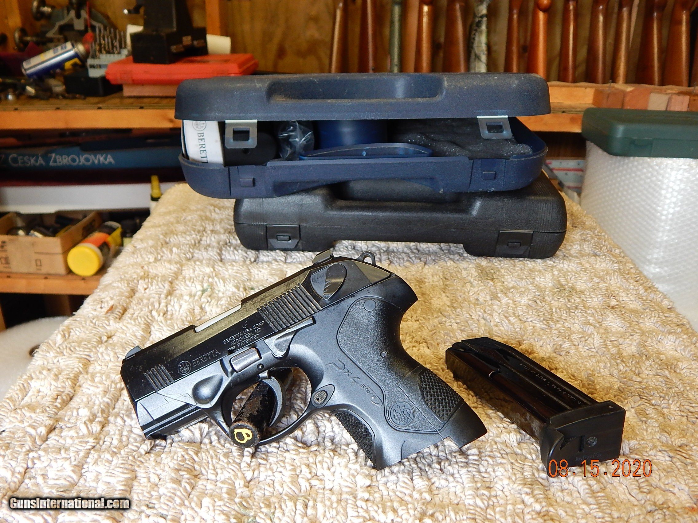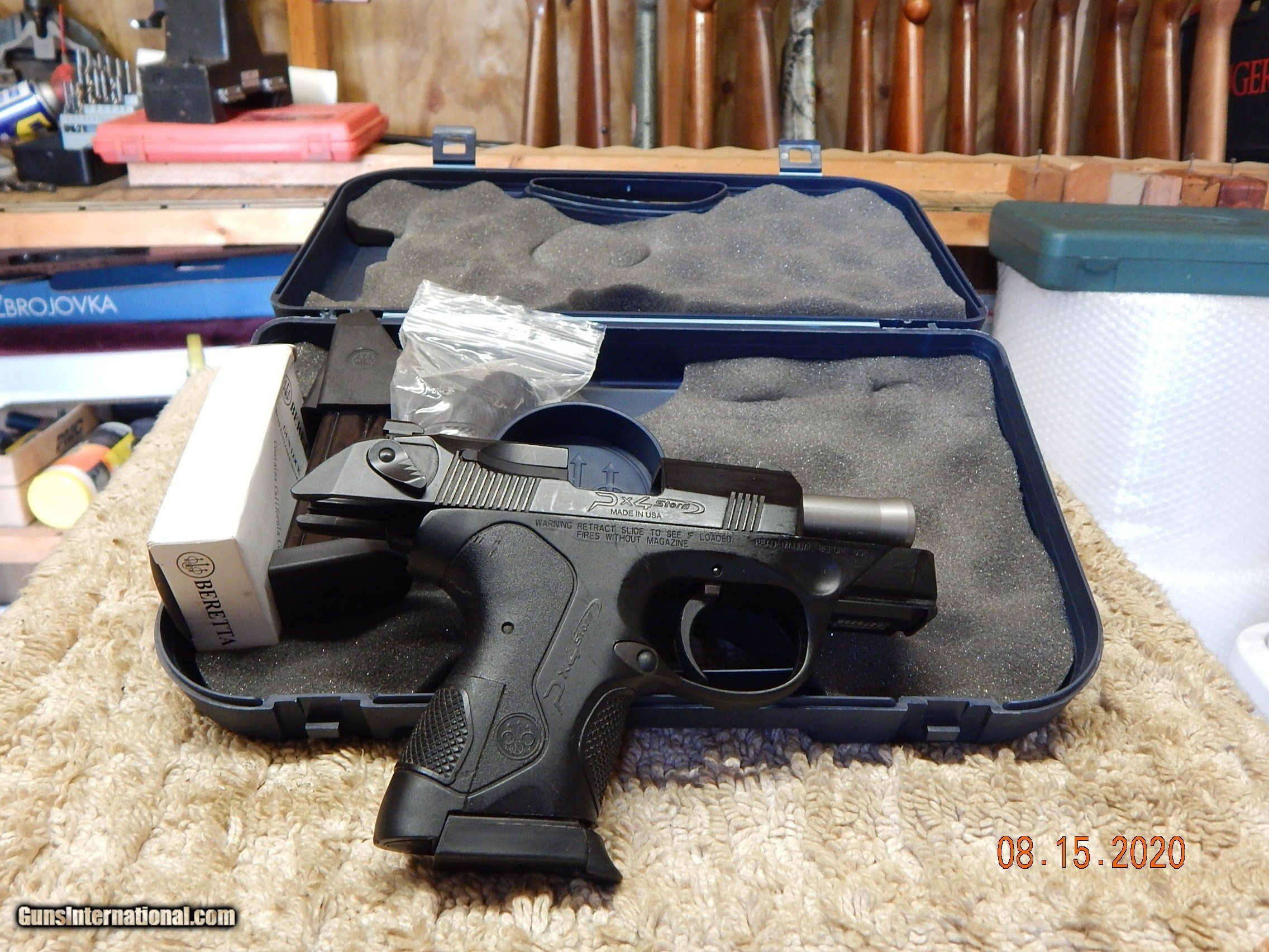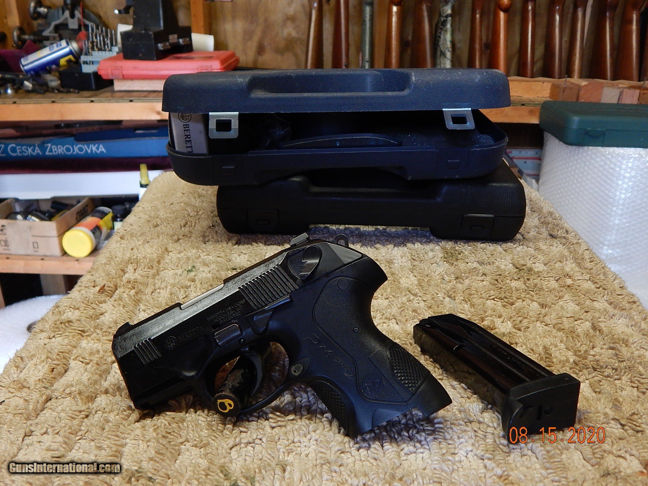 Description: A used like new P4 Storm Sub Compact pistol in factory case with papers, owners manual, two 13 round magazines, lock and magazine loading tool. 3 inch barrel and hammer block safety. Shipping 30.00. Payment by money order check. SOLD Handgun Caliber: 9x19mm Parabellum (9mm Luger, 9x19mm NATO) Manufacturer: Beretta Model: P4 Storm Compact Barrel Length: 3.5 |