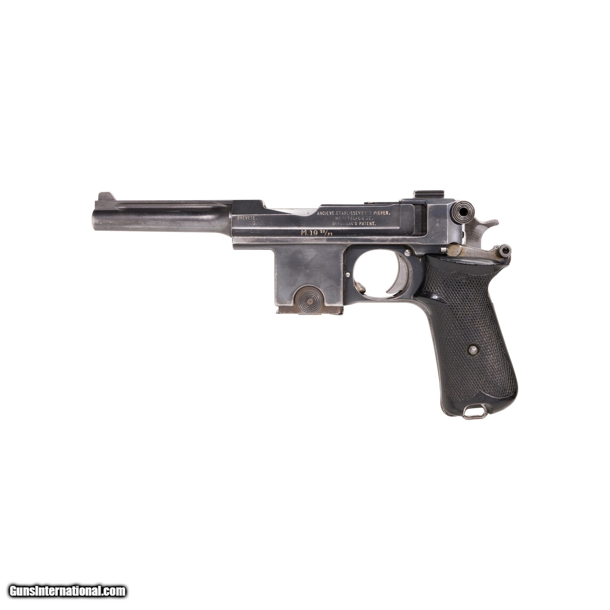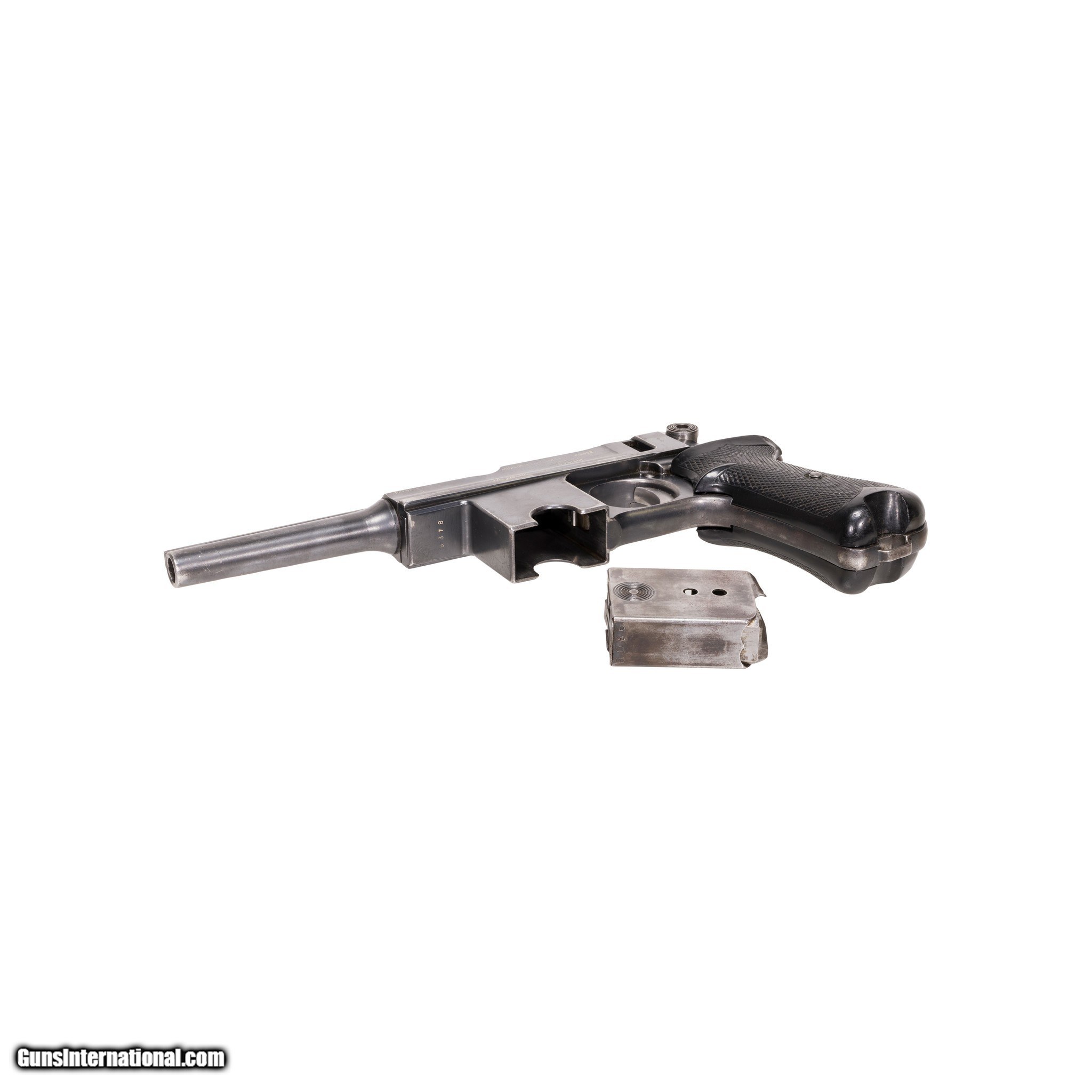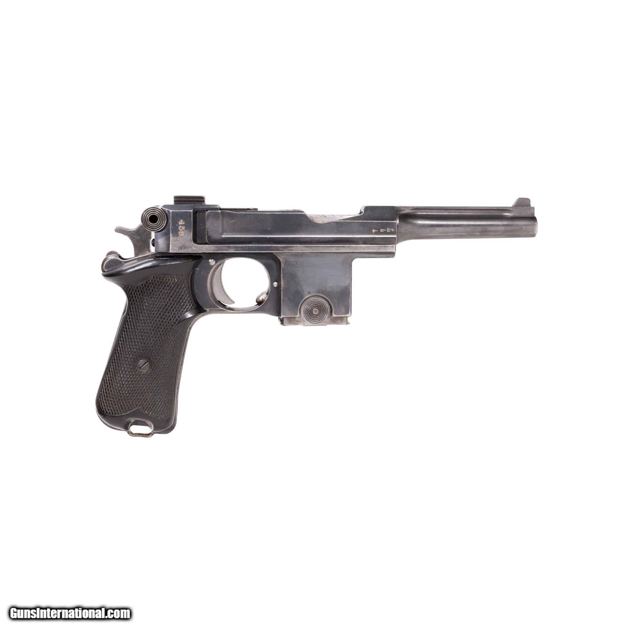 Description: Danish Bergmann-Bayard M1910/21 semi automatic pistol with custom presentation case. 9mm Bermann (9mm Largo) caliber. 4" barrel. Serial # 5878. Interesting piece that would make a great addition to any collection. SOLD Manufacturer: Bergmann-Bayard Model: M1910/21 Serial Number: 5878 |