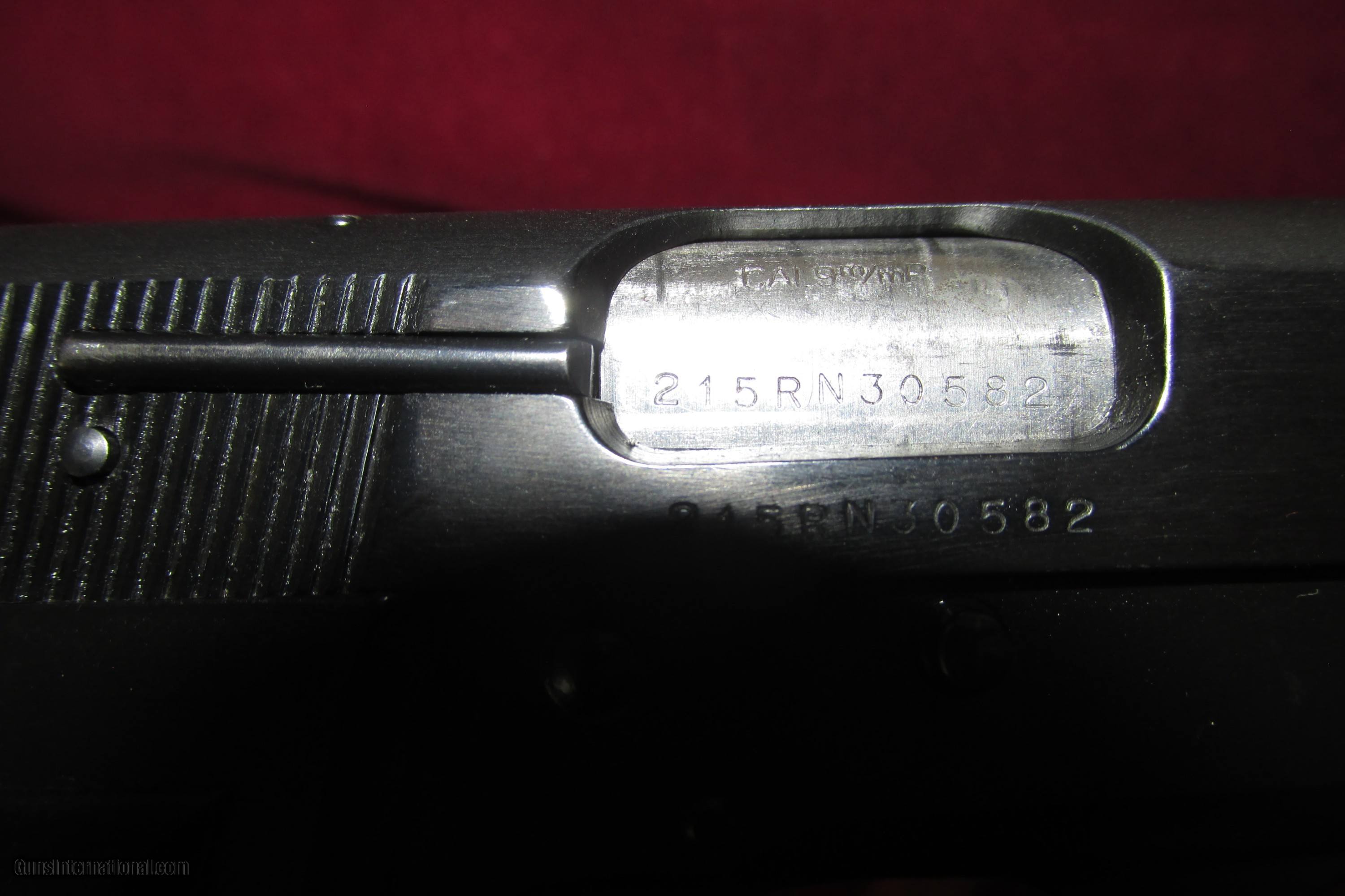 Description: Browning Hi-Power made in 1979 this model "215" LIGHT WEIGHT frame hard to find this is the only one I have ever seen. These were made as special orders for military or border guards to the best I can find. Bore is excellent and the condition is very good. Comes with a factory mag or I can put a 10 round instead. All matching serial numbers. $950 OBO shipping $30.00 SOLD Handgun Caliber: 9x19mm Parabellum (9mm Luger, 9x19mm NATO) Manufacturer: Browning Model: Hi-Power Serial Number: 215RN30582 Bore Condition: excellent |