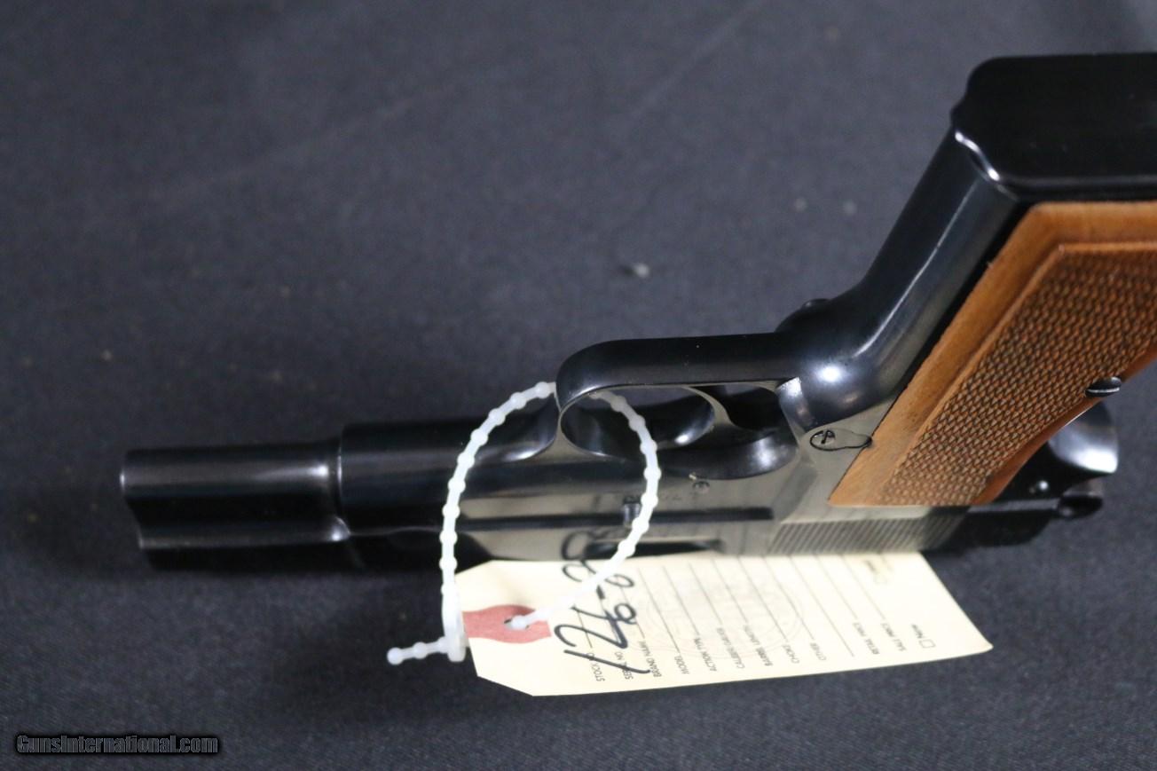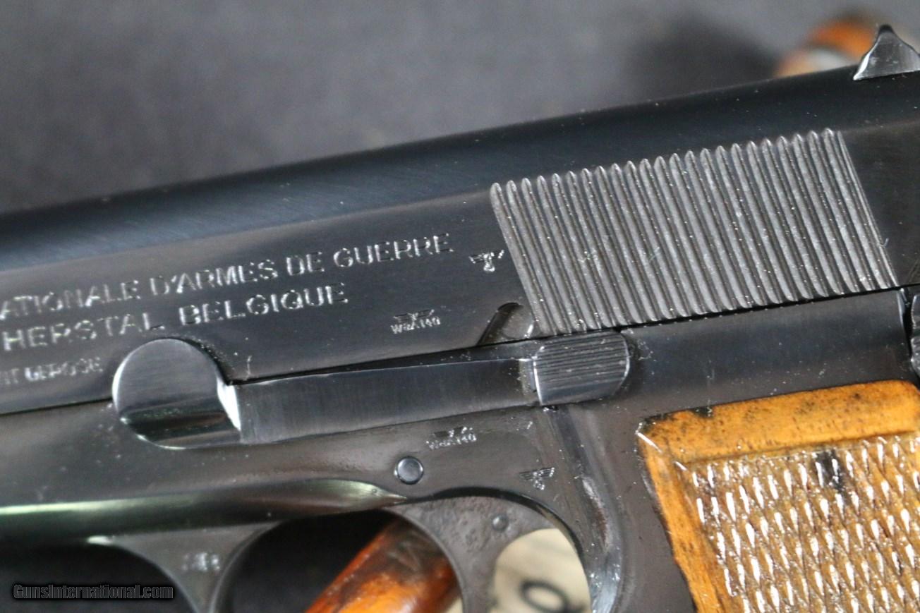 Description: MADE IN BELGIUM UNDER NAZI CONTROL. THIS PISTOL HAS HAD A FULL RESTORATION AND WILL HAVE ITS OWN VIDEO ON YOUTUBE. PLEASE ADD $35 FOR SHIPPING. PLEASE NOTE THE VIDEO WILL BE UP SHORTLY. RETURN POLICY: We offer a 3 day return policy. Items must be returned in the same condition as received. Notification must be made with-in 3 days of receipt at dealer. All fees are non-refundable no exceptions. LAW-A-WAY: We offer a 60 day law-a-way with a 1/3 up front and 1/3 every 30 days. Once started all sales are final with no exceptions. CONDITIONS OF SALE: Art’s Gun Shop makes no express or implied warranty or representation with respect to items being advertized or sold. In no event shall Art’s Gun Shop be held responsible for correctness of description, representation, or warranty of items sold by them or their representatives. All items sold as collector items. All liability concerning the use of any weapons purchased from Art’s Gun Shop or its representatives is assumed by the purchaser. SOLD Manufacturer: BROWNING Model: HI POWER Serial Number: 170564 Caliber Info: 9 MM Condition: EXCELLENT Metal Condition: EXCELLENT Wood Condition: EXCELLENT Bore Condition: EXCELLENT Action: SEMI Triggers: SINGLE |
