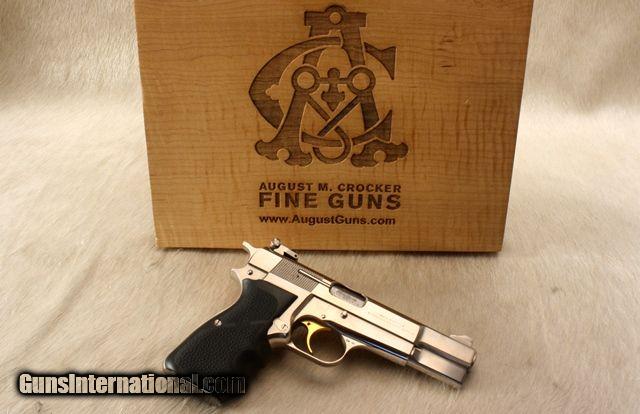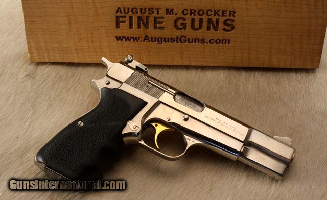 Description: Clean used BROWNING HI-POWER 9mm. This is an estate piece out of a large collection of ‘safe queen’ guns that show little to no signs of use. Gun is tight, no signs of wear or abuse, look at photo of barrel bushing area-none. Research on theshows some believe the early 80’s version of these were hard chrome, others say nickel, others refer to them as “Silver Nickel Chrome”. It does not have the yellow hue of nickel so I am inclined to believe hard chrome. Serial number if you want to research is 245PM560xx They are sought after and quite rare especially in this condition. If you have a question about this gun, just ask. . August M Crocker's direct line 512-567-PULL (7855) WHY CALL? My name is August and I am the owner. As an authorized dealer I can only publish retail pricing. You will get the lowest delivered quote by calling my direct line. 512-567-7855. You won't be passed off to an assistant or clerk, you will speak directly to ME, the owner. Have the confidence you are buying the exact gun you need for your goals by discussing it with a master class competitor, instructor and fitter with over 40 years of experience in the shooting sports. I AM DIFFERENT. No one handles my guns but ME. When you get a gun from me it has been handled, photographed and repacked only by ME. No one else handles (or abuses) your new gun. Ask any retailer how different it is to what they see daily and you will know it is HUGE. I have been the largest seller of Caesar Guerini & Syren in the USA for 4 straight years and a respected dealer because of this difference. Please, call me and you will understand why. I want to earn your business. SOLD |