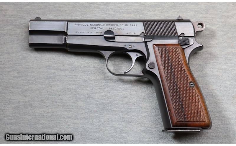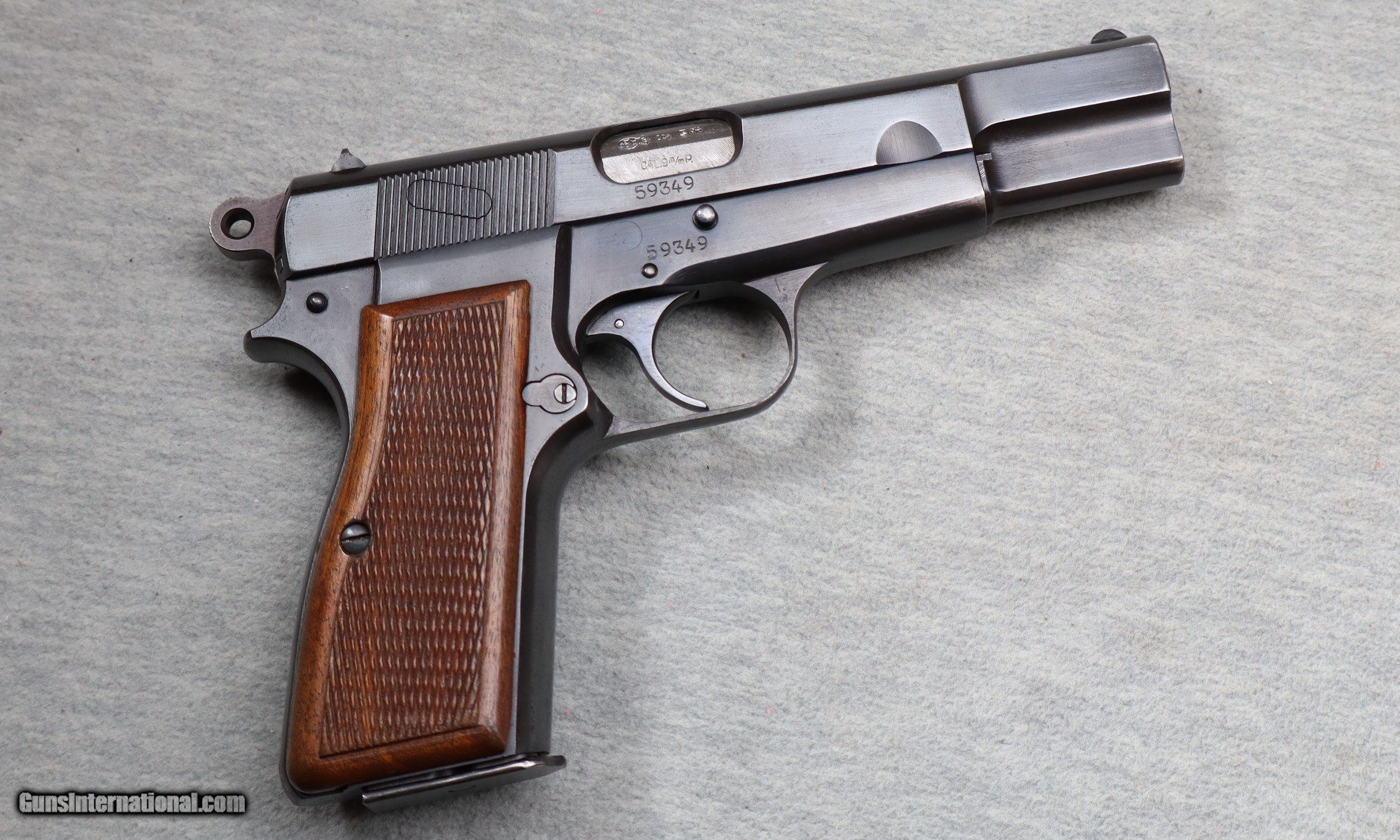 Description: Excellent condition, light finish wear, few small nicks & scratches, comes with one mag. FN High Power 9mm semi auto pistol, 4 3/4" barrel, polished blue finish, fixed sights, single action trigger, serrated slide stop, safety lever & ring hammer, and checkered wood grips. 9mm Luger Chambers: Semi auto Metal Condition: Excellent Bore Condition: Bright Barrels: 4 3/4 Triggers: Single action Butt Pad: Wood grips Sights: Factory iron sights Item Location: La Vista, NE Price: $1,699.99 Contact Seller |