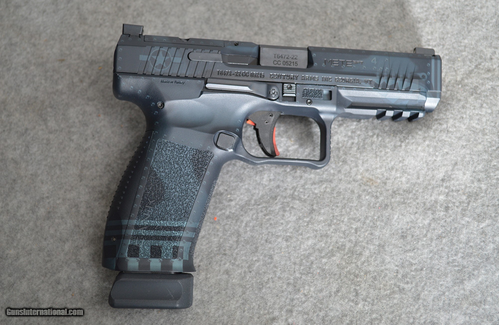 Description: The Canik Mete SFT has unmistakable lines that were the obvious match for one of the most iconic looks in US history. The Blue Bomber Canik Creations design pays homage to the historical icon that played such a big part in American history. From the ever recognizable sharks mouth, to the details of the bomb insignia, and pinup girl, the craftsmanship and detail on this creation is truly something to see in person. This pistol is in excellent condition, and comes with the factory box, and all factory accessories. 9mm Luger Chambers: 9 MM Luger Metal Condition: Excellent Bore Condition: Bright and shiny Barrels: 4.5" barrel Triggers: Crisp Weight: lbs. Sights: Iron sights Item Location: Huntsville, AL Price: $499.99 Contact Seller |