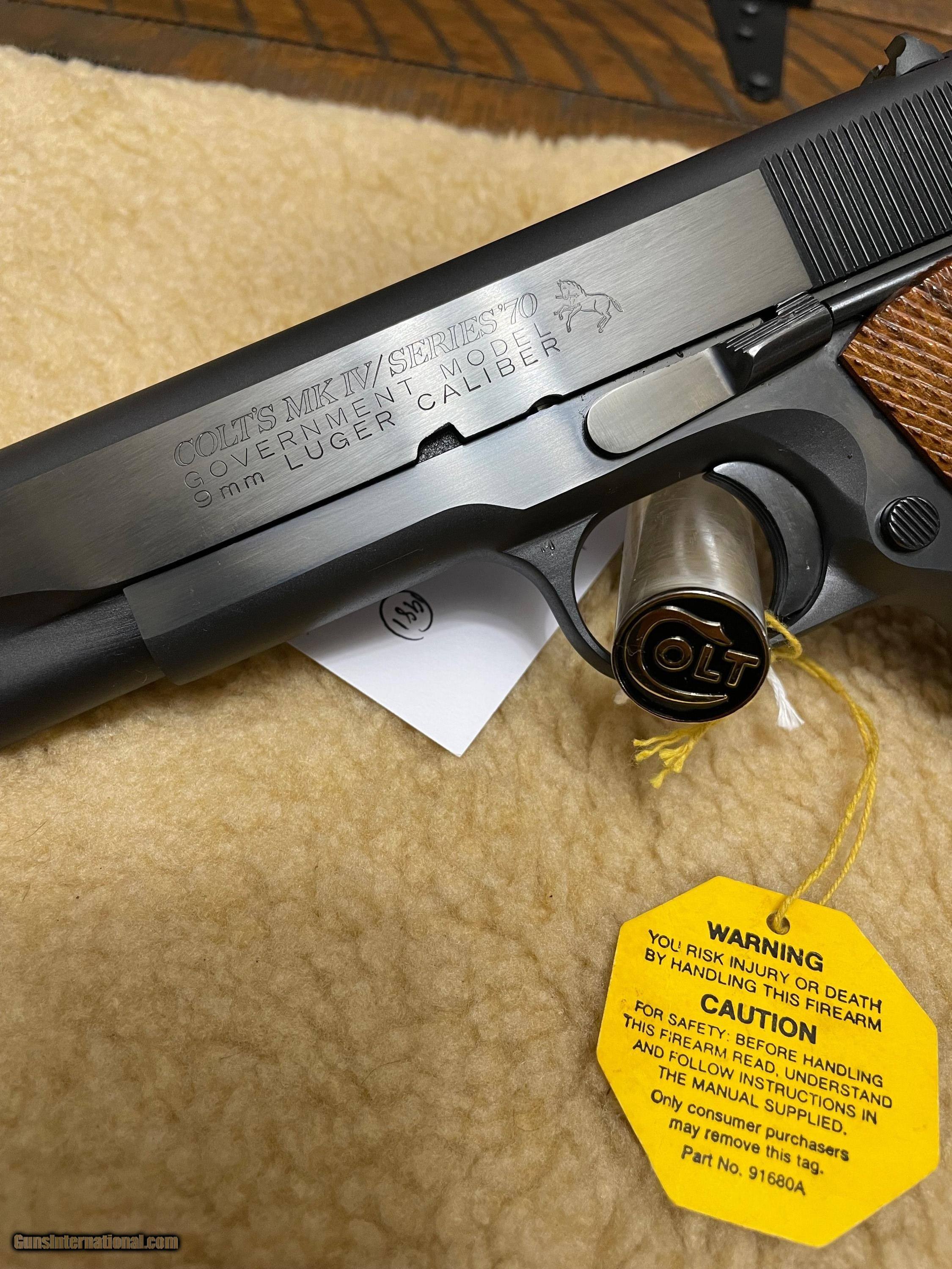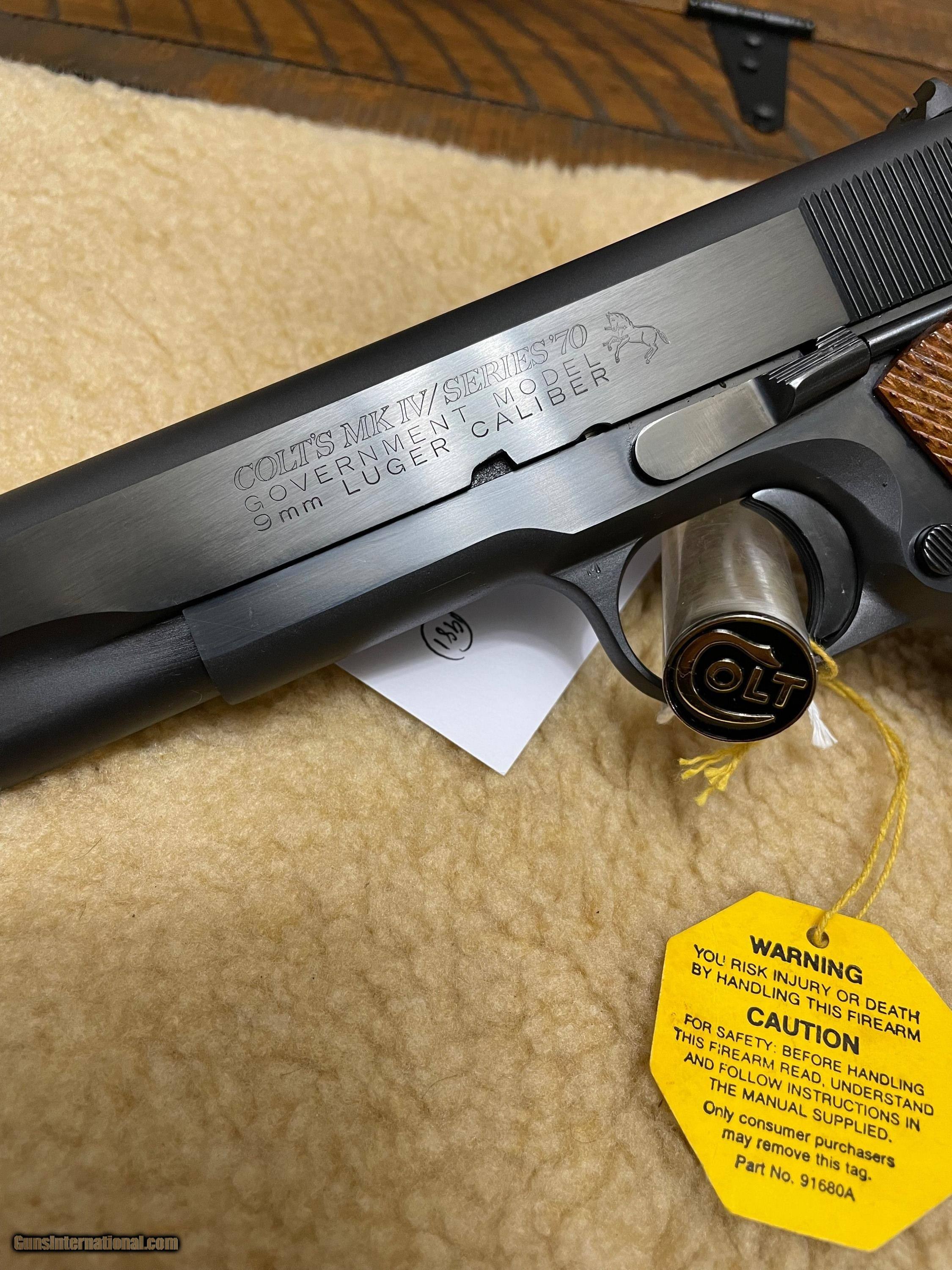 Description: RELISTING DUE TO NON PAYING BUYER JOHN DECARO ....Colt 70 Series MKIV in 9mm Caliber, this pistol is in mint condition all original with matching box /label and Colt paperwork. This gun would make a perfect candidate to any collection don't miss out. SOLD |