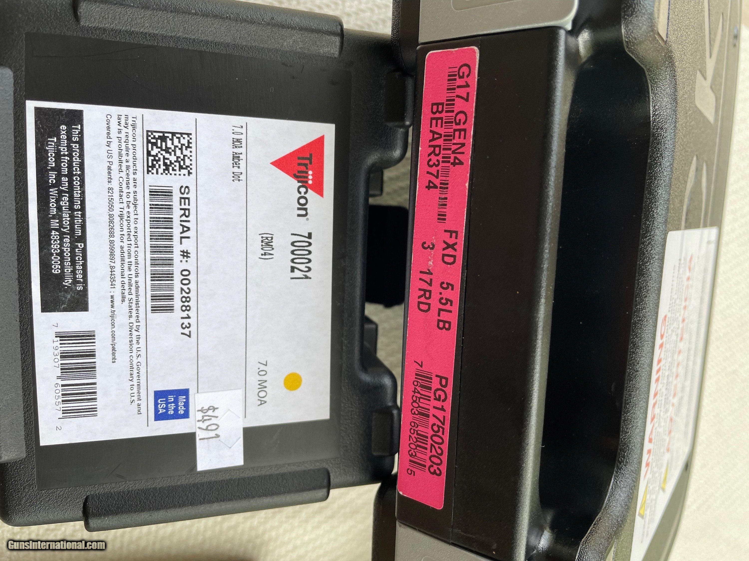 Description: Glock 17 gen 4 with RMR optic Tridgicon. Many upgrades 3 magazines . Optic never needs batteries,fiber optic SOLD Handgun Caliber: 9x19mm Parabellum (9mm Luger, 9x19mm NATO) Manufacturer: Glock Model: Model 17 gen4 Barrel Length: 5 Condition: Used Case: FactoryPlastic Item Location: Naples Fl |