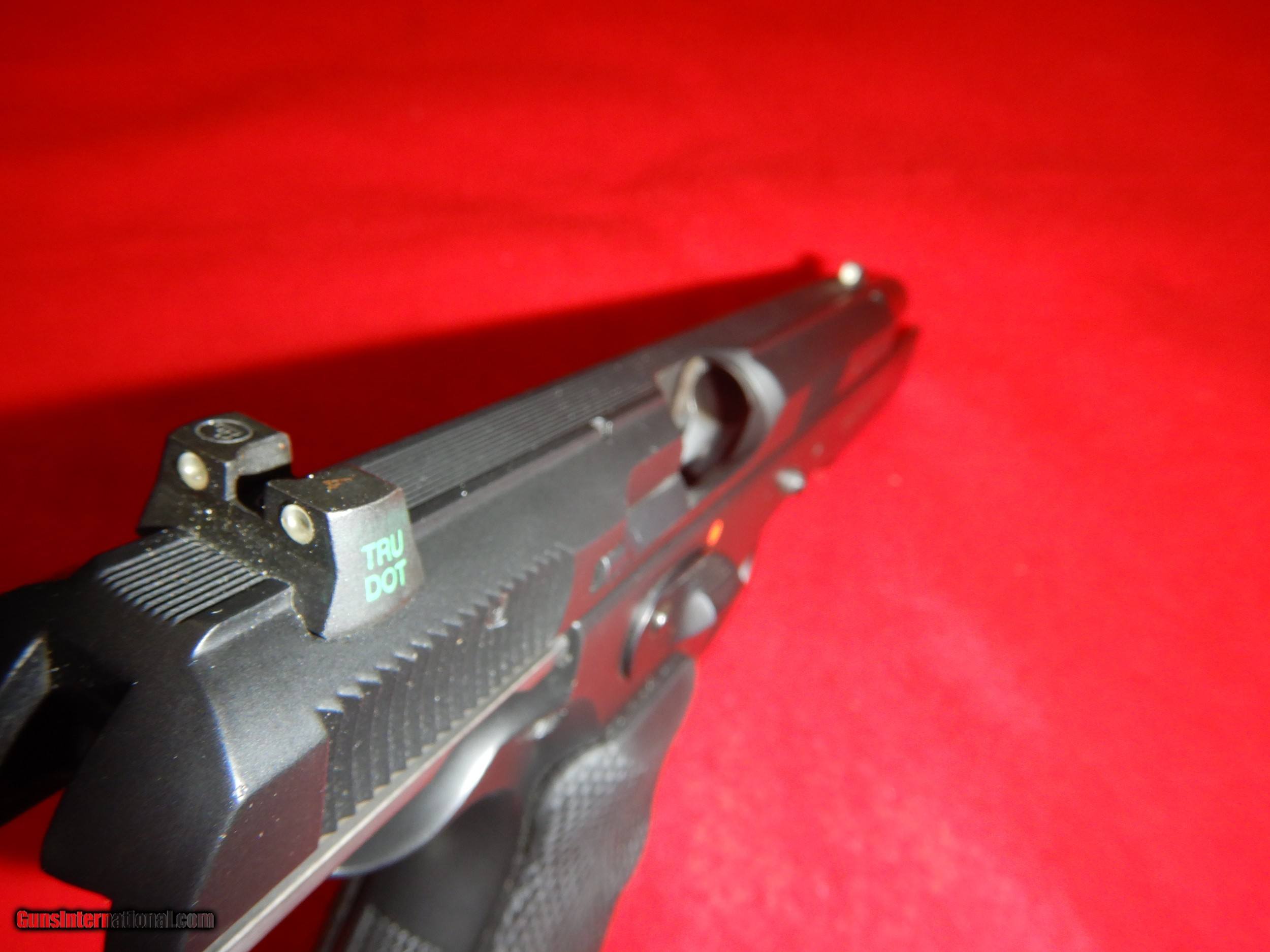 Description: THIS 9MM IS A CZ 75 SP-01 PRE-OWNED DA/SA PISTOL IN 9MM CALIBER. THIS FULL FEATURED PISTOL HAS ALL OF THE BELLS AND WHISTLES CZ IS KNOWN FOR, SUCH AS NIGHT SIGHTS, BEAVER-TAIL GRIP, EXTENDED MAG RELEASE, COMMANDER STYLE HAMMER, RUBBERIZED GRIP PANELS, 18 ROUND MAG, RAIL AND MUCH MORE. WHETHER COMPETITION, HOME PROTECTION OR CARRY, THIS ONE IS UP TO THE TASK. **BUYER PAYS SHIPPING AND INSURANCE** SOLD Handgun Caliber: 9x19mm Parabellum (9mm Luger, 9x19mm NATO) Manufacturer: CZ-USA Model: 75 SP-01 Serial Number: C118222 Barrel Length: 4.6 Condition: EXCELLENT Metal Condition: EXCELLENT Wood Condition: N/A Bore Condition: EXCELLENT |