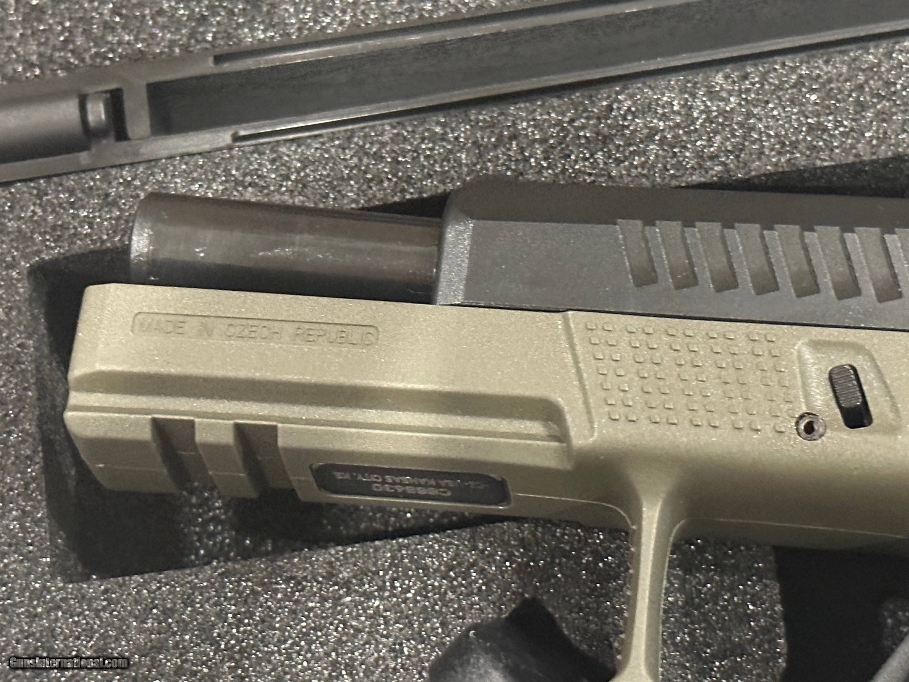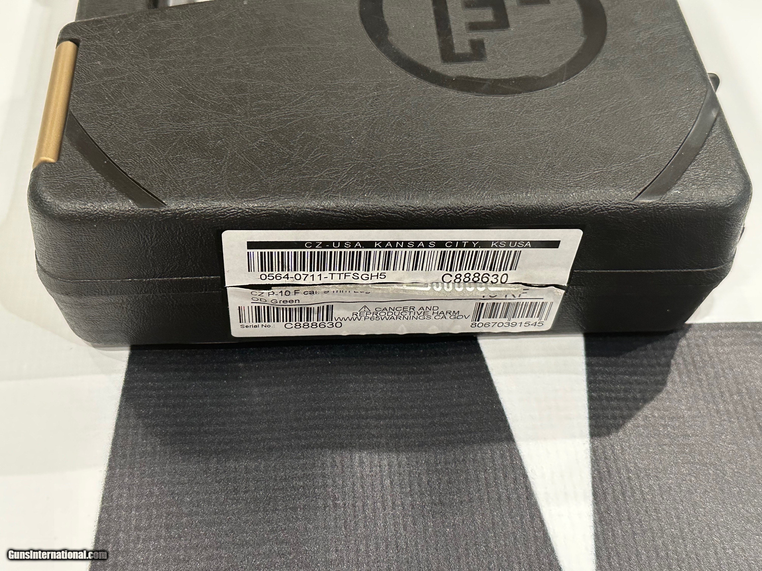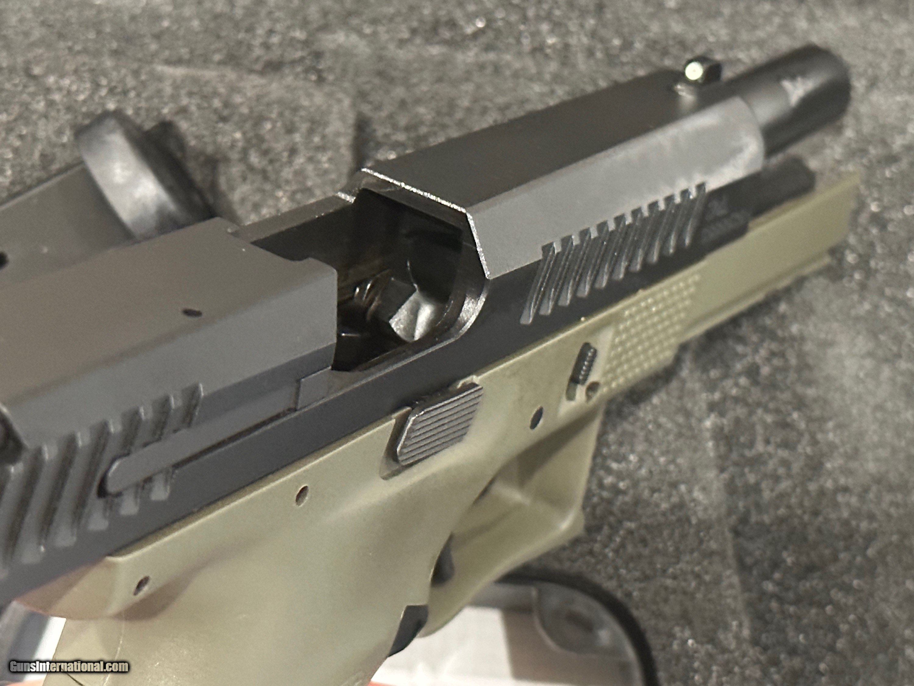 Up for sale is a lightly used CZ P-10F in OD green. This firearm has been lightly used with less than 200 rounds put through it. The pistol has been very well cared for and has been cleaned and oiled well. The firearm will come with the case and all of the accesories shown.