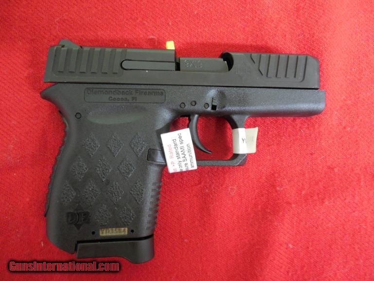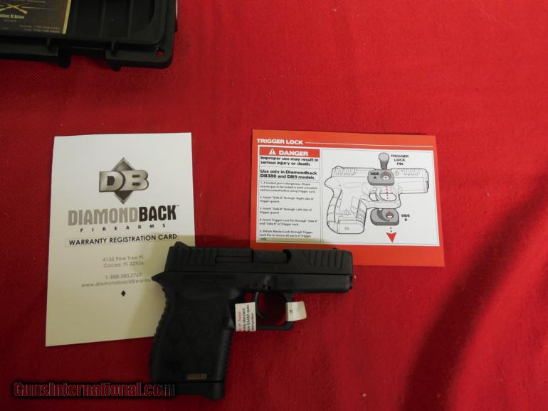 Description: FACTORY NEW IN BOX CLICK ON PICTURE TO ENLARGE DIAMONDBACK/TAURUS Micro-Compact Diamondback DB9 Micro-Compact DAO 9mm 3" 6+1 Poly Grip/Frame Black The Diamondback DB9 is a micro-compact 9mm automatic polymer framed pistol made entirely in the USA. Designed with safety in mind, the DB9 features a "Zero-Energy" striker firing system with a mechanical firing pin block, a steel magazine catch to secure a sheet metal magazine and real windage-adjustable sights, all in a lightweight pistol. A steel trigger with dual connecting bars allows for a crisp, smooth, five pound DAO trigger pull. The DB9 features an FEA (Finite Element Analysis)-designed slide and barrel that are stronger than any comparable firearm, resulting in durability with less felt recoil. The absence of removable pins and tools makes field stripping easier than ever, and this pistol features real windage-adjustable sights. The slide, barrel, and internal parts are coated to resist corrosion. It is available in several different model options, including the exclusive EXO nickel boron slide finish, an extended compensated barrel, night sights, or colored frames. SPECIFICATIONS: Mfg Item Num: DB9 Category: PISTOLS Type :Pistol Action :Double Caliber :9mm Barrel Length :3" Capacity :6+1 Safety :Firing Pin Block Grips :Integral Sights :Adjustable Rear Weight :11 oz Frame Finish :Black Frame Material :Polymer Barrel Type :4140 Steel Slide Description :Black 4140 Steel Case Type : Barrel Length Range :3.00" to 3.99" Weight Range :9.01 oz to 15.99 oz WE TAKE Money Order OR Certified Checks PERSONAL CHECKS HELD TILL CLEARED SHIPPING FOR HAND GUNS $ 25.00 SHIPPING FOR RIFLES $ 40.00 Sorry No sales outside U.S. NO- CAL. N.Y. MA. MD. DC U.S. SALES ONLY PLEASE BE SURE THIS GUN IS LEGAL IN YOUR STATE I WILL SHIP GUN TO YOUR FFL DEALER, YOU NEED TO SEND ME THE PHONE # OF YOUR DEALER SO I CAN CALL HIM FOR HIS FFF LICENSE WHEN E-MAILING ME I WILL REPLAY, IF YOU DO NOT SEE A REPLAY FROM ME, CHECK YOUR JUNK MAIL, IT MAY GO THERE SOMETIMES THANK YOU AND GOD BLESS OUR TROOPS !!!!!!!!!!!!!!!!!!!!!!!!!!!!!!! SOLD |
