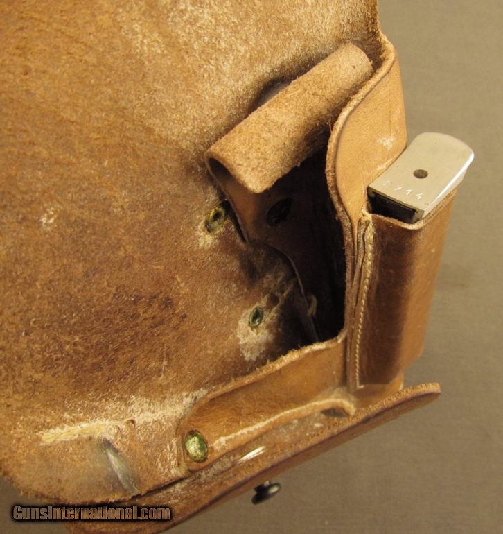 Description: Serial #AK2714, 9mm Makarov, 3 3/4” barrel with an excellent, bright bore. This is a two-tone, C.A.I. import that exhibits very little evidence of use and has 98-99% of the original blue remaining on the slide. The frame is bright and the checkered black plastic thumb-rest grips are in fine shape with some very minor handling marks and blemishes present. The pistol is housed in a lightly worn military flap holster along with two finger-rest magazines (one with matching numbers). This is a nice Hungarian-made pistol that is in excellent condition overall. FFL SOLD Manufacturer: FEG Model: PA-63 Serial Number: AK2714 Caliber Info: 9mm Gauge Info: 9mm |