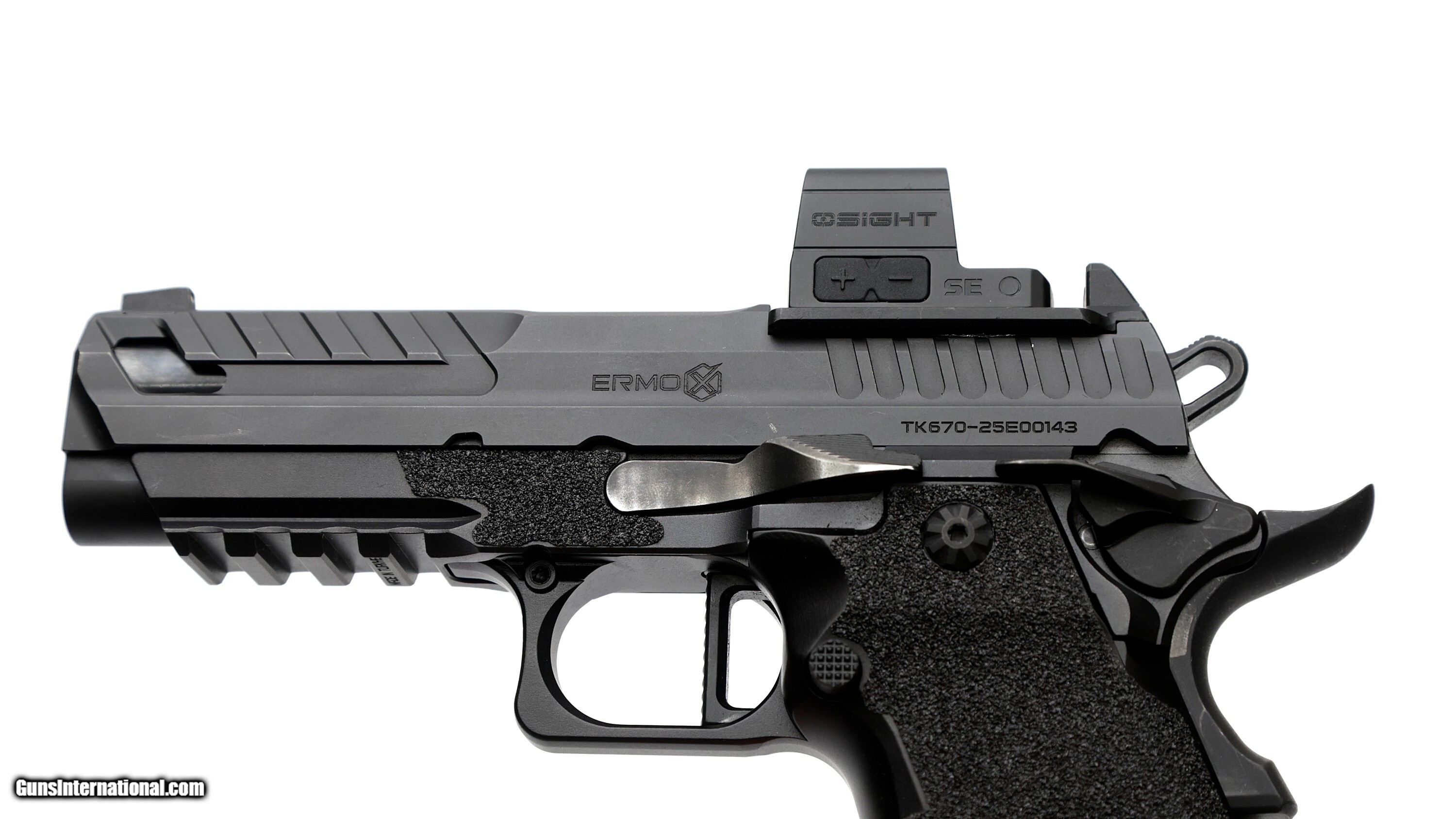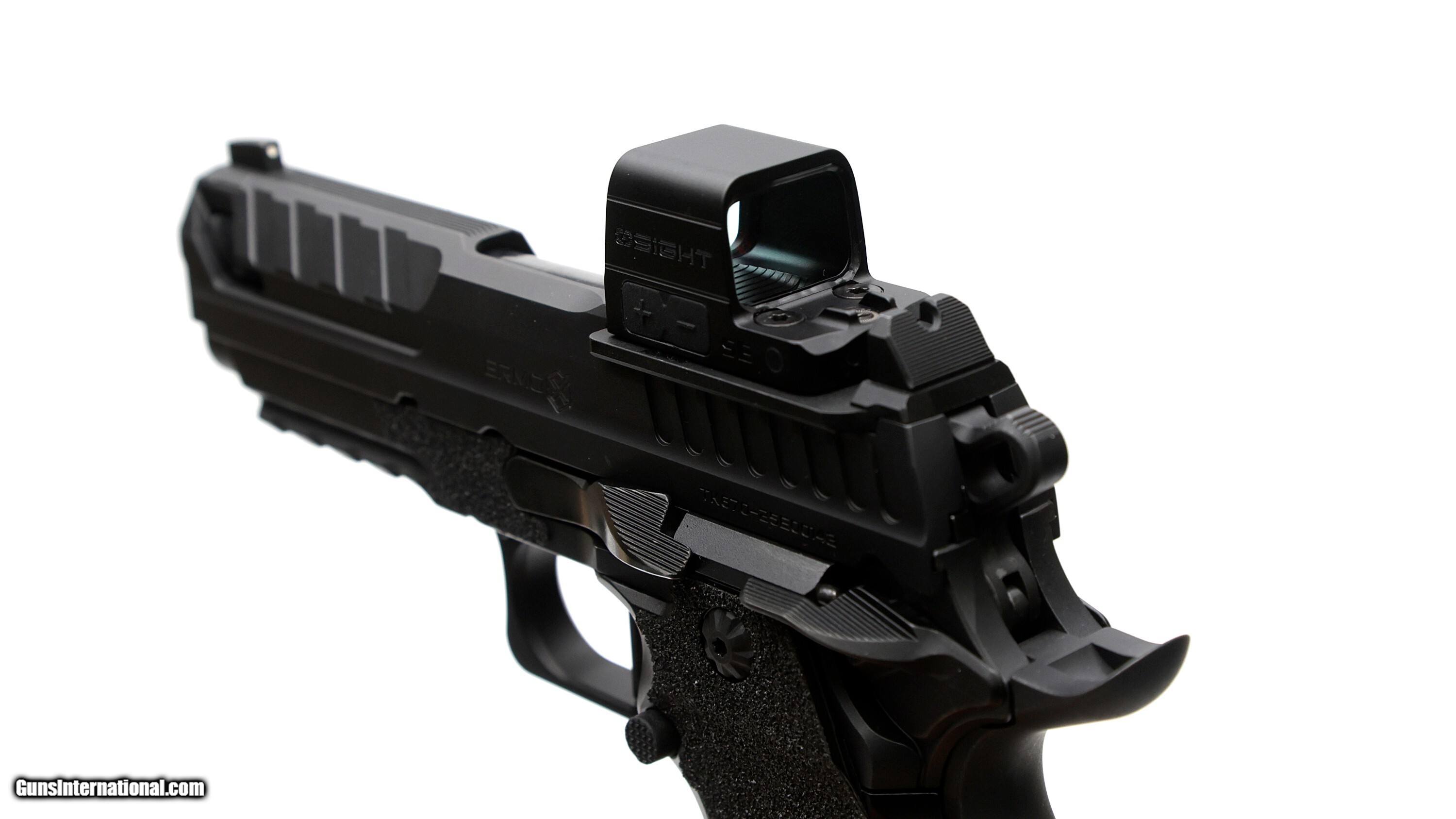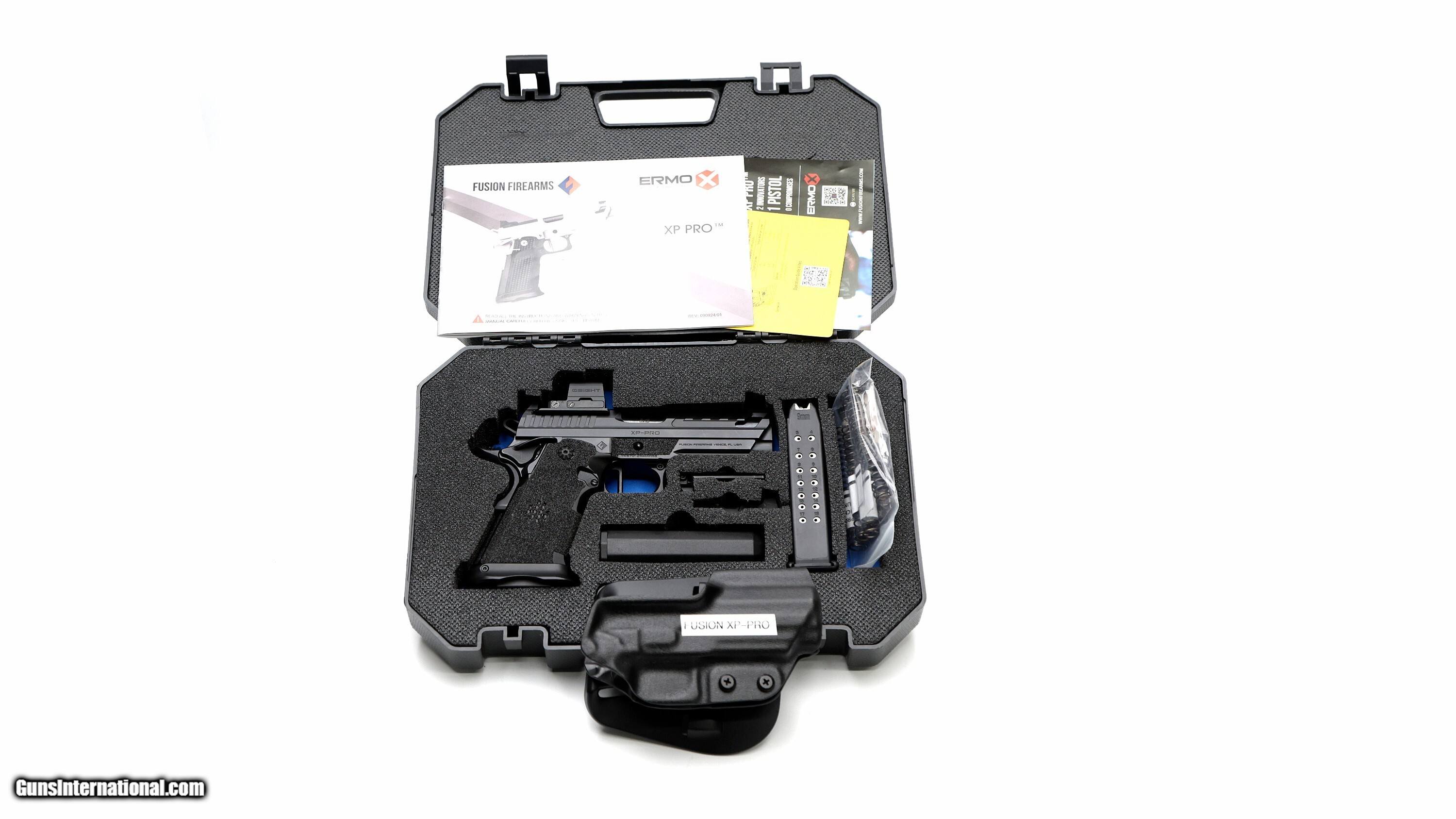 Description: Fusion Firearms XP Pro 9mm Pre-Owned Condition: Pre-Owned — Great Condition This Fusion Firearms XP Pro is in great condition with minor handling marks on the slide. The bore is clean and bright, and the action functions smoothly. A high-performance competition and carry pistol built on a 1911/2011-style platform with optics-ready slide. Comes complete with optic, two extended magazines, OWB holster, and case. Model: XP Pro Caliber: 9mm Luger (9x19mm) Finish: Black metal Frame: Steel or aluminum frame (1911/2011-style) Slide: Steel slide, optics-ready with Osight SE red dot installed Controls: