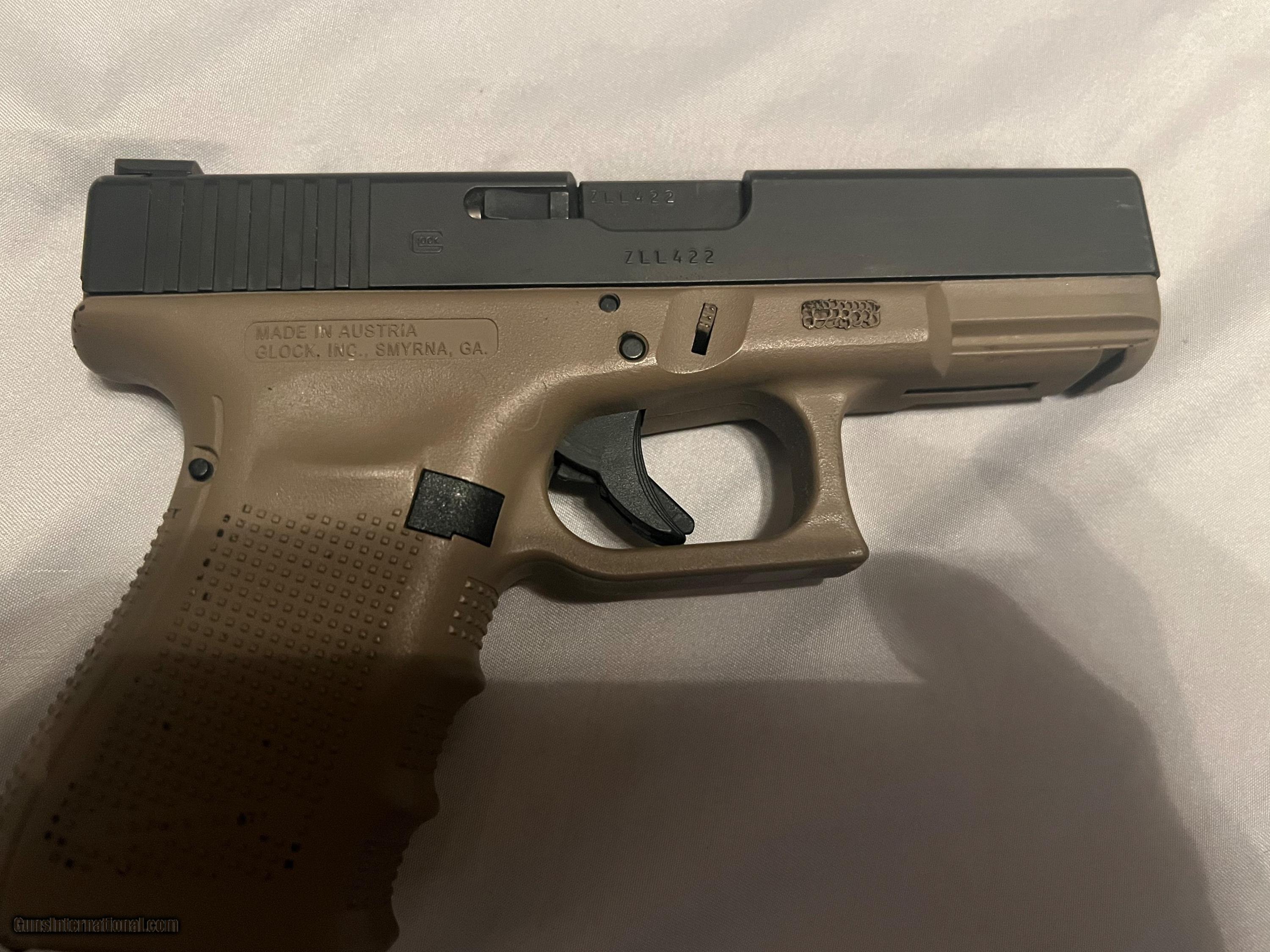 Description: Hi, I am selling my gen 4 Glock 19. It has roughly 2000 rounds through it and mostly has been a carry gun. The frame has been Cerakoted FDE. it has some upgraded wolf trigger springs, as well as a extended slide release tab. It also has true glow green sites. Comes with the 2 standard magazines Will ship to your FFL after receiving a copy of the FFL and payment. no sales to restricted states SOLD Handgun Caliber: 9x19mm Parabellum (9mm Luger, 9x19mm NATO) Manufacturer: Glock Model: 19 Condition: Good |