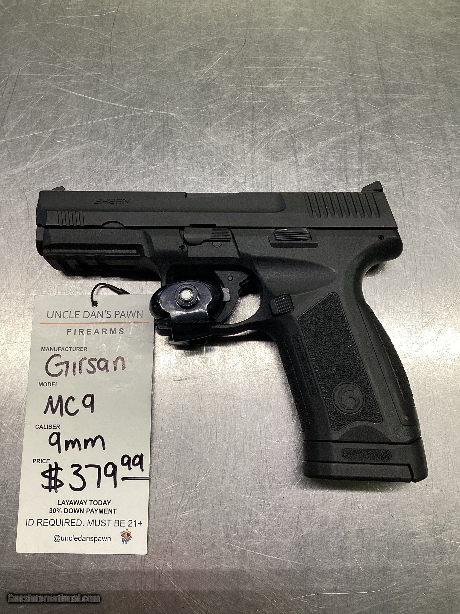 Description: Guns Listing ID: 608545 Girsan 9mm MC9 Black T6368-21CJ00555 No box or extra magazines Manufacturer: GIRSAN Model: MC9 Condition: Used - Non-Certified Barrels: 5" BARREL Action: SEMI AUTOMATIC Gauge: 9mm flobert Finish: black Price: $379.99 Contact Seller |