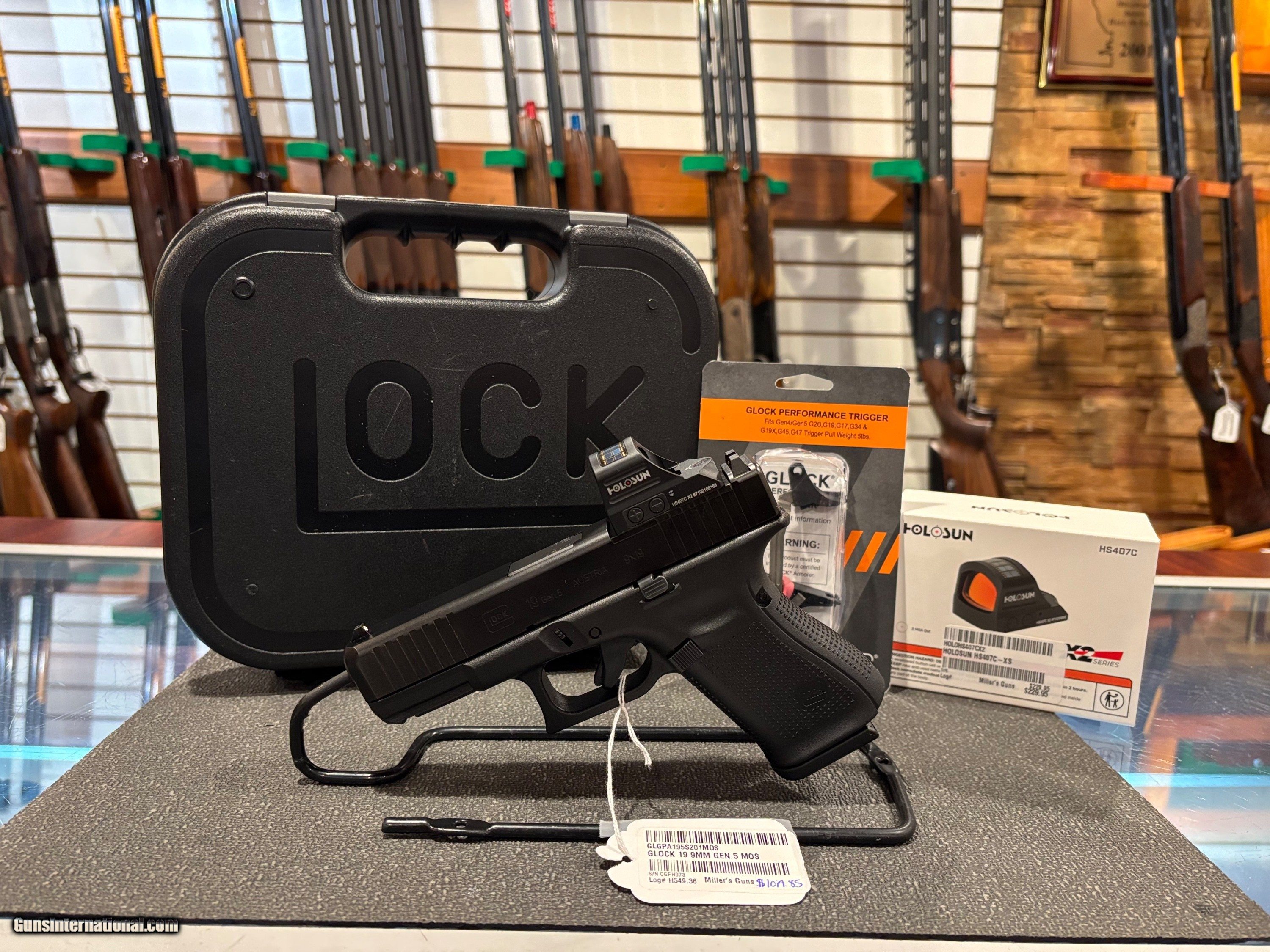 Description: Glock 19 Gen 5 9mm 10 round capacity (3) magazines included Holosun 407CX2 optic installed and zeroed Glock Performance Trigger installed Handgun Caliber: 9x19mm Parabellum (9mm Luger, 9x19mm NATO) Manufacturer: Glock Model: 19 Gen 5 Serial Number: CGFH073 Barrel Length: 4.02” Condition: NEW Price: $1,019.85 Contact Seller |