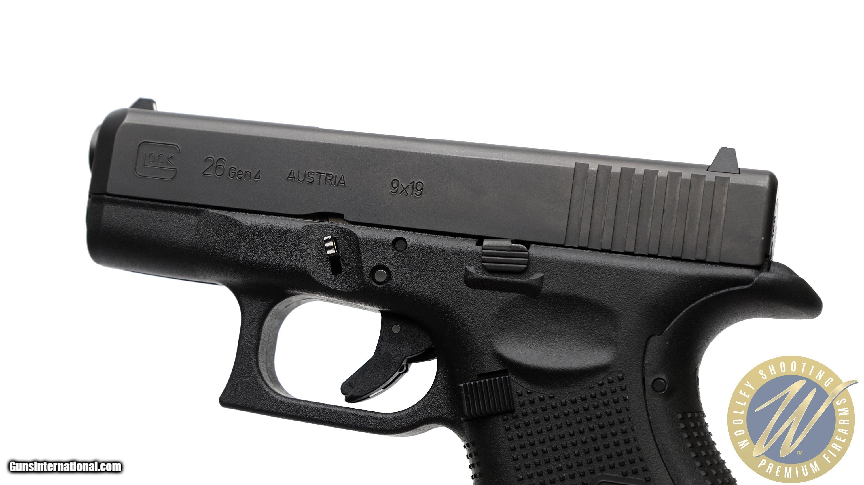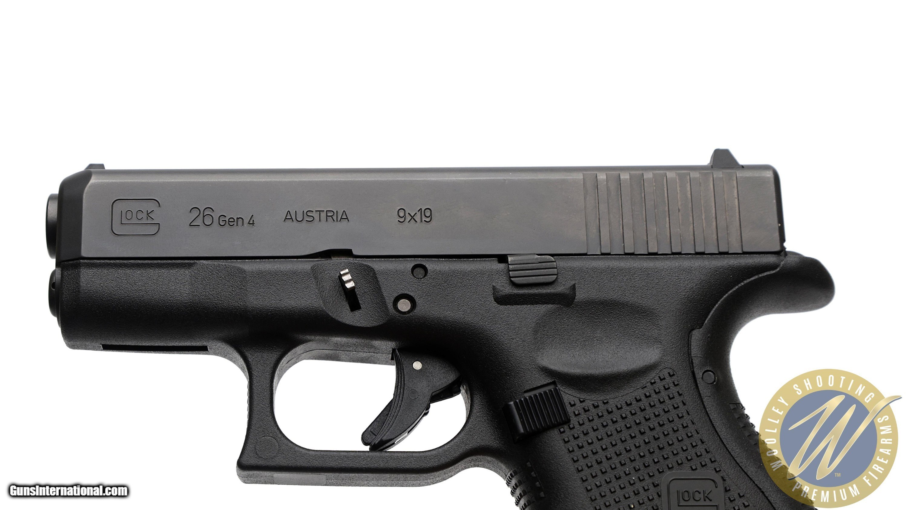 Description: Glock 26 Gen4 9mm Pre-Owned Condition: Pre-Owned — Excellent Condition This Glock 26 Gen4 is in excellent condition. The finish is well-preserved, the bore is clean and bright, and the action functions flawlessly. A compact, reliable 9mm subcompact ideal for concealed carry. Model: Glock 26 Gen4 (Subcompact) Caliber: 9mm Luger (9x19mm) Generation: Gen4 Finish: Black polymer frame with nDLC slide finish Frame: Polymer frame with interchangeable backstraps (Gen4 feature) Slide: Steel slide with nDLC finish Controls: