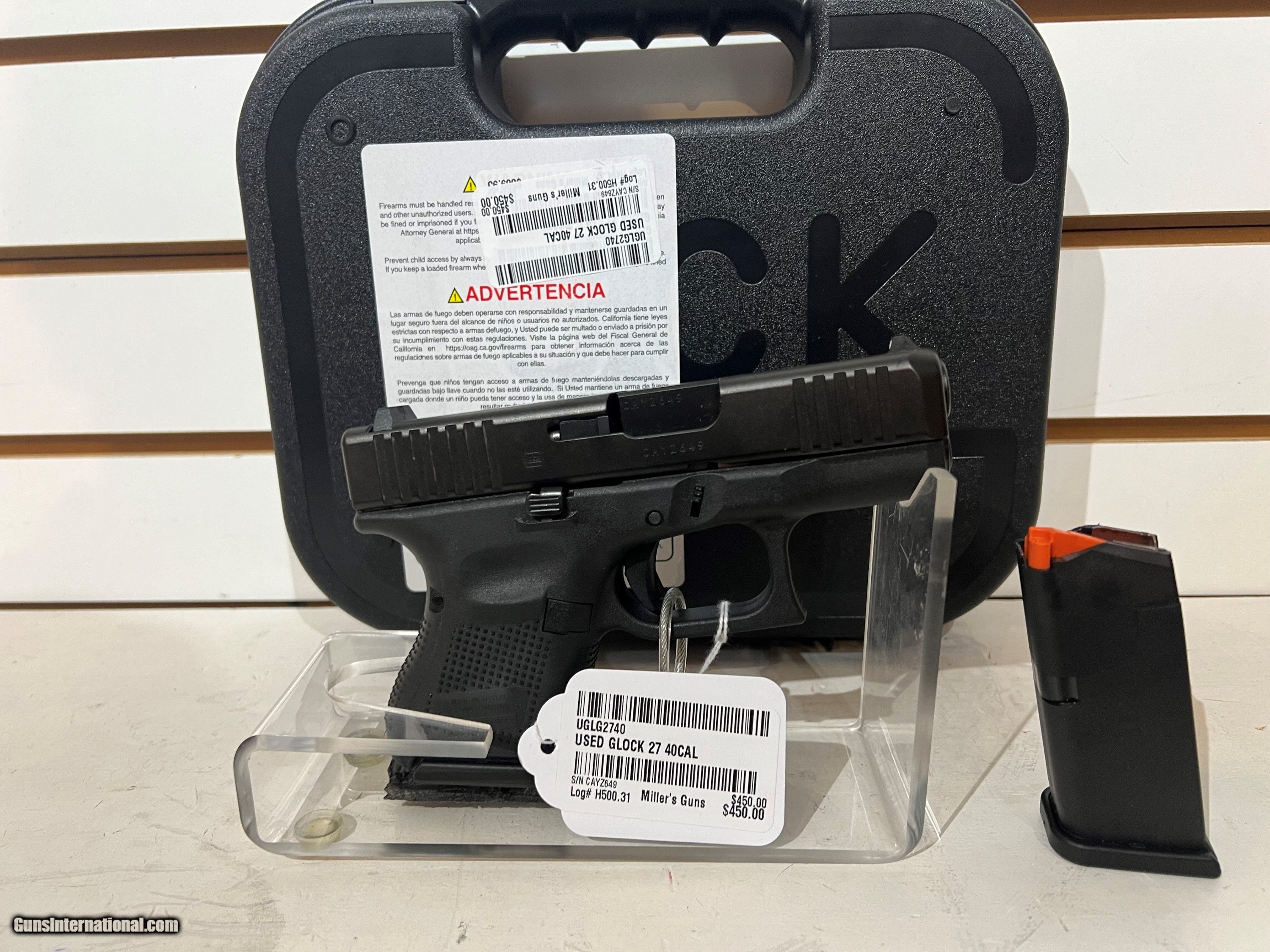 Description: Pre Owned firearm Glock 27 Caliber 40 S&W Magazines - 2 + Speed Loader Length (Overall)**163 mm | 6.42 inch Slide Length159 mm | 6.26 inch Width (Overall)33 mm | 1.30 inch Slide Width27.5 mm | 1.08 inch Height incl.Mag.107 mm | 4.21 inch Line of Sight (Polymer)137 mm | 5.39 inch Line of Sight (Steel)136 mm | 5.35 inch Line of Sight (GNS)135 mm | 5.31 inch 7Trigger Distance**70 mm | 2.76 inch Buyer pays shipping Millers Gun Center Located in New Castle, Delaware "Home of TAX-Free shopping" No Credit Card Fees Send Gun international inquiry and then call 302-328-9747 to complete your purchase SOLD Handgun Caliber: .40 Smith & Wesson (.40 Auto, 10 x 21 mm) Manufacturer: Glock Model: 27 GEN 5 Serial Number: CAYZ649 Condition: Very Good |