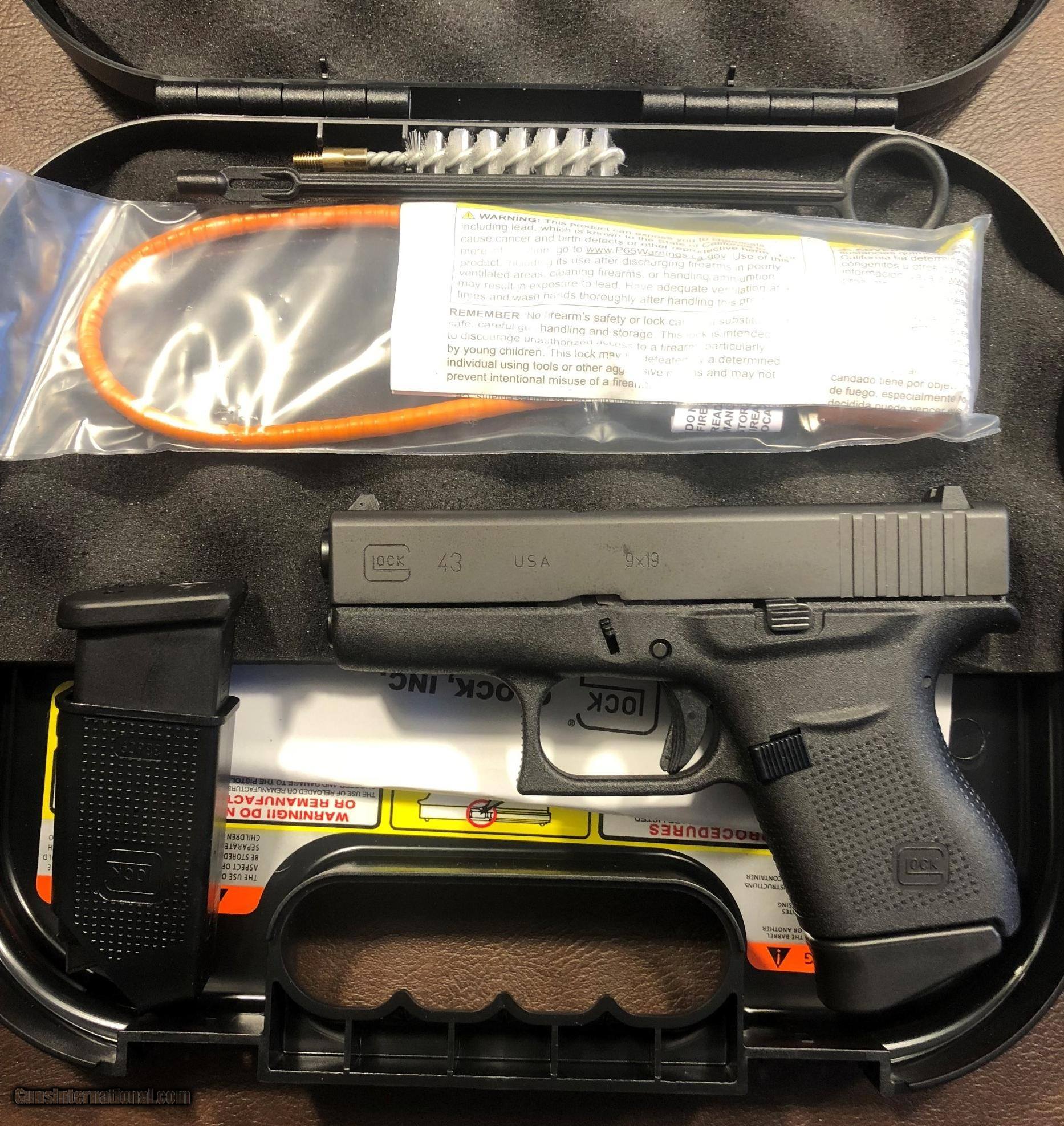 Description: Brand new in factory box Glock 43 pistol in 9mm Credit card fee 3% Shipping $25 to lower 48 states Illinois residents must pay 7.5% state sales tax SOLD Handgun Caliber: 9x19mm Parabellum (9mm Luger, 9x19mm NATO) Manufacturer: Glock Model: 43 Condition: new Metal Condition: new Wood Condition: new Bore Condition: new Action: semi auto |