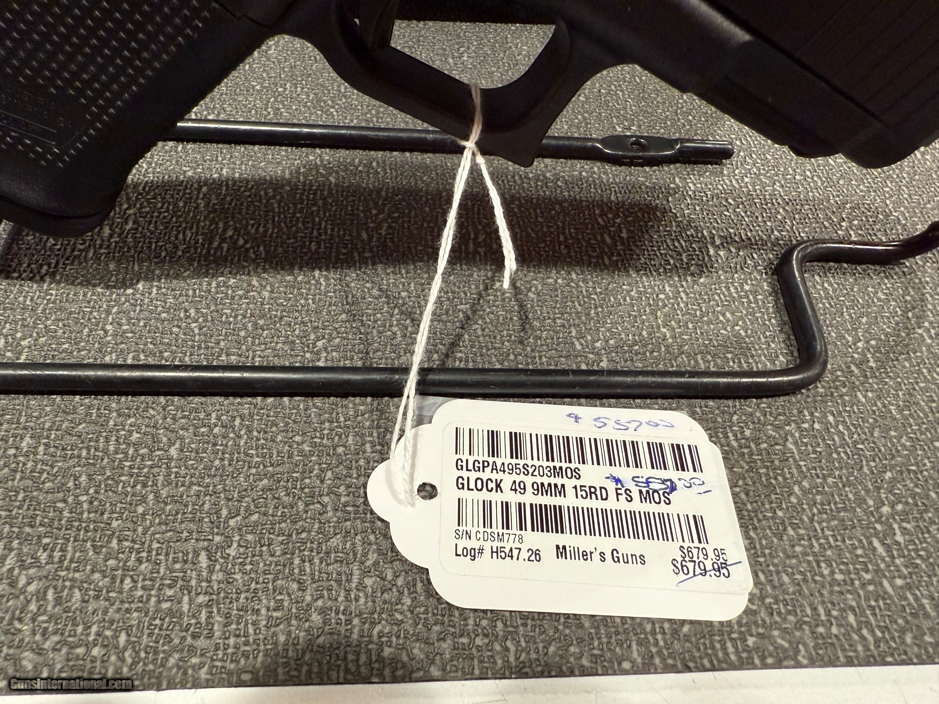 Description: Glock 49 MOS 9mm 15 round capacity (3) magazines included Optics ready slide Handgun Caliber: 9x19mm Parabellum (9mm Luger, 9x19mm NATO) Manufacturer: Glock Model: 49 MOS Serial Number: CDSM778 Barrel Length: 4.49 Condition: NEW Price: $557.00 Contact Seller |
