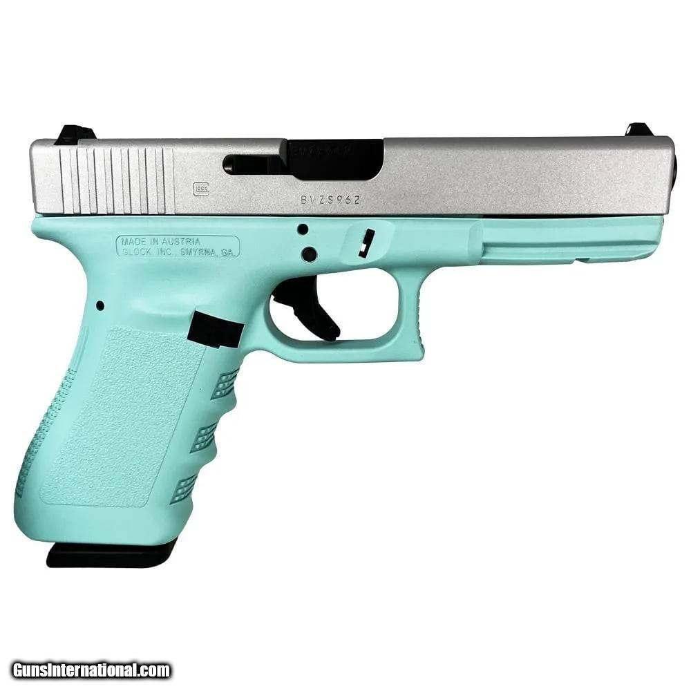 Description: Guns Listing ID: 246902 G17 GEN 3 STANDARD 9MM 4.5\" BARREL 2/17RD MAG AUSTRIA TIFFANY BLUE FRAME AND CRUSHED SILVER SLIDE Manufacturer: GLOCK Model: G17 GEN 3 Caliber Info: 9MM LUGER (9X19 PARA) Condition: new Barrels: 4.5" BARREL Action: SEMI AUTOMATIC Finish: TIFFANY BLUE Price: $720.99 Contact Seller |