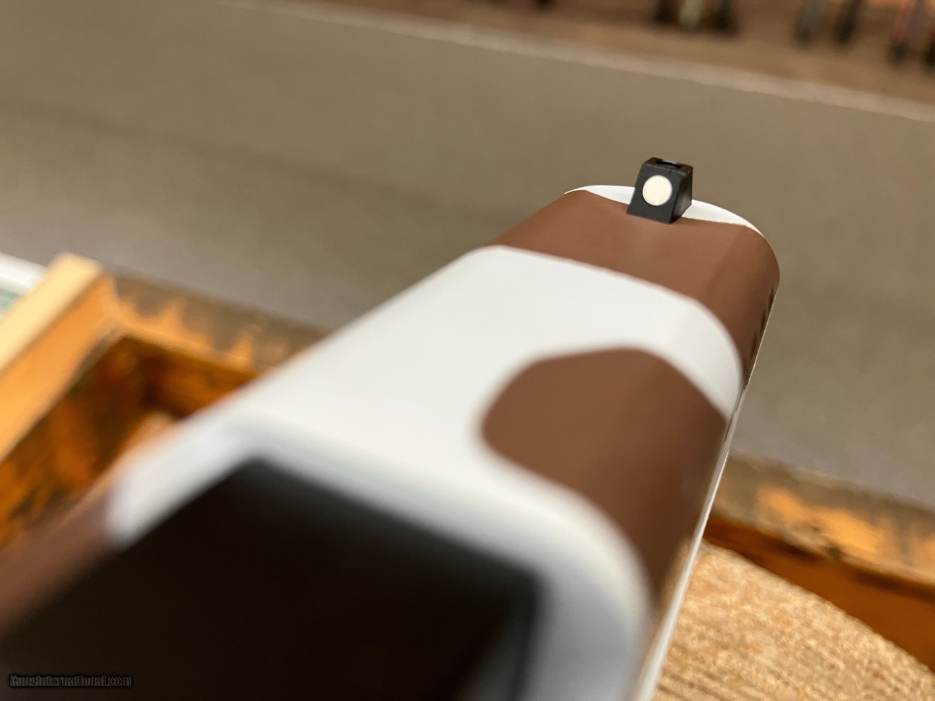 Description: - Includes Two 10-Round Magazines - Features GLOCK's Safe Action System - Precision-Milled Front Serrations - GLOCK Marksman Barrel - No Finger Grooves The G43X Rail features a compact Slimline frame with a slim mounting rail, making it ideal for concealed carry. The G43X Rail has the same compact grip length, a minimal profile, and a built-in beavertail as the G48, providing a comfortably balanced, versatile grip suitable for various users. Type Striker Fired Size Sub-Compact Barrel Length 3.41" Magazines 10 Rounds (2) Sights Fixed Sights Caliber 9MM Color Brown Cow Pattern Handgun Caliber: 9x19mm Parabellum (9mm Luger, 9x19mm NATO) Manufacturer: Glock Model: G43X Serial Number: ALAB133 Condition: NEW Stock: 810100237677 Price: $599.99 Contact Seller |