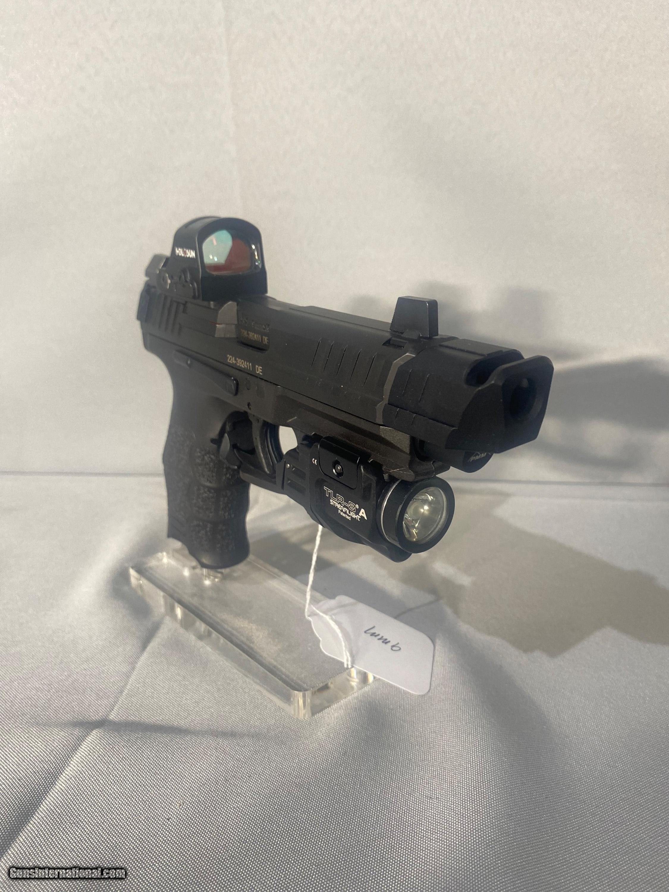 Description: H & k Vp9 tactical with Parker Mountain compensator comes with 2 17 rounds original box And all paperwork is gun is slightly used Has a 507c Holosun red dot has a TLR –8A Stream light. And laser combo Gun is in excellent condition barely used like new. Please view the pictures. Any questions Please don't hesitate to email or call buyer pays shipping. We accept credit card purchase add 3%. SOLD Handgun Caliber: 9x19mm Parabellum (9mm Luger, 9x19mm NATO) Manufacturer: H&k Model: Vp9 tactical Bore: Shiny Condition: Like new Metal Condition: Like new Bore Condition: Like new |