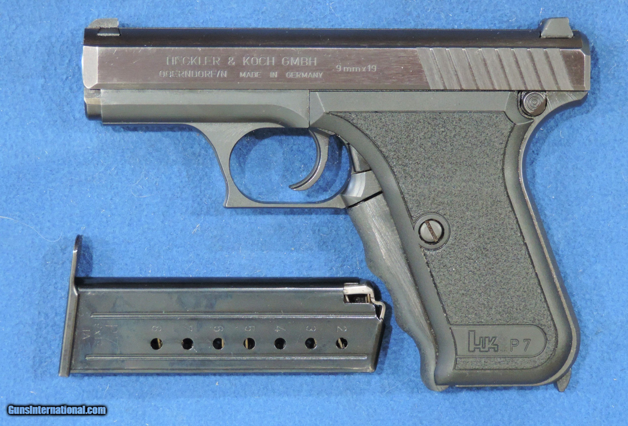 Description: Inv. 7079 Heckler & Koch Mdl. P7, Cal. 9mm, Ser. 192XX, Minty as it can get. This "Closet Queen" looks just about factory new. It shows no sign of use anywhere. The original factory finish is at the very least 99.999%. The little loss there is, is due to the very slightest sharp edge silvering at the very end of the slide. All parts are correct and the gun locks up and functions proper. There is no sign of use anywhere. The grips and the the barrel are pristine. It comes with the original factory manual and take down tool. The bore is mirror bright with razor sharp rifling. You will not find a nicer one at anywhere near this price. ..SHIPPED.....$2395.....OBO To purchase this firearm or if you want to request more information contact us at: Email ckguns[at]ymail[dot]com Phone 201-512-0002 Cell 201-575-6838 FAX 201-215-4759 We accept most major credit cards. Prices shown are Discounted 3% for Cash or Check. The buyer must be familiar with all the laws governing the purchase and the ownership of firearms in their own city and state. The Yankee Armorer, Inc is not responsible for any failure to comply with or observe these laws. The Yankee Armorer, Inc will only ship after full payment and receipt of all required documents. Shipping: Add $35.00 for handguns, $45.00 for long guns. New Jersey buyers are subject to a 7% sales tax. The Yankee Armorer, Inc offers a 3 day inspection period with full refund upon return of intact firearm and in the original condition. The Yankee Armorer, Inc offers a no interest lay away program - 25% down; 25% in 30 days; 25% in 60 days; and full payment in 90 days. Any violation of this policy is subject to restocking and forfeiture of all payments. Any variation from this policy must be agreed to in advance. Unshipped Cancelled sales are subject to a 20% restocking fee. Be advised that all firearms sold by The Yankee Armorer, Inc. or the Gun Exchange, LLC (SELLER) are sold as collector’s items. They have not been fired or tested for safety and must be examined by a license gunsmith prior to use. By purchasing any item from the (SELLER), you are agreeing to hold the (SELLER) free from any damages or lawsuits of any nature. Any item left for transfer or storage will be charged to $25.00 per month, per item from the day of its receipt. Any variation from this policy must be agreed to in advance. Store hours 10:00 am to 5:00 pm Tuesday -Saturday. It's always best to call for appointment. Store 201-512-0002, cell 201-575-6838. SOLD |