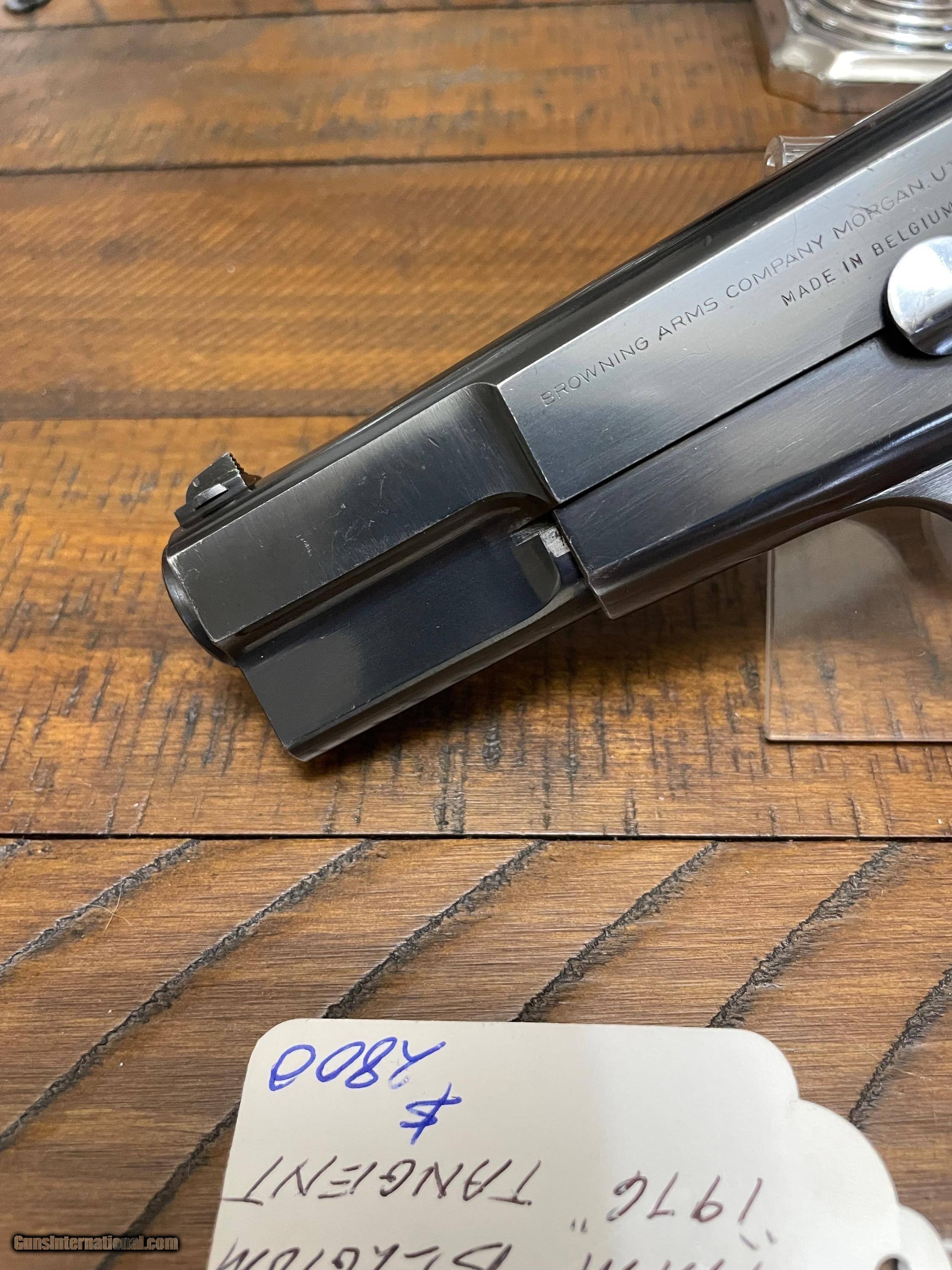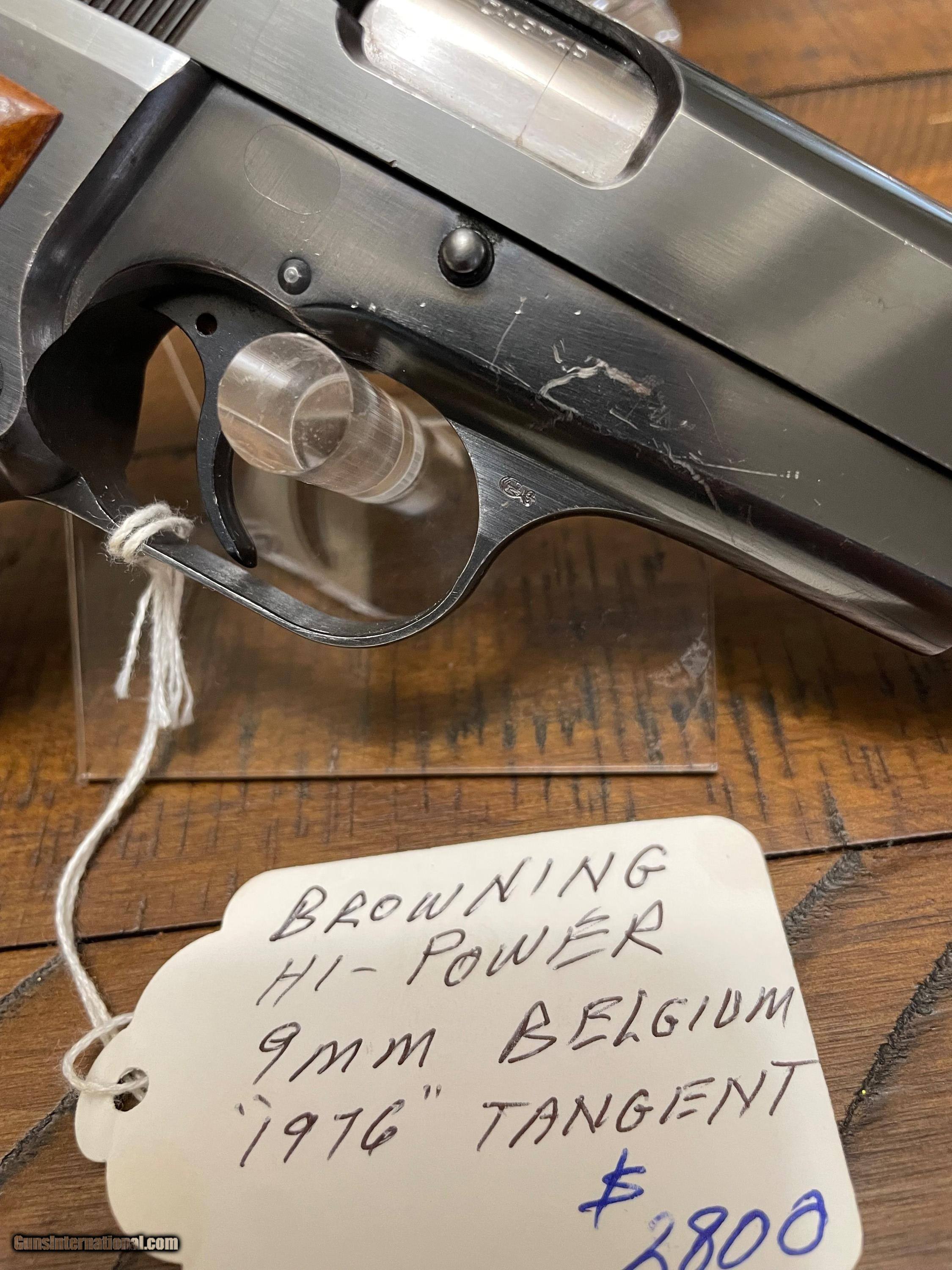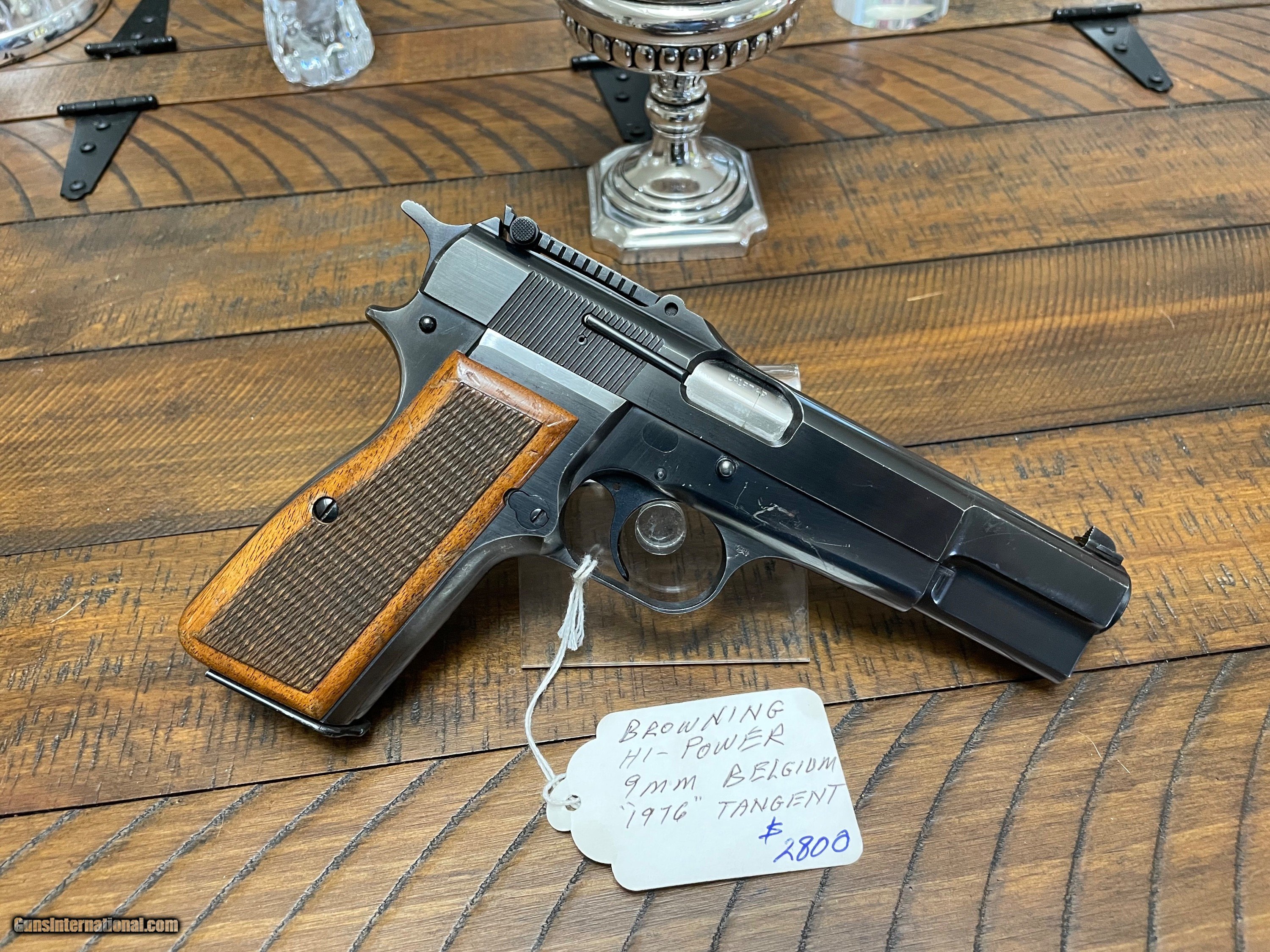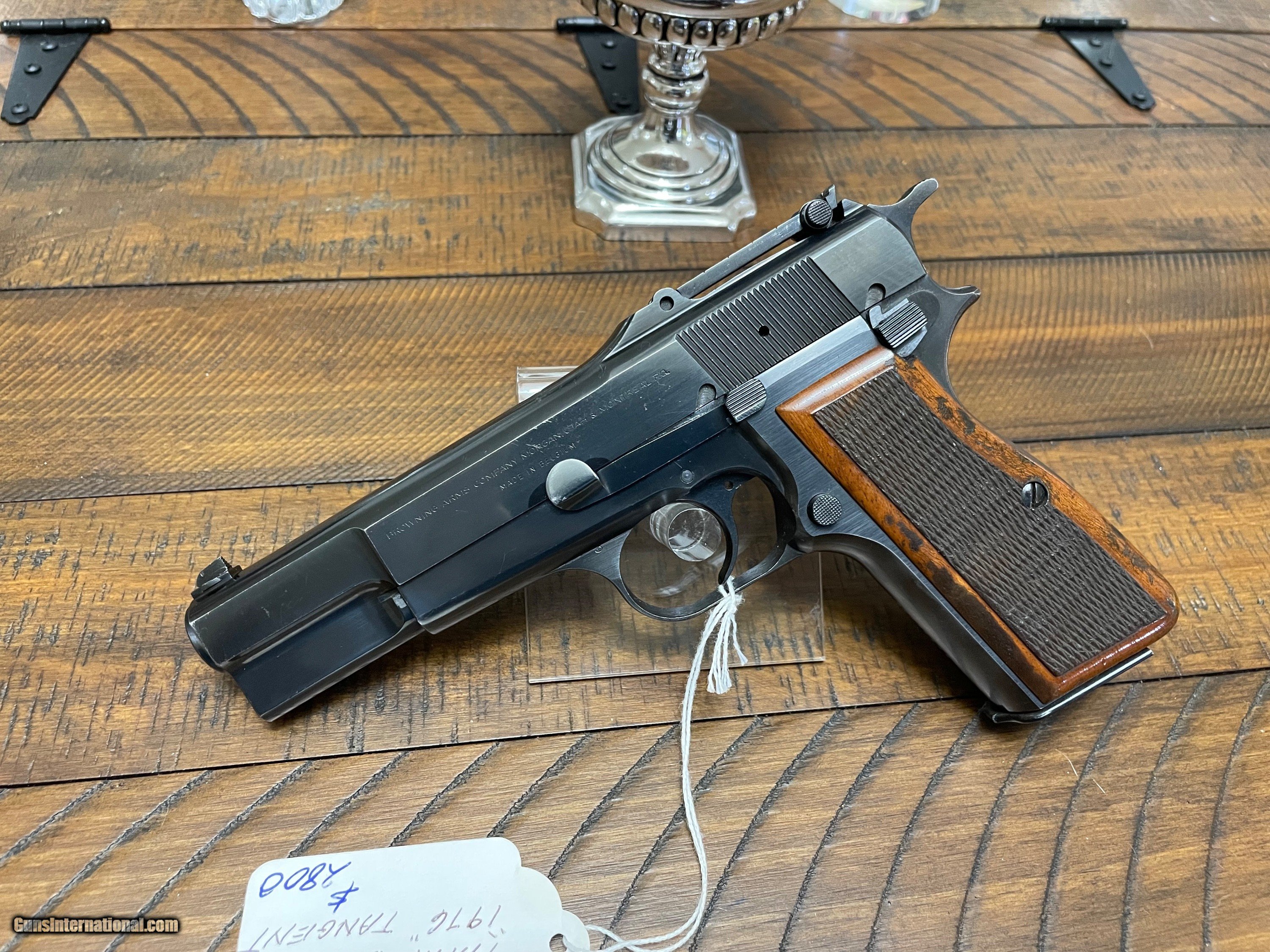 Description: 1976 Hi Power Browning Belgium Made sporting the Tangeant Sights. Pistol is all original does show some wear and schratches 1976 C-Series w/correct era grips and Belgium proof mark. Shipping is $35 feel free to call or text with any questions you might have. These are consignment guns so prices are firm. SOLD |