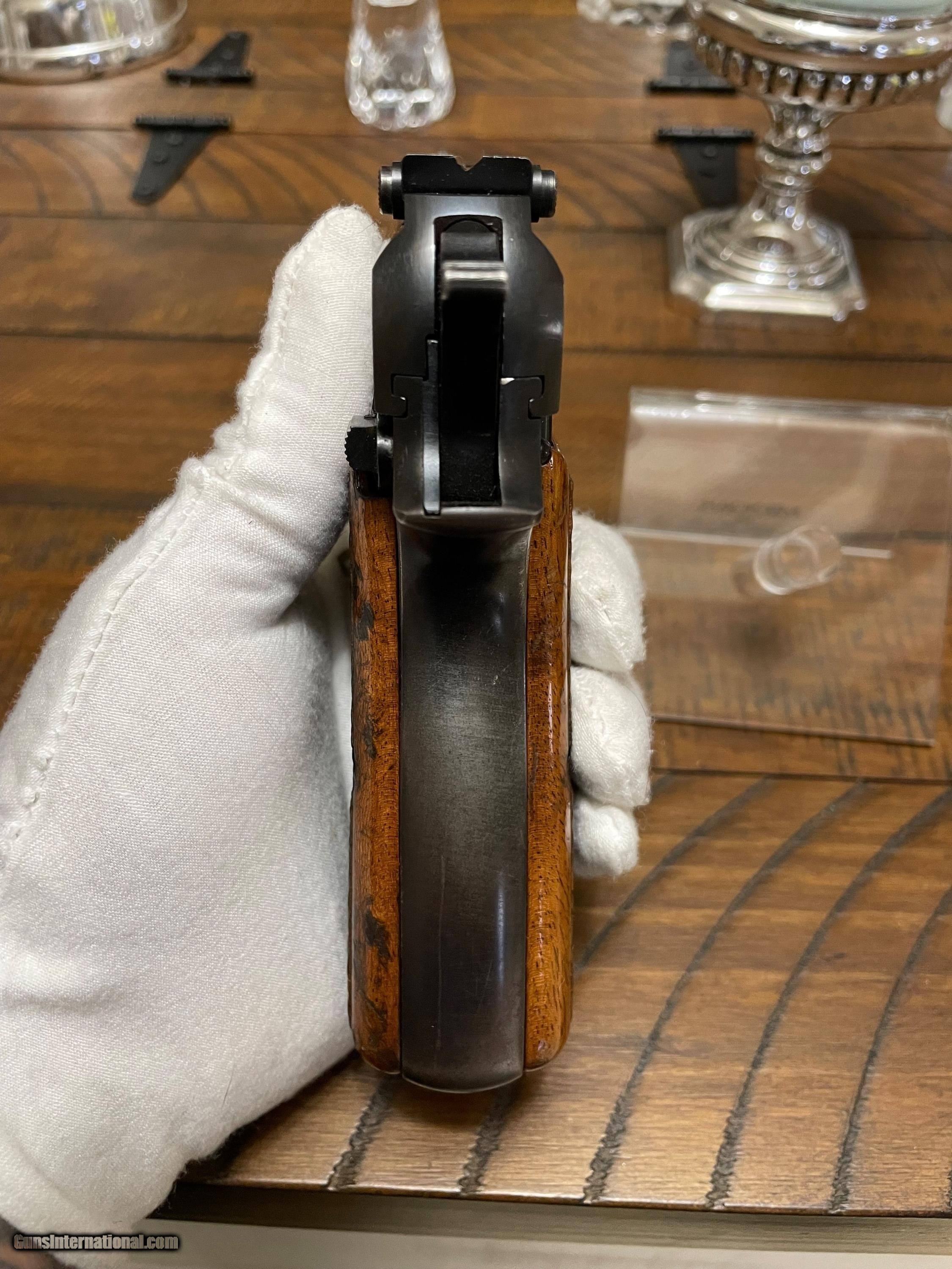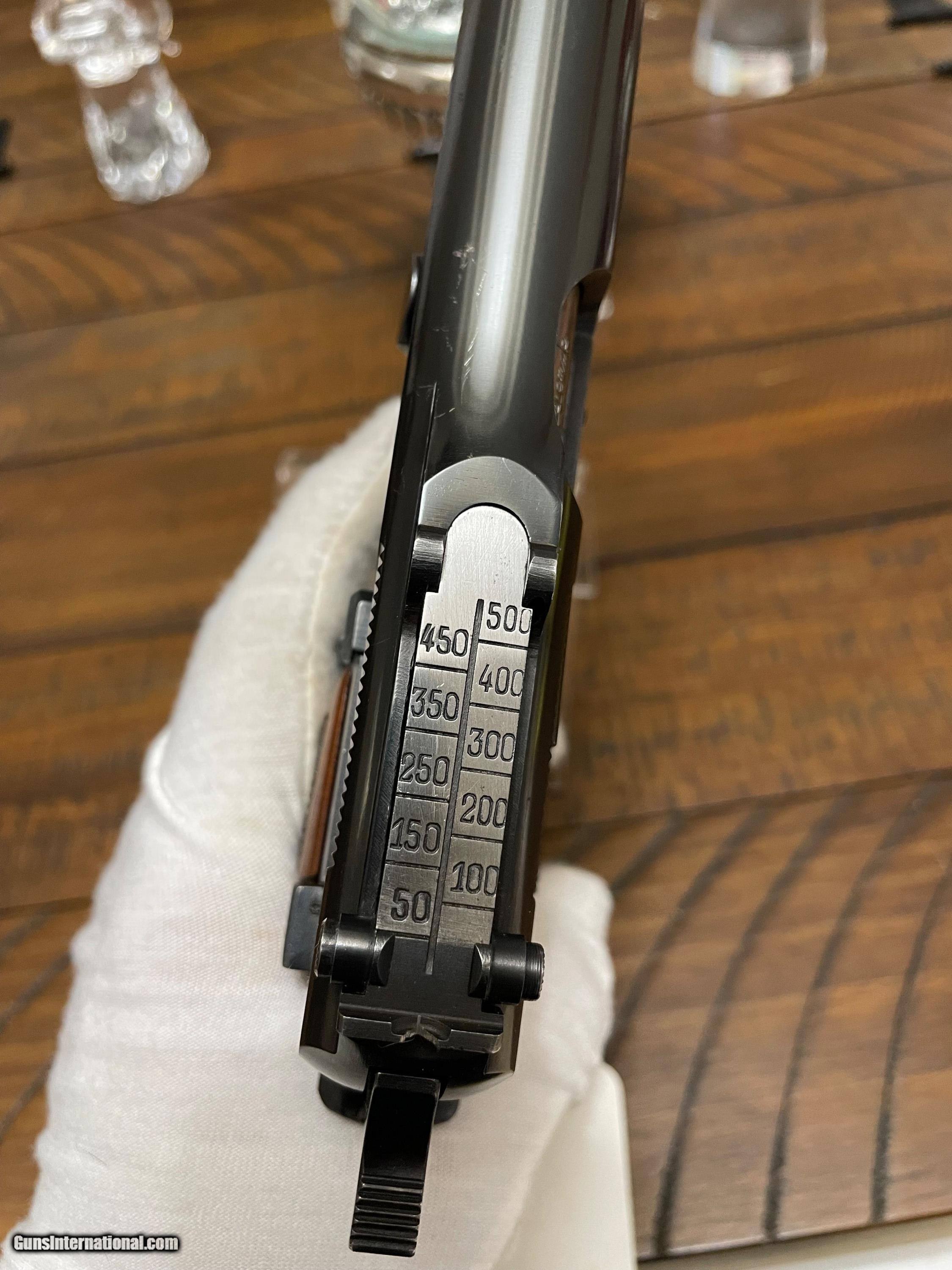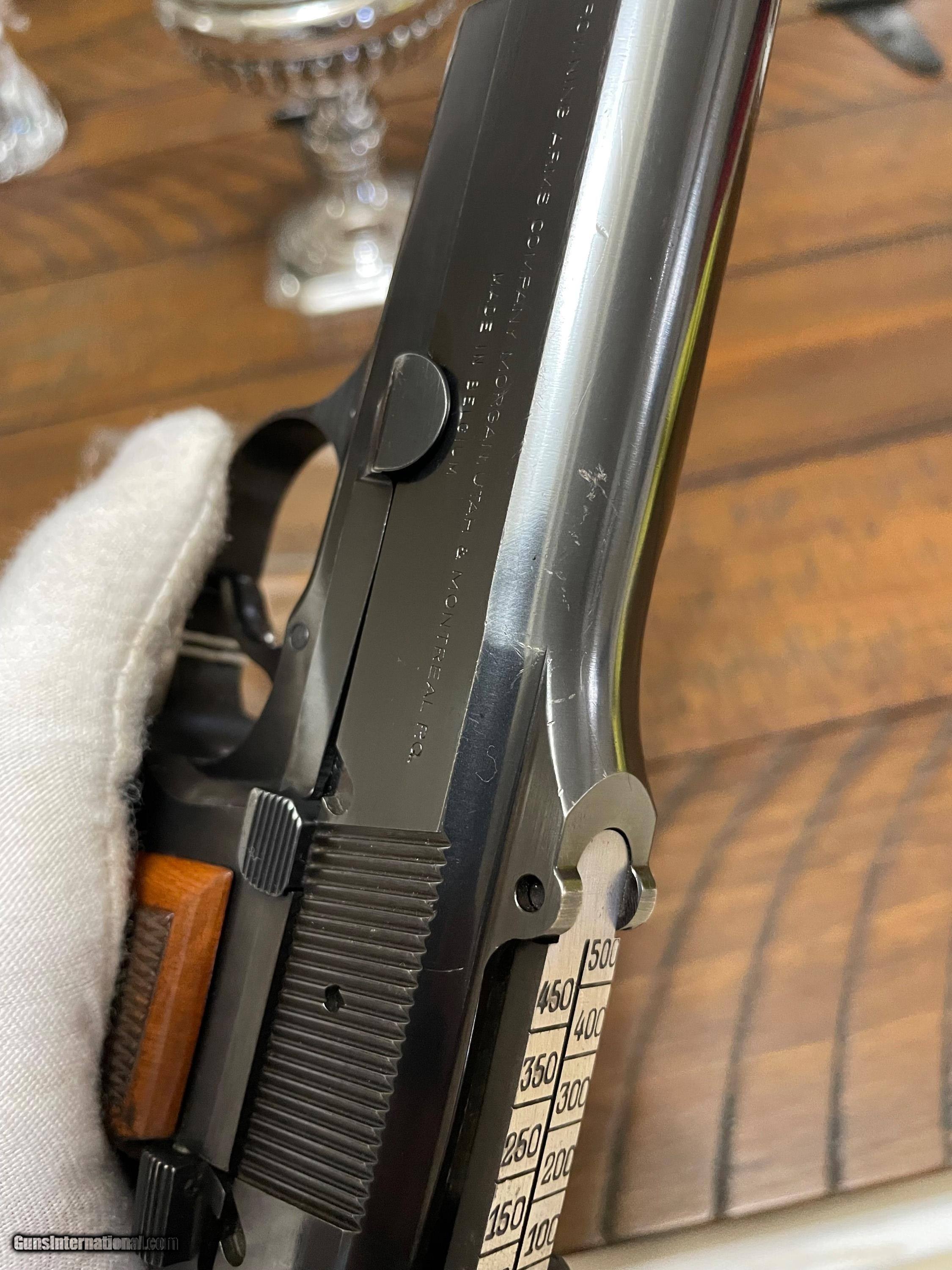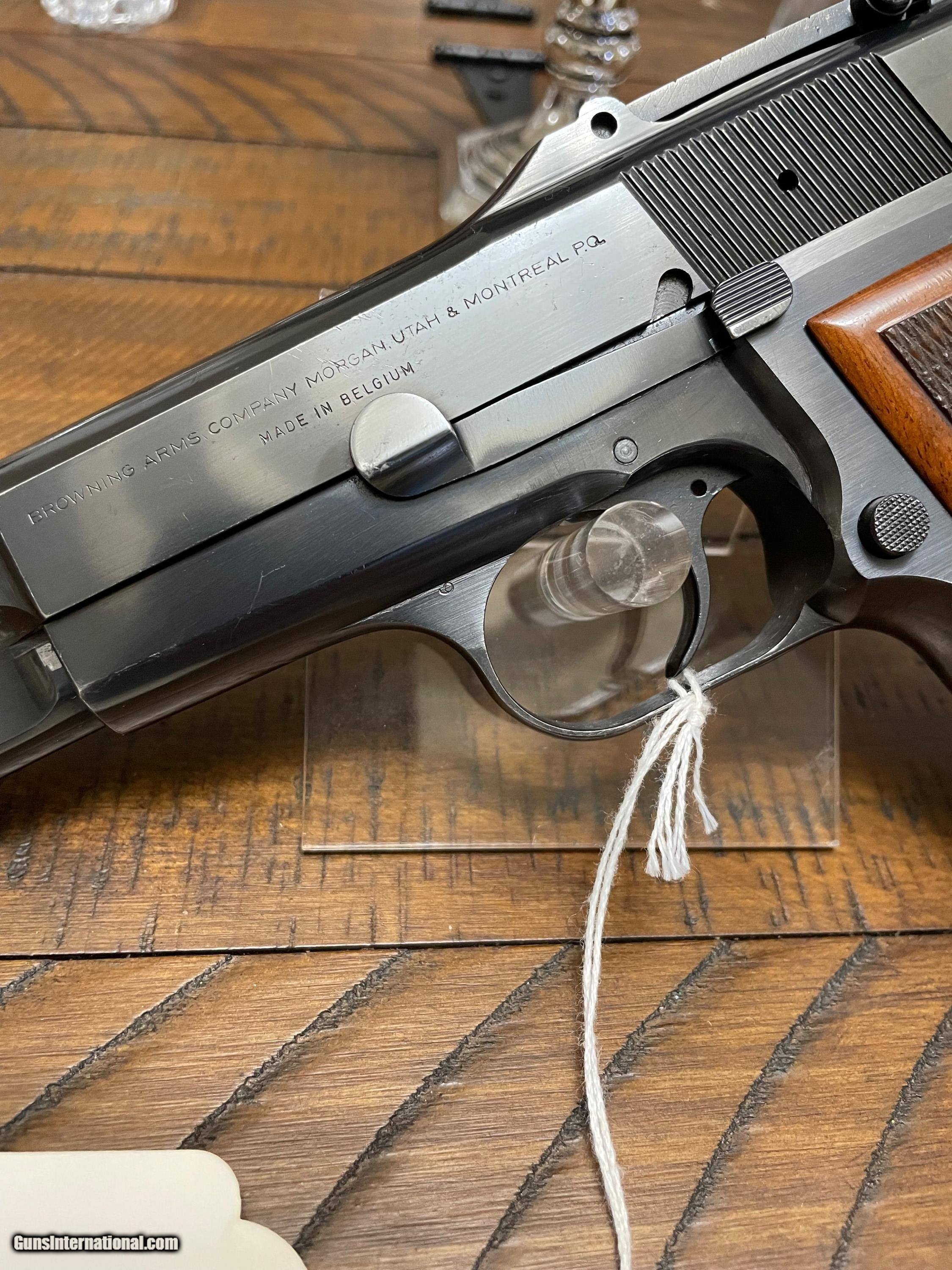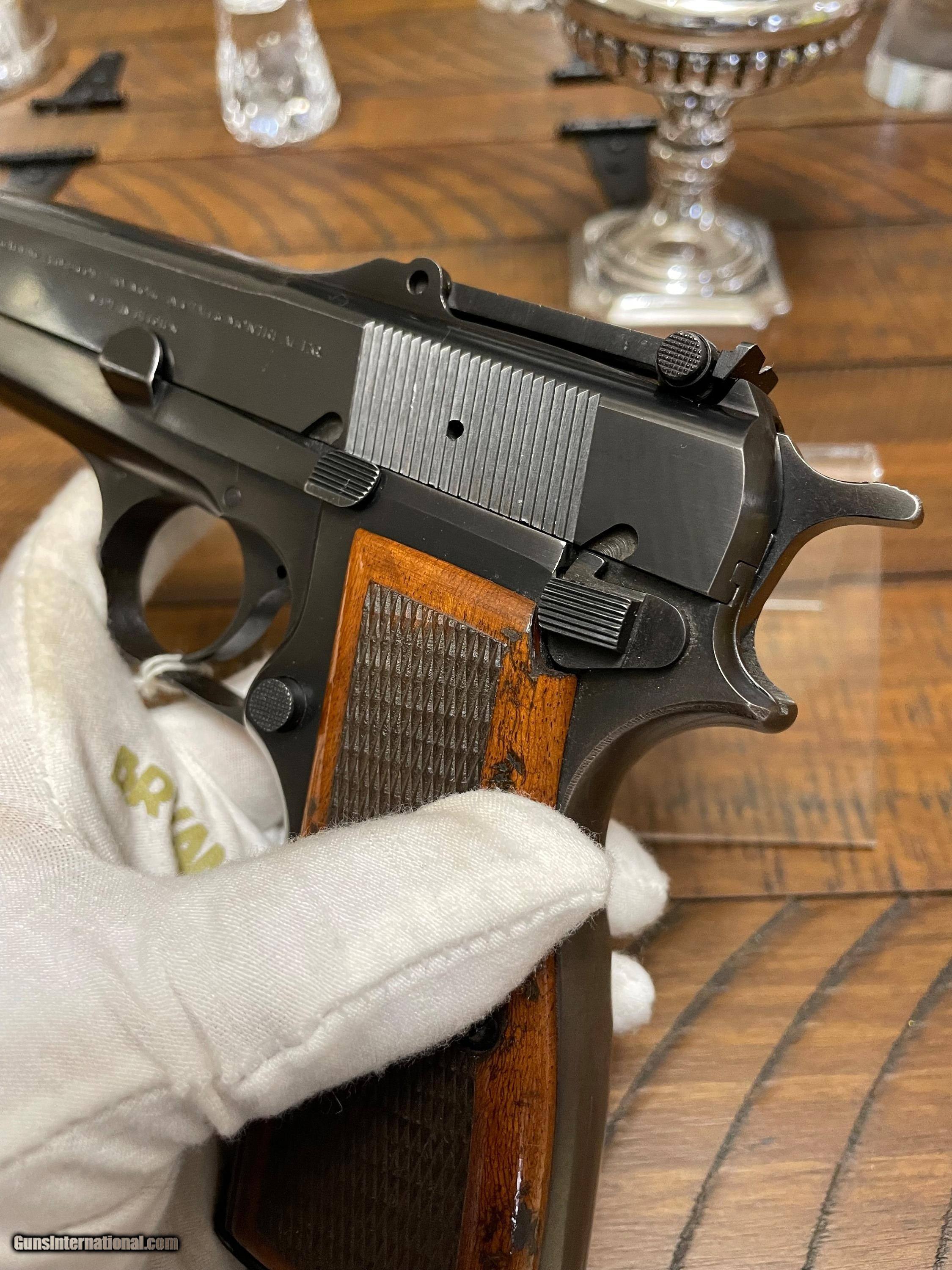 Description: 1976 Hi Power Browning Belgium Made sporting the Tangeant Sights. Pistol is all original does show some wear and schratches 1976 C-Series w/correct era grips and Belgium proof mark. Shipping is $35 feel free to call or text with any questions you might have. These are consignment guns so prices are firm. SOLD |