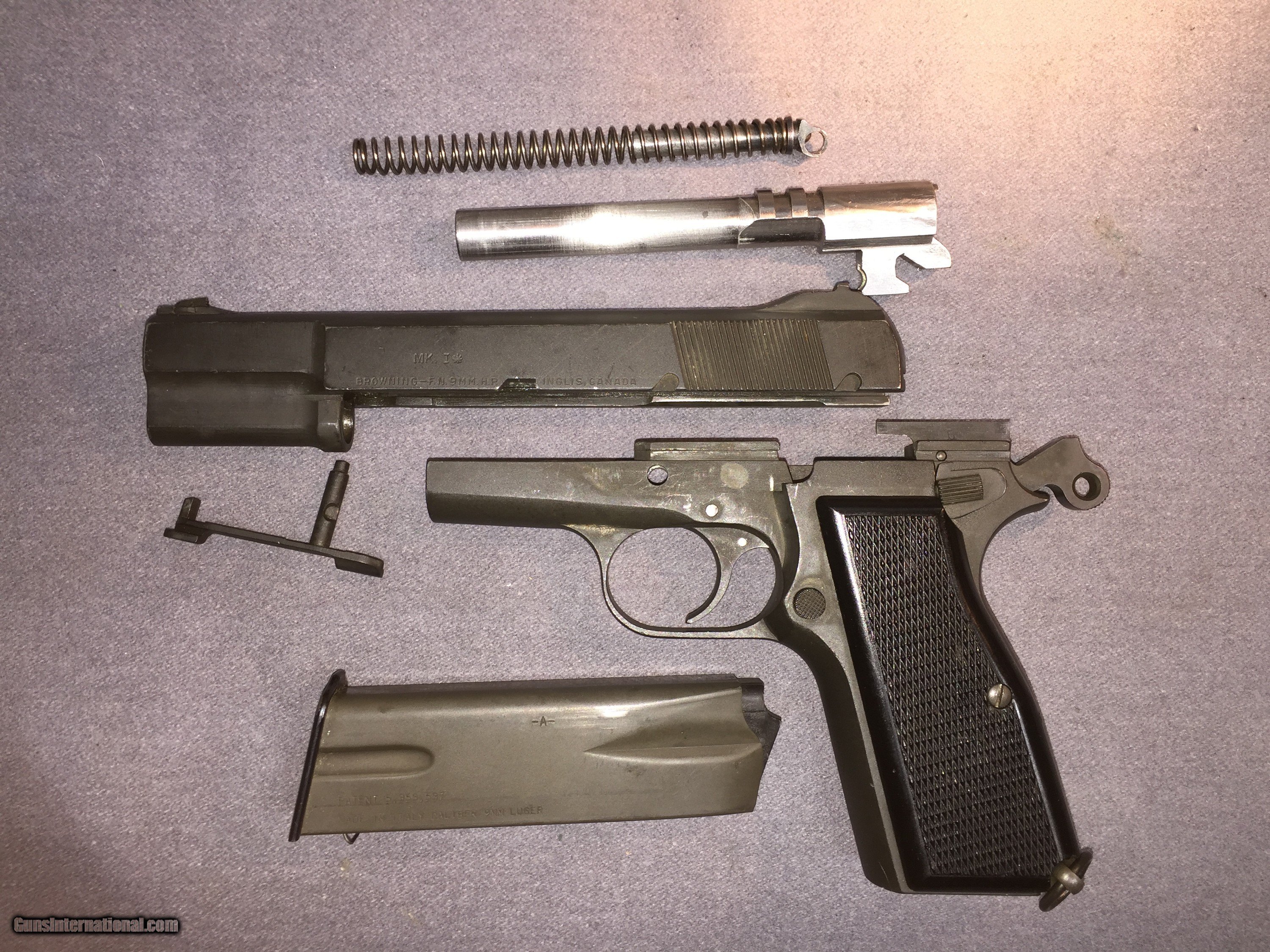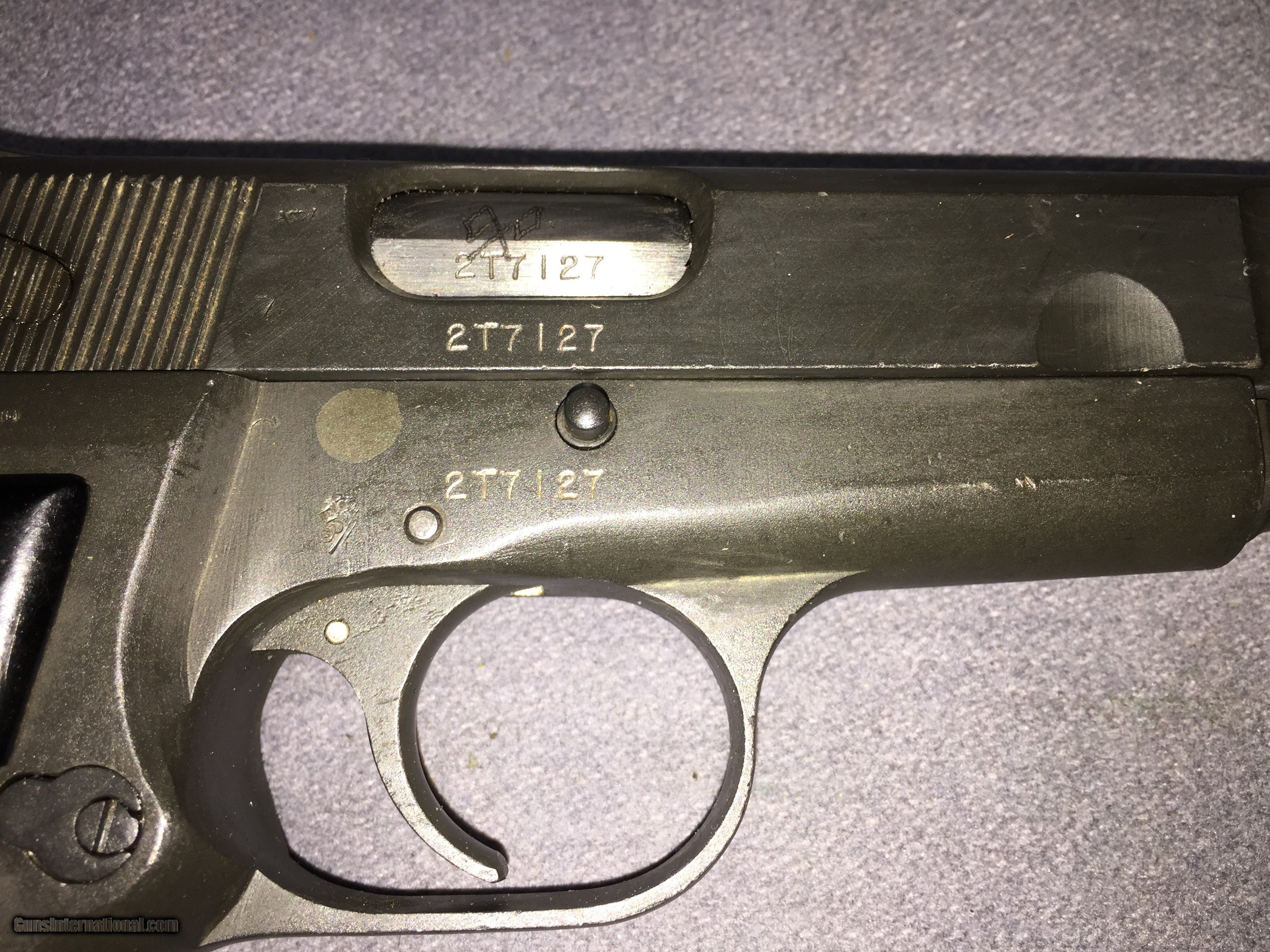 Description: Canadian high power in very nice condition. Bore is sharp & bright. one mag. Matching numbers. SOLD Handgun Caliber: 9x19mm Parabellum (9mm Luger, 9x19mm NATO) Manufacturer: Inglis Model: Hi Power Serial Number: 2T7127 Condition: Very good Metal Condition: Excellent Bore Condition: Excellent |
