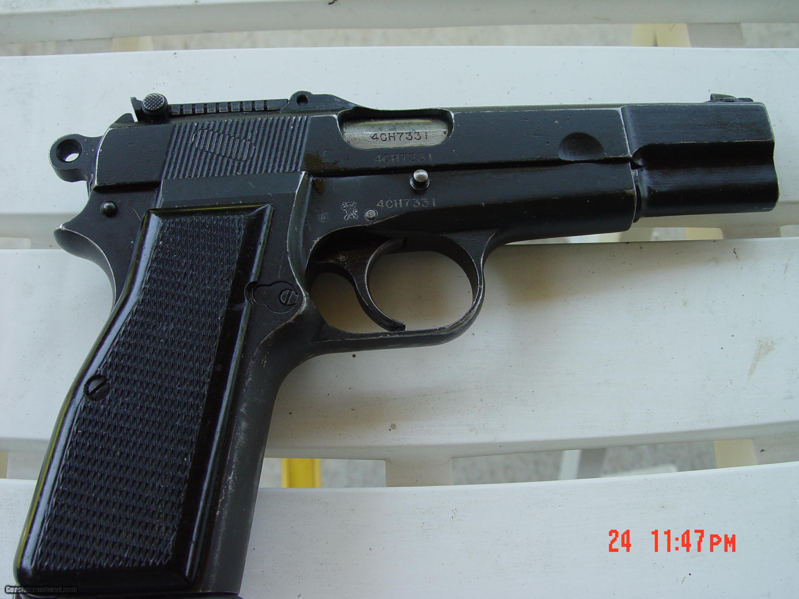 Description: an old canadian hi-power, browning, war time pistol, have seen better, but have also seen a lot worse, no rust or pitting, just some use, great bore, tight action, tangent sight, slotted for shoulder stock, pretty rare, grips not cracked or chipped. need FFl, $35 shipping SOLD |