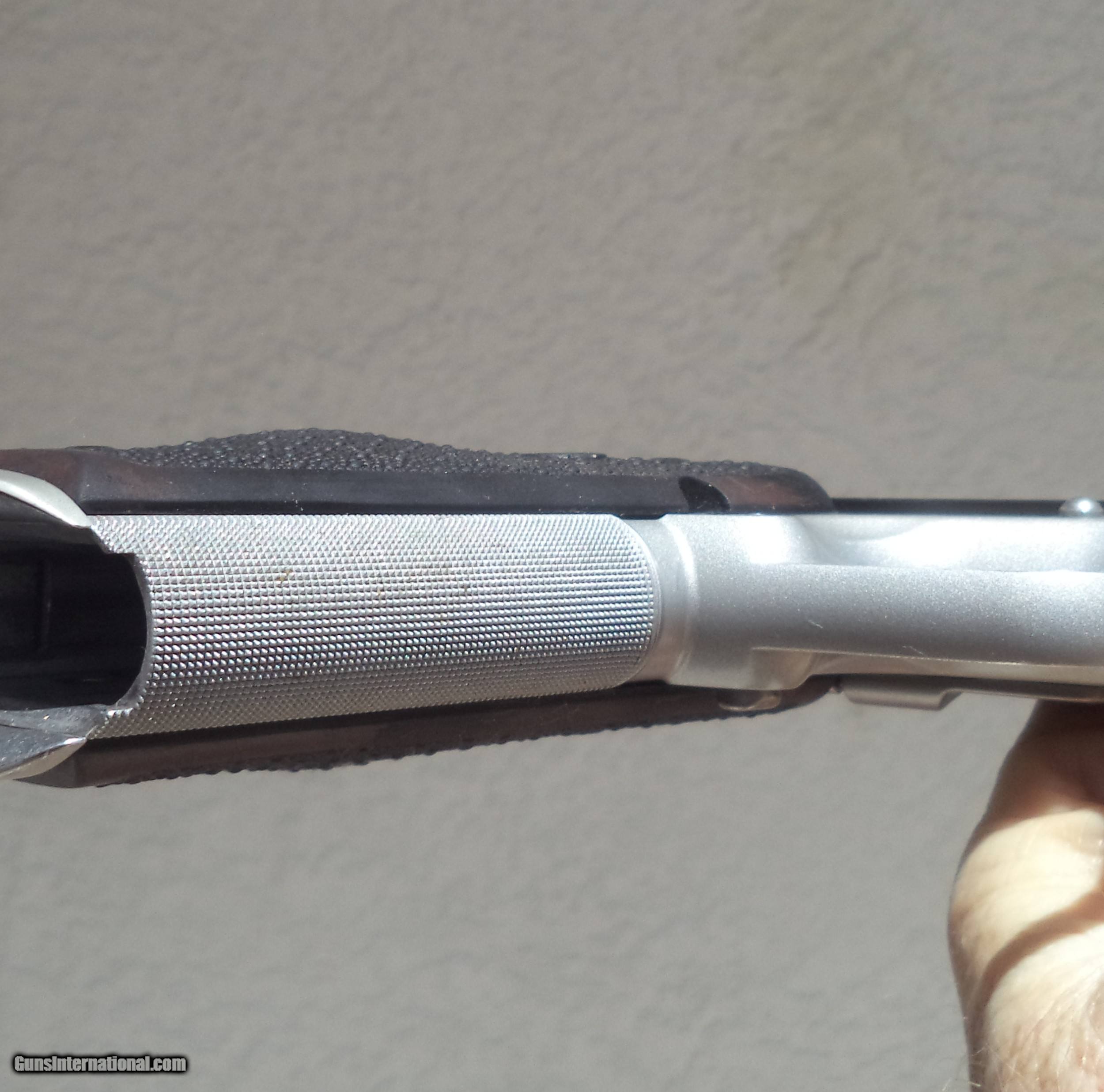 Description: Pro Aegis® II Built by Kimber Custom Shop, Aegis II pistol is designed for the defensive minded shooter. Frame is aluminum alloy w/ steel slide finished in Black KimPro II, a non-reflective, self-lubricating coating resistive to the elements. The slide has front and rear-cocking serrations for a positive slide control while charging or unloading. A number of touches from the Kimber Custom Shop are listed below and not seen on other 1911's. The Aegis II comes in a black, lockable case complete with instruction manual and four magazines. Specs. • Five (5) Magazines 4-9 rd and 1 -10 rd mags • Carry Melt slide & frame no sharp edges, thumb safety & mag. release factory custom bobbed. • Full length guide rod • Spare Recoil Spring Plug • Frontstrap checkering • Kimber equipped, Hi Rise Bumped palm grip safety • High relief cut under the trigger guard for better control • Smith and Alexander Magwell (slim aluminum) • Original Flat Checkered Mainspring Housing included • Slide top milled Flat • Fusion Firearms Precision Cut Cocking Serrations on front of slide • Ramped 4" match grade steel Barrel w/witness hole, twist rate (left hand): 16 • Sights, Heinie Specialty Ledge Gun Sight • Heinie Specialy Machined front sight to 0.100" for sharp sight picture • Extra sights - Tactical Wedge Tritium night sights • Sight Radius 5.7" • Grips Hogue -- Palm Swell Grips • Extra set of bushing screw for Installation of thin Carry Grips. (Thin wood Grips included) • Trigger Solid Aluminum Match Grade adjustable • Factory setting (approx. pounds): 4.0 – 5.0 • Spare firing pin BUYER PAYS SIPPING EST $35.00 SOLD Handgun Caliber: 9x19mm Parabellum (9mm Luger, 9x19mm NATO) Manufacturer: Kimber Model: PRO AEGIS II Serial Number: KRF10408 Caliber Info: 9MM Ejectors: TUNED Condition: Used as new Metal Condition: EXCELLENT Wood Condition: PRISTINE Bore Condition: Excellent Barrels: Excellent Barrel Type: RAMPED Action: SEMI Triggers: CUSTOM ADJ Sights: Heinie Ledge |