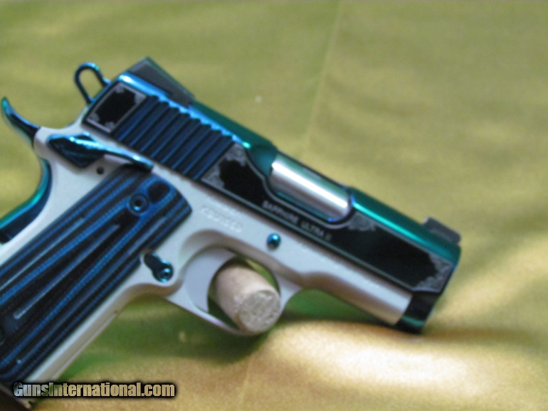 Description: Kimber Sapphire Ultra ll 9mm pistol. This beauty has a 3" barrel, G10 grips, polished stainless steel. Feature a bright blue PVD finish, with fine engraved borders, and night sights . Buyer pays $38.00 shipping. Must ship to FFL Dealer. For more info. call Wayne at 513-515-4250 or 513-726-4827 SOLD |