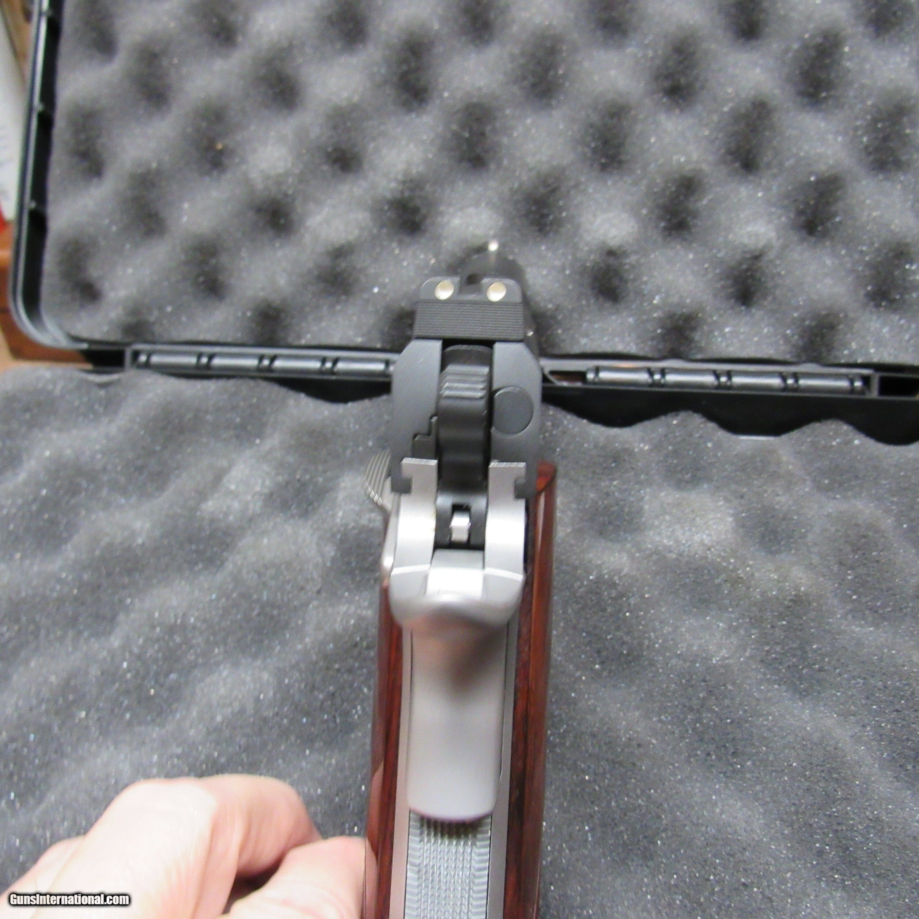High quality Kimber two tone. Gently used. White outline rear sight with white dot front blade. Beautiful wood grips. This is an excellent Kimber in new condition. It comes with new leather holster and 2 extra clips with leather carry pouch.