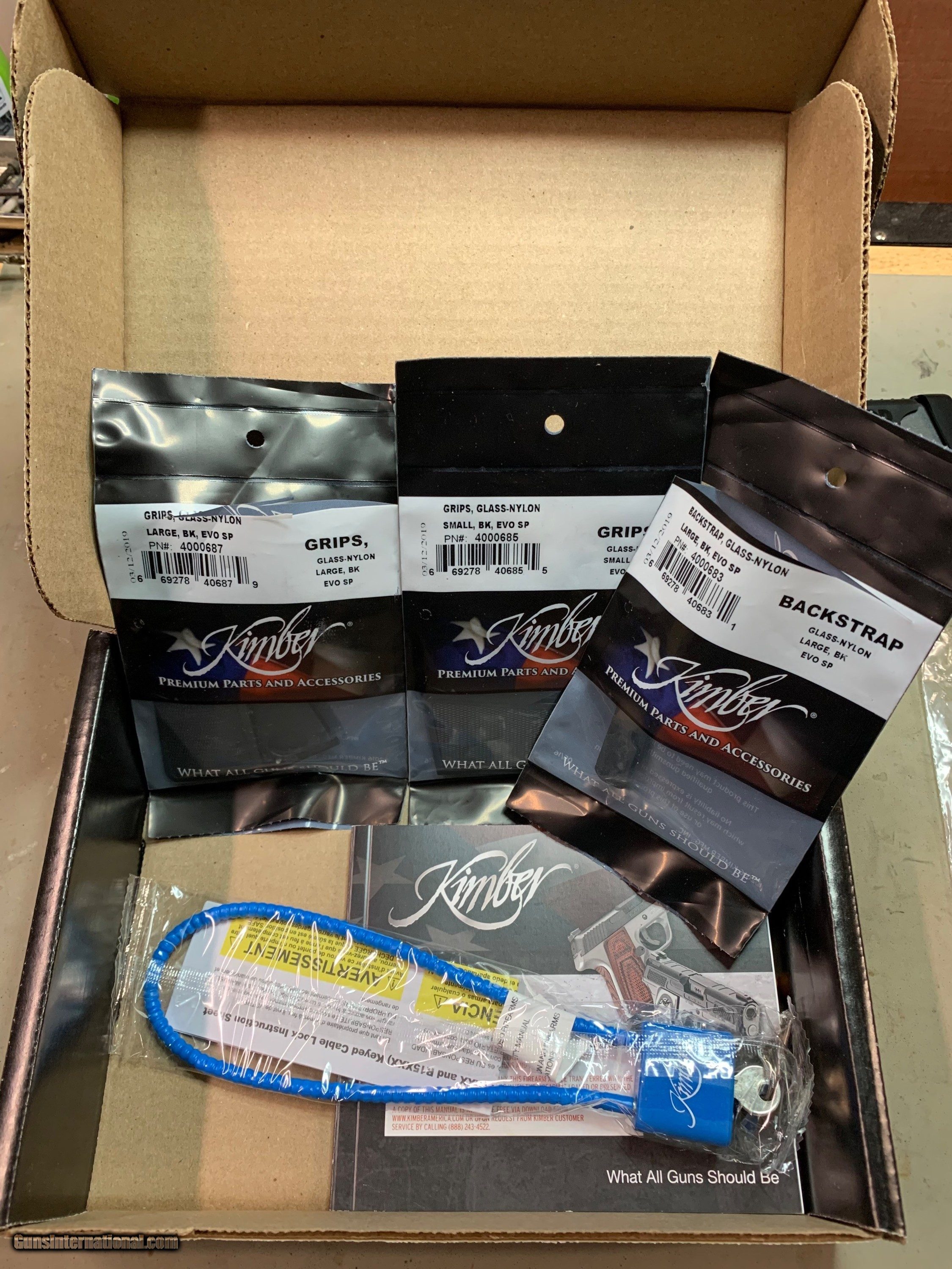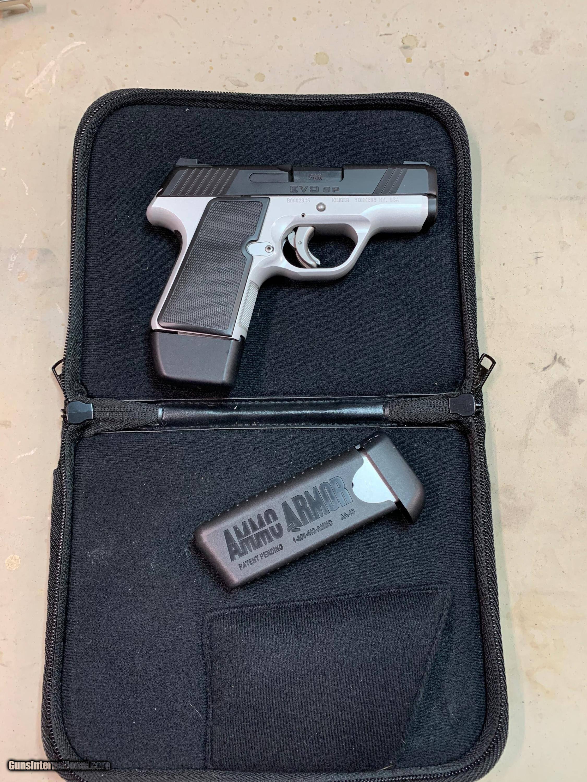 Description: Purchased new and only fired two clips before putting it away. Gun is like new and spotless. Night Sites. 2 Mags with mag cover. Kimber hard black Kydex OWB holster. Original box, manual, lock, grip sets to change, with removeable back straps. Factory soft case. I accept USPS Money Orders only, PayPal, and Zelle. Call 734-652-3331 with questions. SOLD Handgun Caliber: 9x19mm Parabellum (9mm Luger, 9x19mm NATO) Manufacturer: Kimber Model: EVO Barrel Length: 3” Condition: New Metal Condition: New Bore Condition: New Action: Striker Fire Finish: Gloss Sights: Night Sights Extras: Magazine cover |