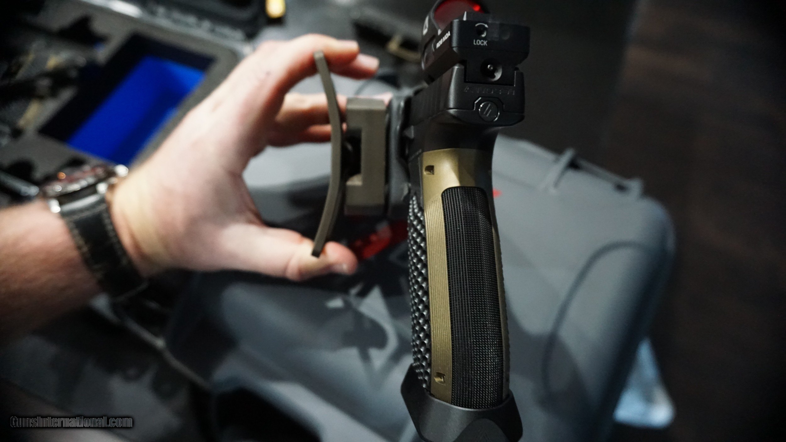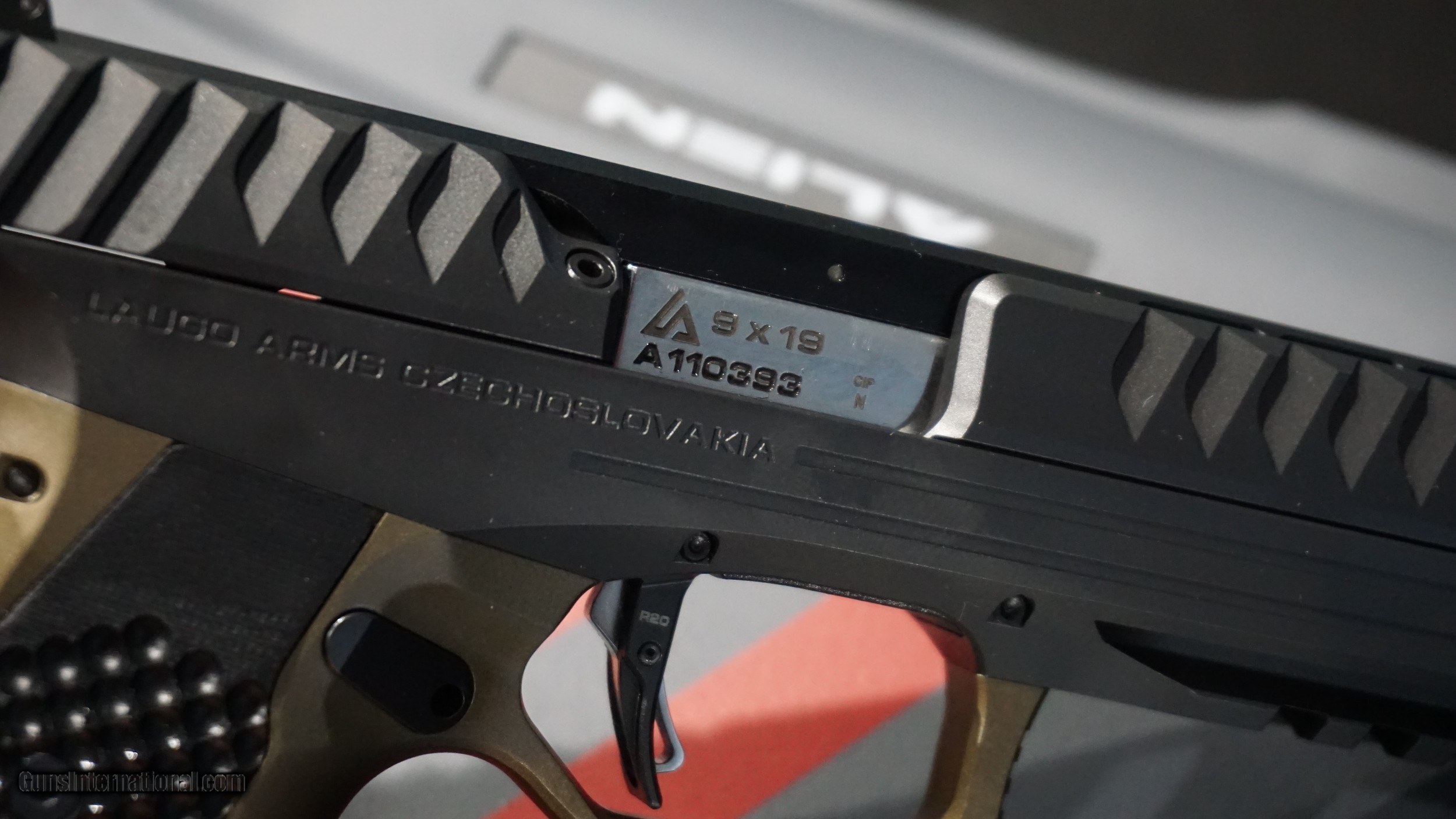 Description: The Alien pistol is a revolutionary new pistol design. Encompassing multiple design innovations, the single greatest engineering Milestone in Pistol design since the 1911. It all starts with the barrel- it is fixed in posititon providing superior accuracy without moving parts. It is located on the bottom of the frame, so low in fact that it has the single lowest bore axis of any pistol in the world. In order to achieve this record breaking low bore axis, the pistol is gas blowback operated with the gas piston located above rather than below the barrel. The top of the pistol has a fixed top rail. This aides in target acquisition as the signts are therefore stationary when shooting. The top rail is also modfular and quickly interchangable for other rails with different sighting systems, such as a 6 MOA red dot optic or target sights without any tools being required. The added benifit to having a fixed top rail is that the slide is now smaller and has less recoiling mass, further reducing transferred reccoil impulses. Due to the barrel being so low the breach face is also lowered, providing for a lower than normal center of gravity. The frame is steel with the entire grip housing being interchangable. The grip housing is Alloy. Combining all of these design features results in a pistol that shoots with negligible felt recoil, little to no muzzle flip and a rapid cyclic rate. It is a true game changer and unlike anything else on the market. The Alien has quickly caught the attention of elite military units and is already fielded by special forces teams in Europe. Features: *Lowest Bore axis in a pistol, 1.7mm below grip access. *Fixed Barrel for Superior Accuracy. *Superior design lowers center of gravity of major components. *Fixed top rail for Superior Sight Acquisition, interchangable for different sighting systems in under a minute with no tools. *Low profile slide reduces recoil impulse. *Ambidextrous magazine release. *Interchangable Grips and Backstraps. *Impeccable European Quality, built to highest possible standard. Specifications Calibre:9x19mm Nato, Luger Length:210mm/8.2" Width 29mm/1.1" Height: 148mm/5.8" Barrel Length: 124mm/4.8" Weight: 1121g/2.47lbs Sight Radius: 185mm/7.3" Sights: Adjustable rear, Fiber Optic Front/6 MOA Red Dot Each Cased Pistol includes -FDE Grip Housing -Elornis Industries hard Case designed specifically for the Laugo Arms Alien -Iron Sight Upper Rail -Optics Rail with 6 MOA red dot included -Elornis Industries Kydex Holster -HEART 6 quick release holster hinge -Flared Extended Magwell -Three 15 round Magazines pinned to 10, Pinned with machine bolts easily removed with single tool. -Three Aluminum Magazine Base Pads. -Cleaning Kit -Instruction Manuals All export fees from Canada Covered by Seller Import Fee's, Escrow Fees covered by buyer at time of sale and import Last one listed on Guns America sold for $11500.00 plus fees. That was the base model. This one has every accessory currently available. Regular return policy of 3 days not available due to export and import process. Buyer should be aware of this prior to buying pistol. $6500.00 SOLD Curio/Relic: Yes Handgun Caliber: 9x19mm Parabellum (9mm Luger, 9x19mm NATO) Manufacturer: Laugo Arms Model: Alien Serial Number: A11 0393 Barrel Length: 124mm/4.8 Condition: Mint Brand New in Box Metal Condition: Mint Bore Condition: Mint Barrel Type: Fixed Action: Gas Delayed Blowback Triggers: Competition Standard Weight: 1121g/2.47lbs Sights: Red Fiber Optic and Red Dot Manufacture Date: 2021 Extras: 3 Magazines Case: Hard Alien Case Item Location: Edmonton, Alberta, Canada |