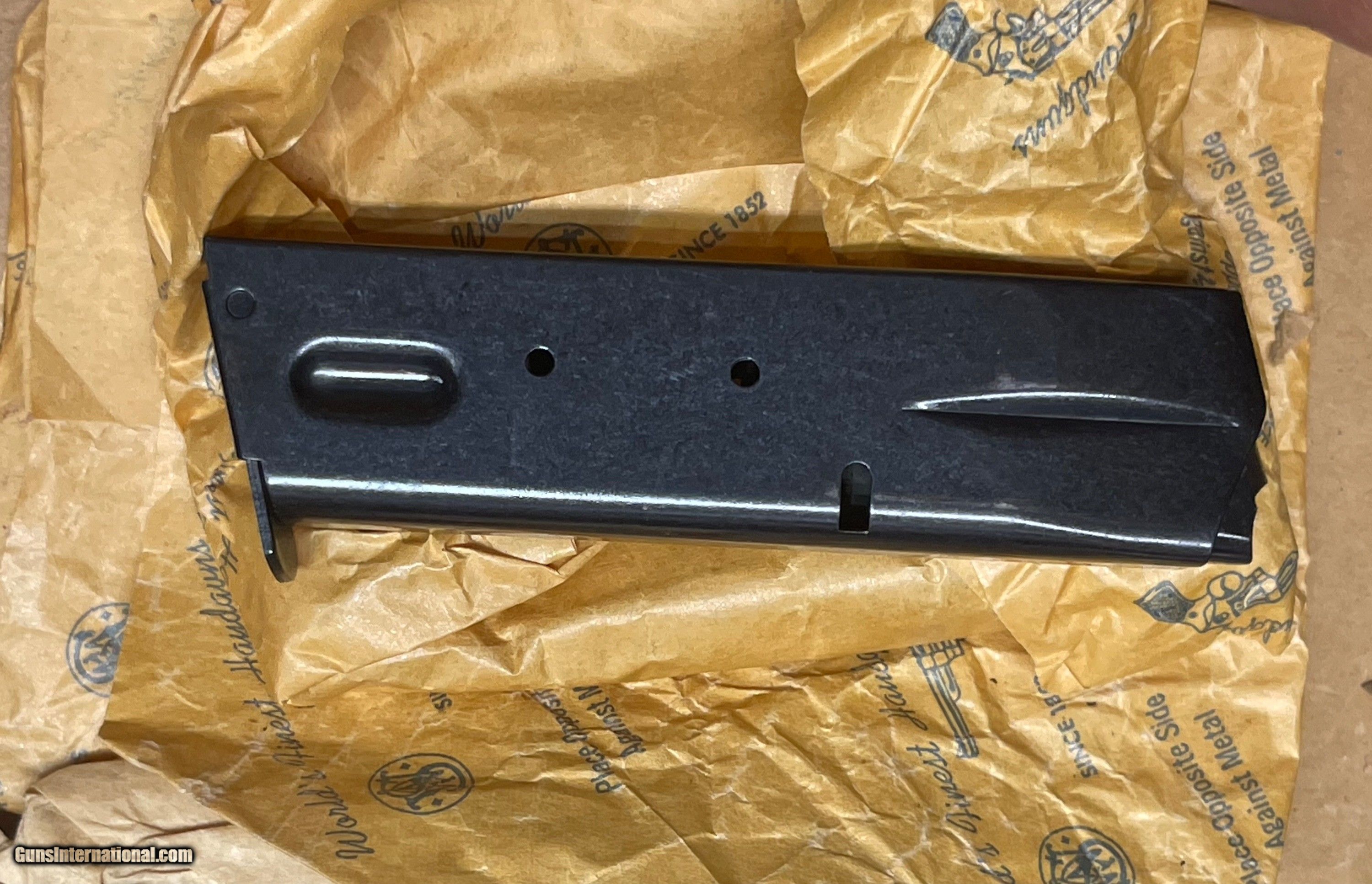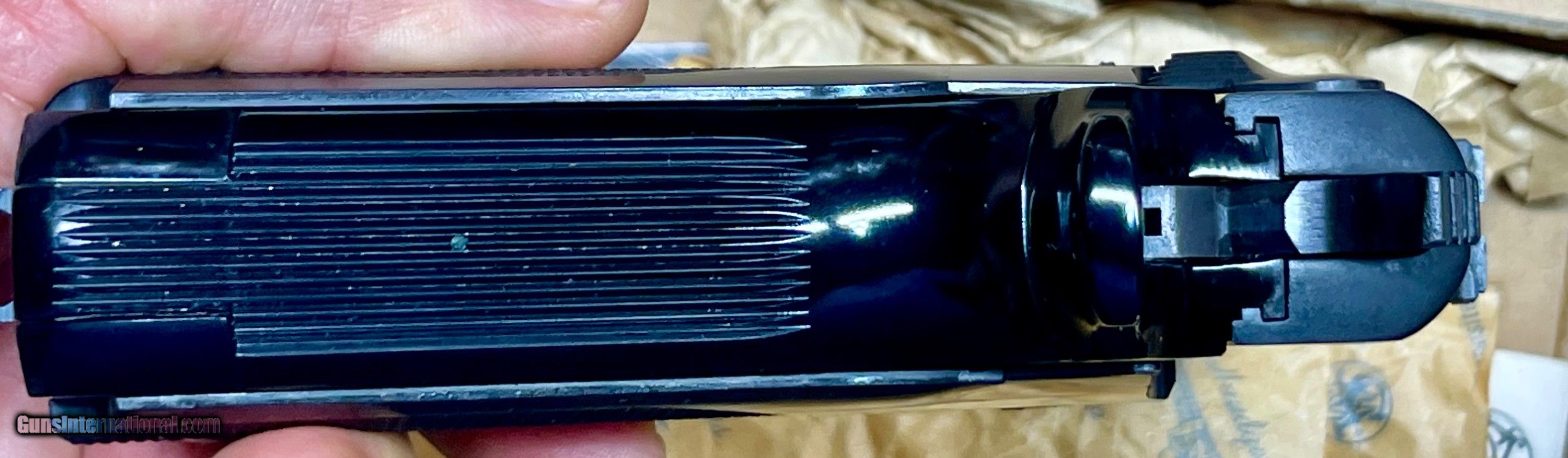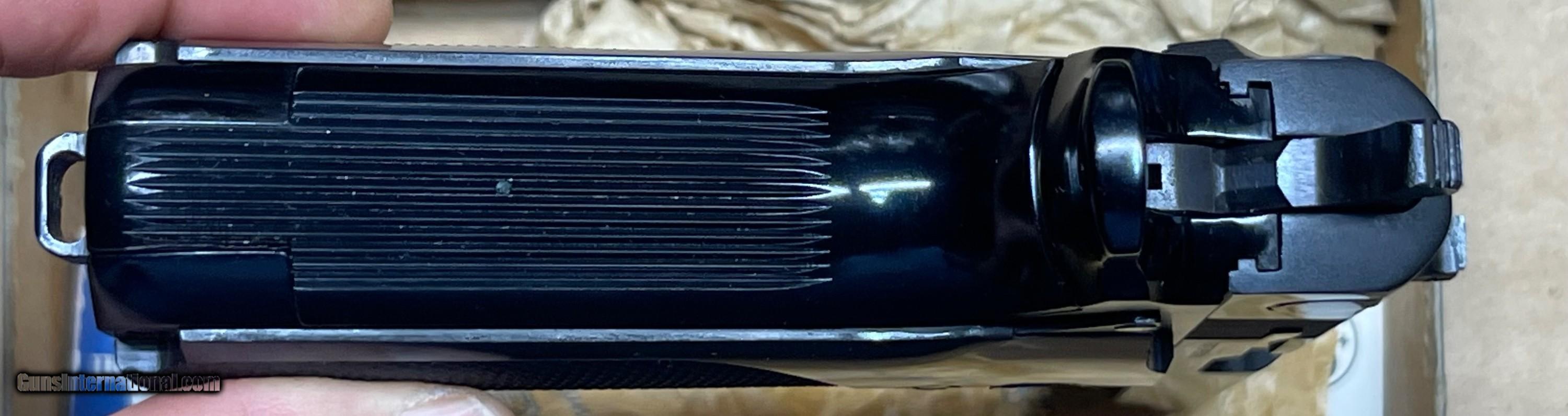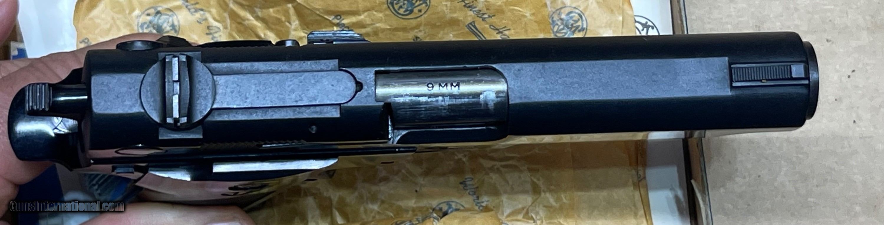 Description: Like new in original box. Blue finish semi automatic pistol caliber 9mm. Early no dash gun , with 2-original 15rd magazines. Papers and manual. Mint gun no rust or pitting. If it was fired it wasn't shot but a few times. Serious offers are seriously considered. SOLD Handgun Caliber: 9x19mm Parabellum (9mm Luger, 9x19mm NATO) |