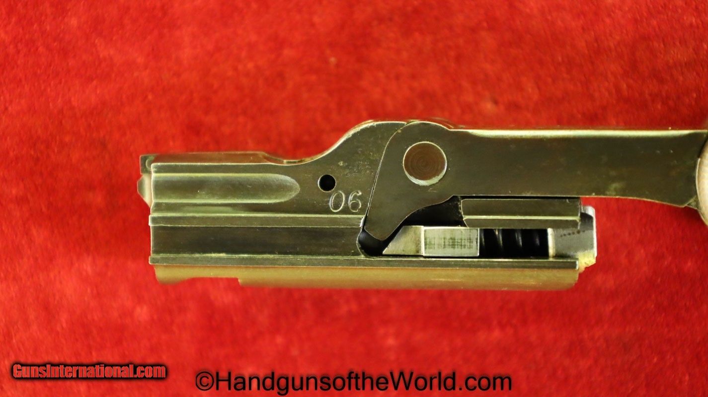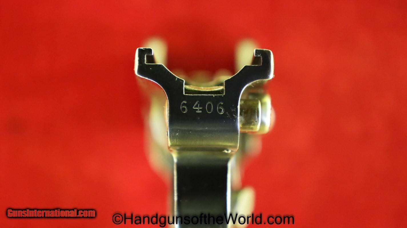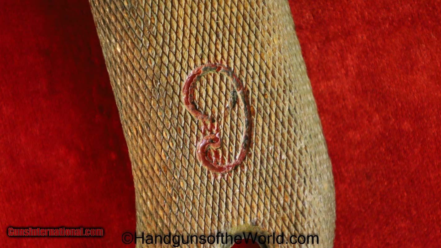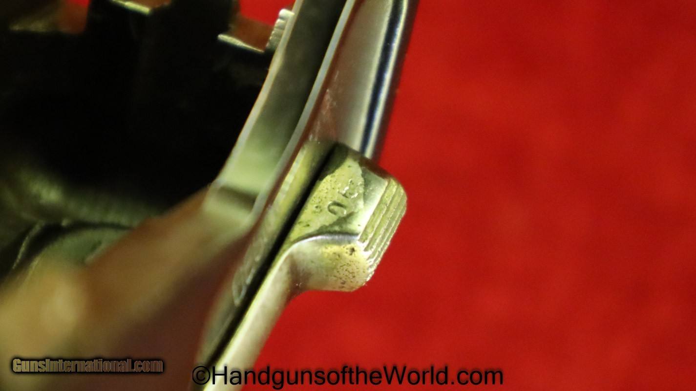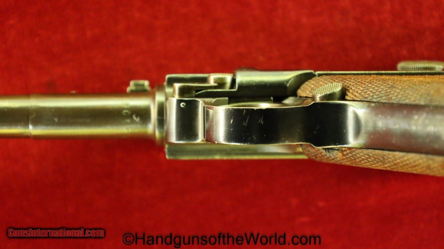 Description: DWM 1917 Artillery Luger, 9mm, This is German WWI imperial proofed on the right receiver. This has fine tune front and rear sights. The right red has an engraved Red 9 on the left grip. This has all matching numbers but for the new made magazine and new made flat board wooden stock. This has been refinished at some time, and now retains about 90% of the blue, and the bore is Fair-Good. Curio/Relic: Yes Handgun Caliber: 9x19mm Parabellum (9mm Luger, 9x19mm NATO) Manufacturer: DWM Model: Luger Price: $2,350.00 Shipping: $35.00 Contact Seller |