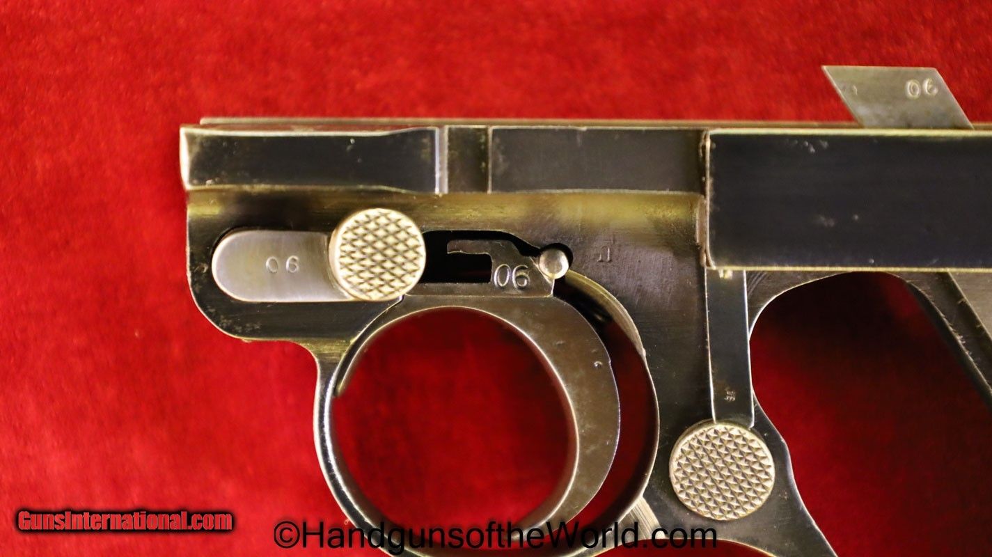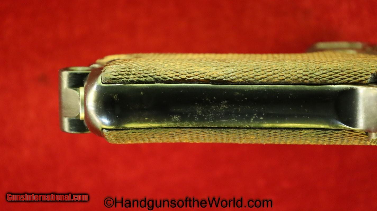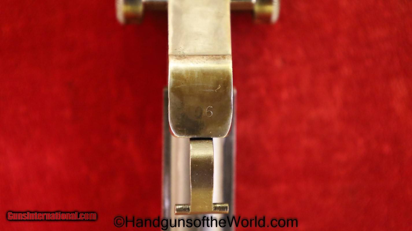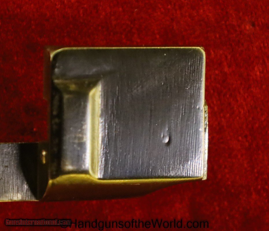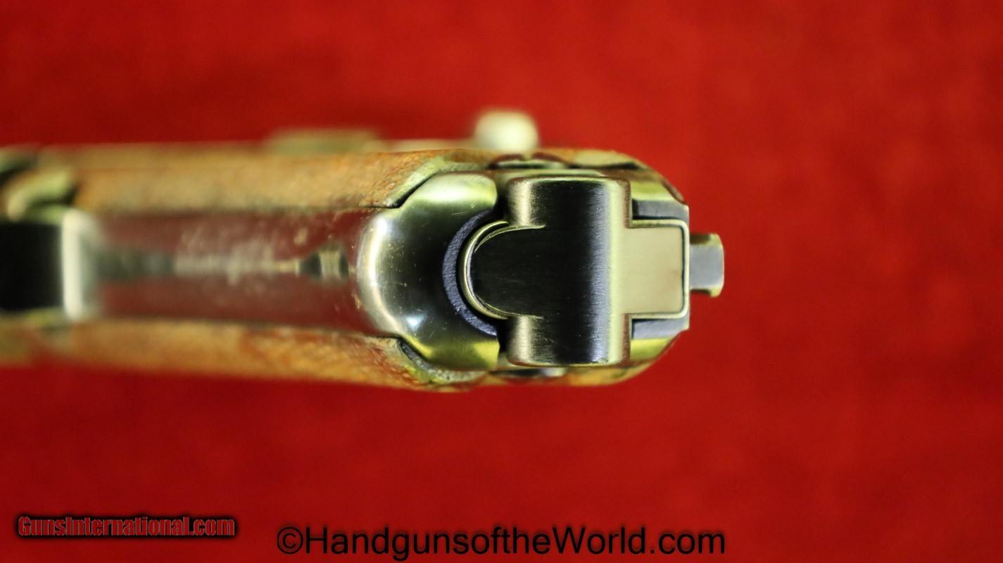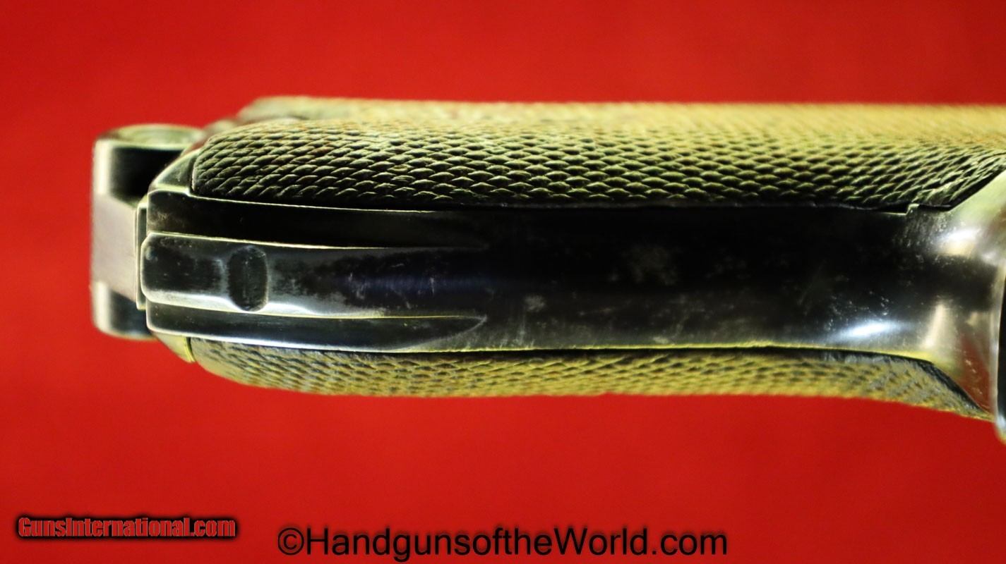 Description: DWM 1917 Artillery Luger, 9mm, This is German WWI imperial proofed on the right receiver. This has fine tune front and rear sights. The right red has an engraved Red 9 on the left grip. This has all matching numbers but for the new made magazine and new made flat board wooden stock. This has been refinished at some time, and now retains about 90% of the blue, and the bore is Fair-Good. Curio/Relic: Yes Handgun Caliber: 9x19mm Parabellum (9mm Luger, 9x19mm NATO) Manufacturer: DWM Model: Luger Price: $2,350.00 Shipping: $35.00 Contact Seller |