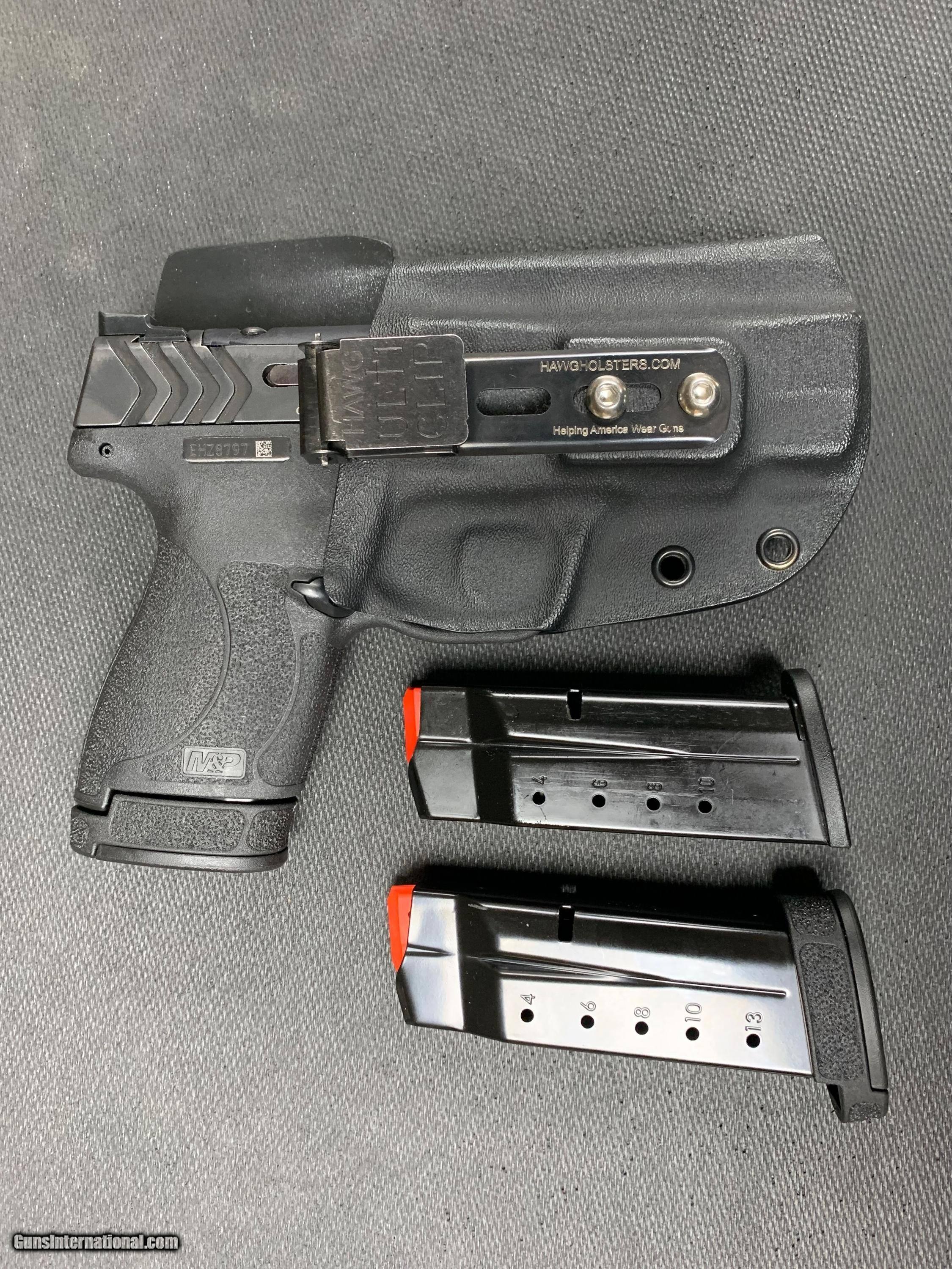 Description: M&P Shield Performance Center Carry Comp The M&P Shield Performance Center Carry Comp is a compact, optics-ready, 9mm pistol designed for concealed carry with enhanced features including an integrated compensator cut into the barrel and slide diverting gas upwards and reducing muzzle rise and felt recoil. In addition it features an upgraded flat-face trigger for a smooth, crisp pull and reset. Included are three magazines: one ten round, one pinned 10/13 round and one 13 round magazine, as well as a tritium fiber-optic front sight and blacked-out serrated rear sight. Weight is 17.9 oz unloaded and it is the perfect concealed carry pistol. Included in the sale is the following premium accessory: Custom fit Hawg holster with Ulticlip. This collection is being offered for $475.00 plus shipping. Please call with questions before purchasing. Handgun Caliber: 9mm Federal Manufacturer: Smith & Wesson Model: M&P Shield Performance Center Carry Comp Serial Number: EHZ8797 Barrel Length: 4 INCHES Condition: Excellent Metal Condition: Excellent Bore Condition: Excellent Triggers: Upgraded flat-faced trigger Weight: 17.9 oz Sights: tritium fiber-optic front sight and blacked-out serrated rear sight Optic: Optic ready Price: $475.00 Buy Now Contact Seller |