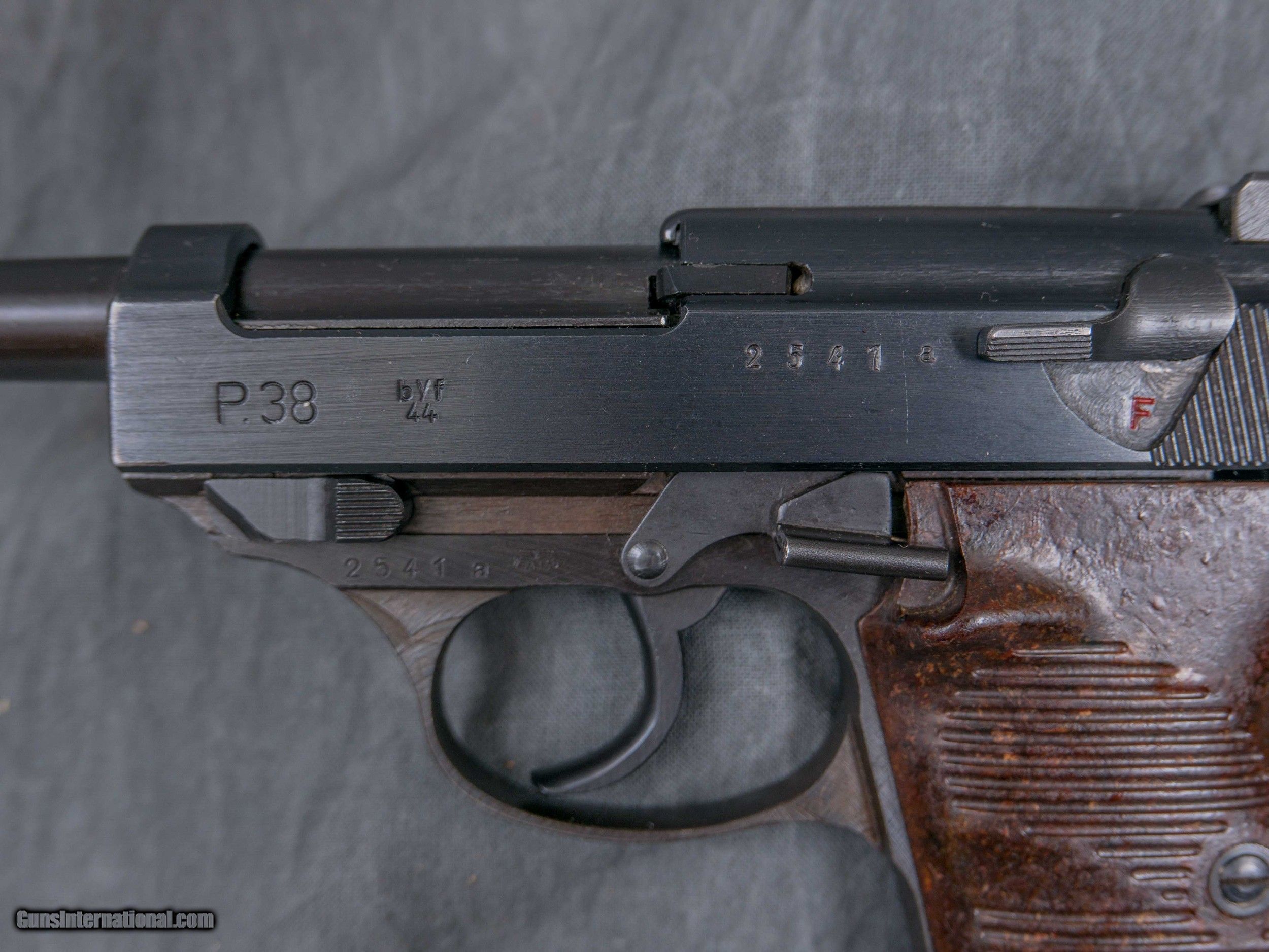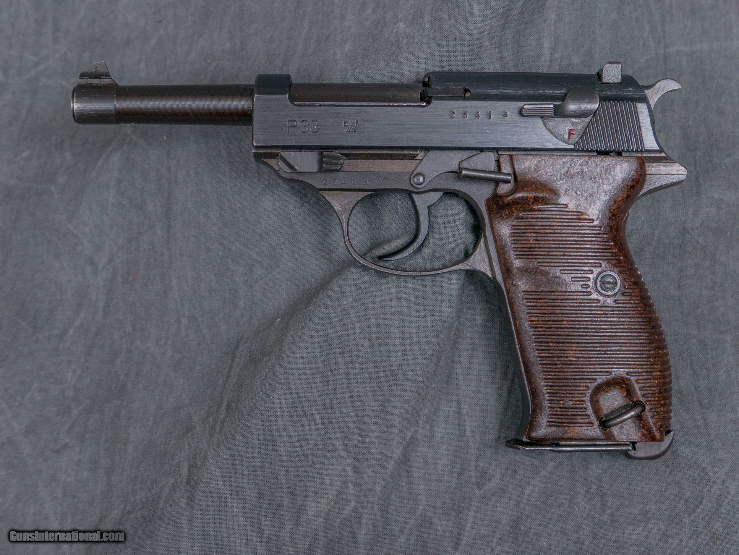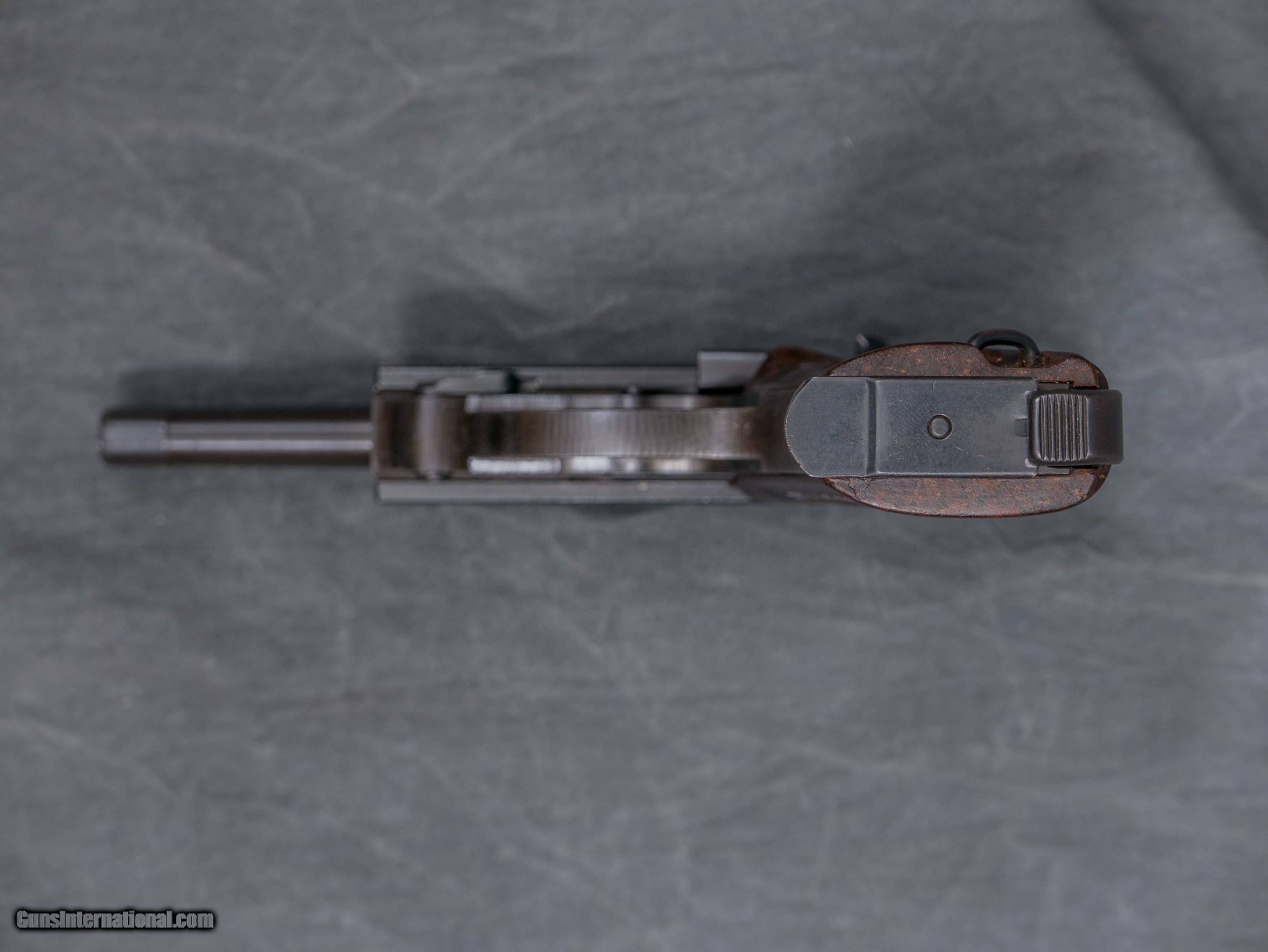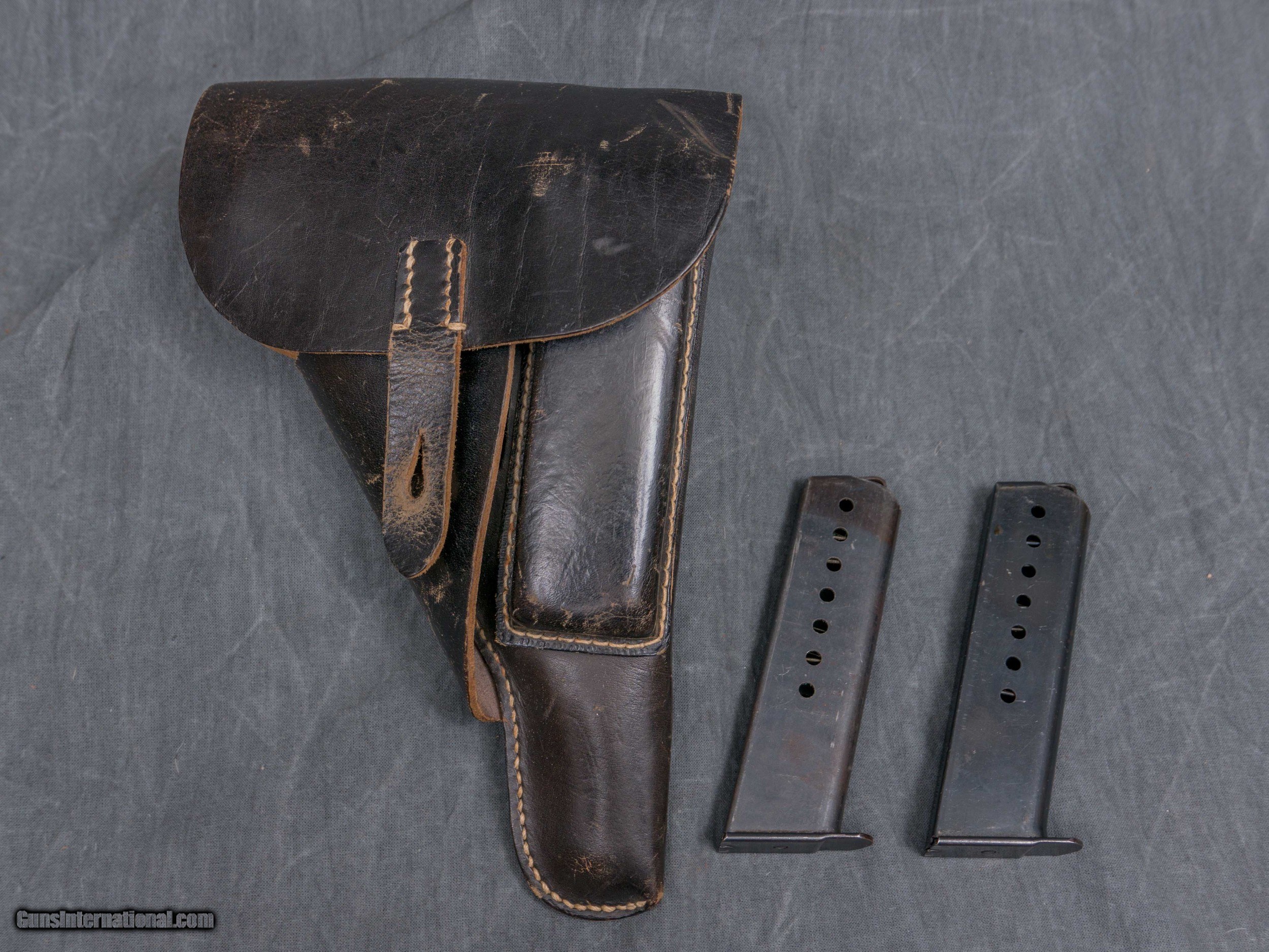 Description: Special Features: MANUFACTURED IN 1944 BY MAUSER STAMPED BYF44 MATCHING SERIAL NUMBERS BROWN BAKELITE GRIPS 2 MAGAZINES 1st MARKED JVC 2nd MARKED WaA706 & P38 w/ BLACK P.38 POLICE HOLSTER CONDITION: EXCELLENT Circa:1944 / SERIAL #2541 Number:C8326 Price:$ 1895 SOLD |