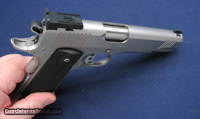 Description: This one has hardly been shot. 100 rounds tops. Very tight, target hammer and trigger, Bomar style rear adjustable sight and simple black blade front. Hard rubber factory grips. Comes with one factory 9 round magazine. Clean bright bore. Sorry no box or papers. $35 shipping to the lower 48, 3% surcharge for using a CC. If you choose to pay with a personal check, we will hold the item for up to 10 days to make sure that it clears. Please expedite such pymts as we will hold an item on your word for 5 days. SOLD Handgun Caliber: 9x19mm Parabellum (9mm Luger, 9x19mm NATO) |
