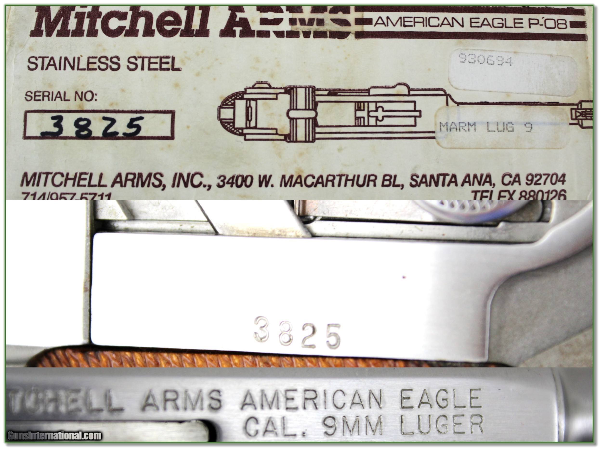 Mitchell Arms P-08 Luger 9mm Stainless ANIB 4 Magazines!