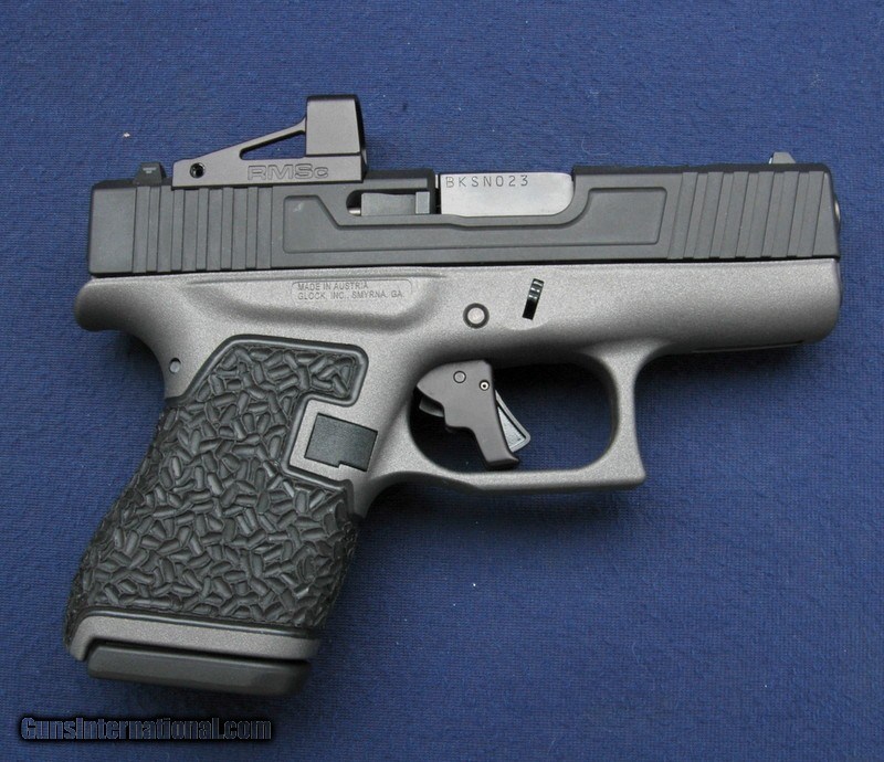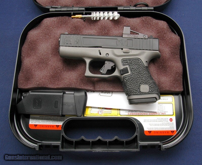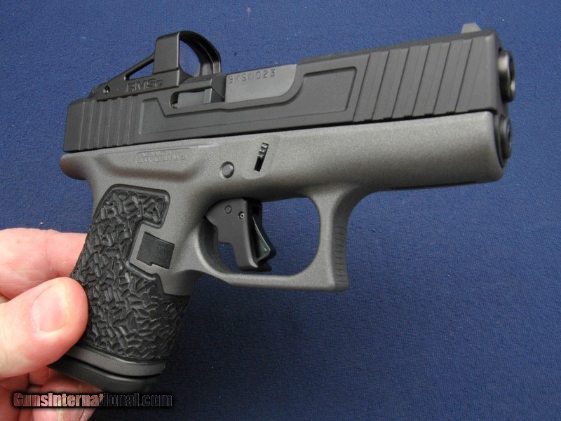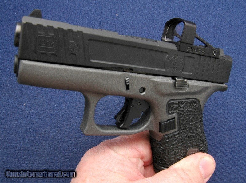 Description: Here is a brand new Glock 43 that has been customized by Danger Close, a Denver-based custom shop. The frame has been reshaped and recontoured, new aftermarket trigger installed. The frame has been cut and beveled and machined into what you see here, with a RMSc from Shield Sights installed as your primary sighting system. Factory sights have been retained as a backup. $35 shipping to the lower 48, 3% surcharge for using a CC. If you choose to pay with a personal check, we will hold the item for up to 10 days to make sure that it clears. Please expedite such pymts as we will hold an item on your word for 5 days. SOLD Handgun Caliber: 9x19mm Parabellum (9mm Luger, 9x19mm NATO) |