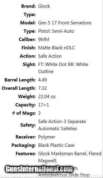 Description: UNDERSTAND THAT WE WILL PUT A SIGNATURE ON THE PACKAGE SO IT WONT GET LEFT ON A PORCH AND IF THAT IS UNACCEPTABLE THEN I’M SORRY BUT PLEASE DON’T BUY BUYER PAYS A FIXED AMOUNT OF 35.00 INSURED SHIPPING TO THE LOWER MAINLAND STATES, ALASKA, HAWAII OR PUERTO RICO AND ONLY TO WHERE LEGAL NO SHIPMENTS OUTSIDE THE USA. MISSOURI RESIDENTS DO PAY A 8.575% SALES TAX. NO EXTRA CHARGE FOR CREDIT CARDS. BRANDON'S GUN TRADING CO LLC 321 EAST 20TH ST JOPLIN MO. 64804 (417)-623-8787 FAX (417)-623-2326 9-5 TUESDAY-SATURDAY CENTRAL TIME WE ARE ALSO CLOSED THE 1'ST SATURDAY OF EVERY MONTH AND HOLIDAYS. INVENTORY REFERENCE : P-3431335 PLEASE NOTE, UPS SERVICE HAS GOTTEN SO BAD UNDER CURRENT MANAGEMENT THAT WE WON’T SHIP UPS UNLESS WE ABSOLUTELY HAVE TOO. WHEN WE DOUBLE PACK, INSURE, ADD SIGNATURE, USE GOOD BOXES AND UPS EVEN NOTES THEY DAMAGED THE ITEM AND THEY STILL WONT PAY. ALSO, ANY INSURANCE WE DO PUT ON OUR PACKAGES IS VOID IF YOU OR YOUR DEALER THROWS AWAY THE BOX, ANY PACKING MATERIALS OR FAILS TO PICTURE AND NOTIFY US AND THE SHIPPING COMPANY IMMEDIATELY SOLD Handgun Caliber: 9x19mm Parabellum (9mm Luger, 9x19mm NATO) Manufacturer: GLOCK Model: GEN 5 17 Condition: NEW |